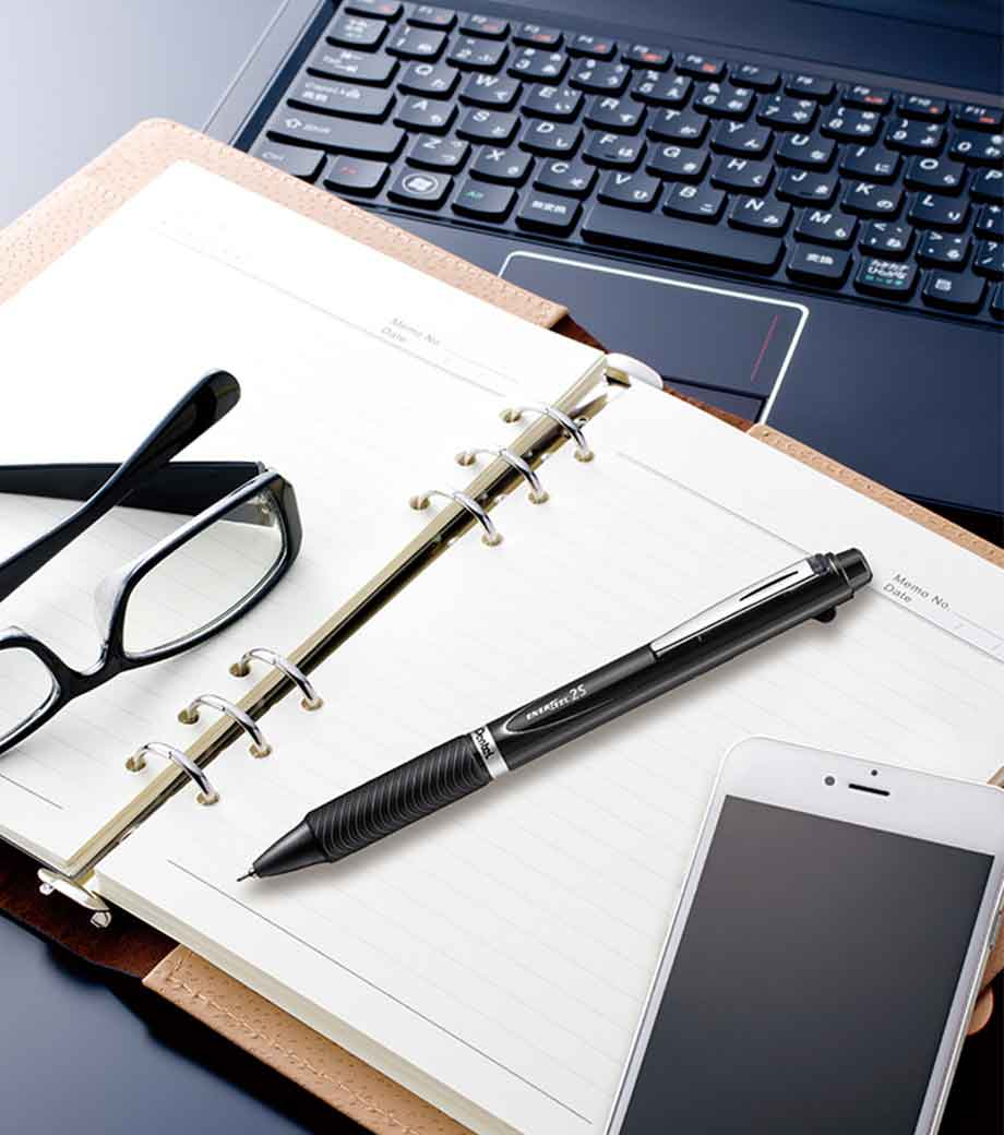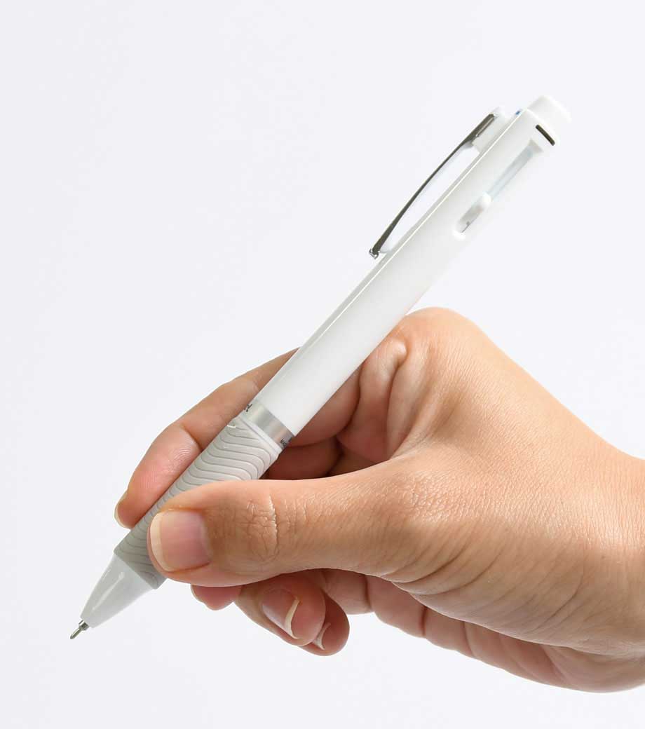 ペン先は0.5mmの極細タイプ。何度でも書き消し可能な上、鉛筆やシャープペンシルの消し跡に比べて消し残りが少ないのも特徴。手帳や資料などの細かい箇所への書き込みに優れています。