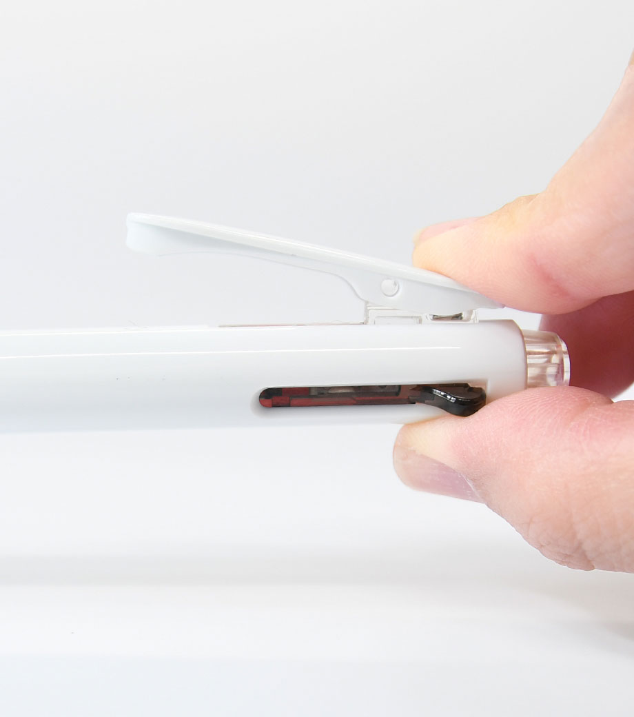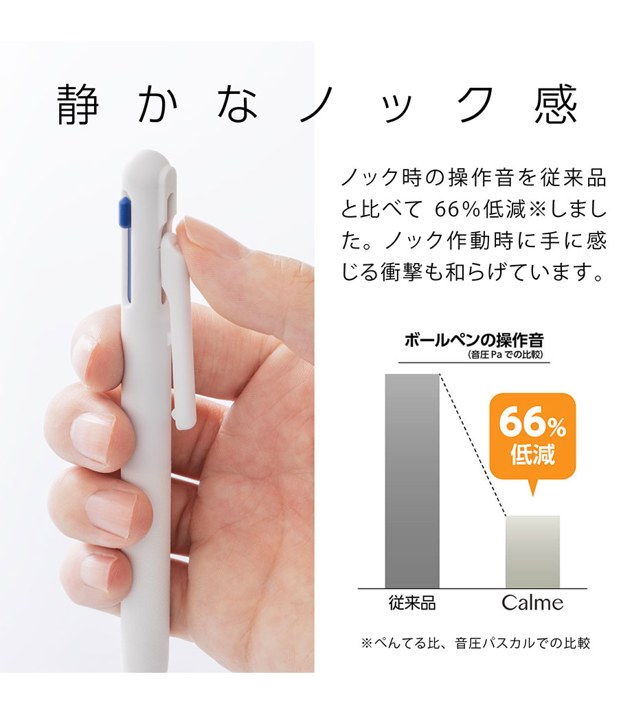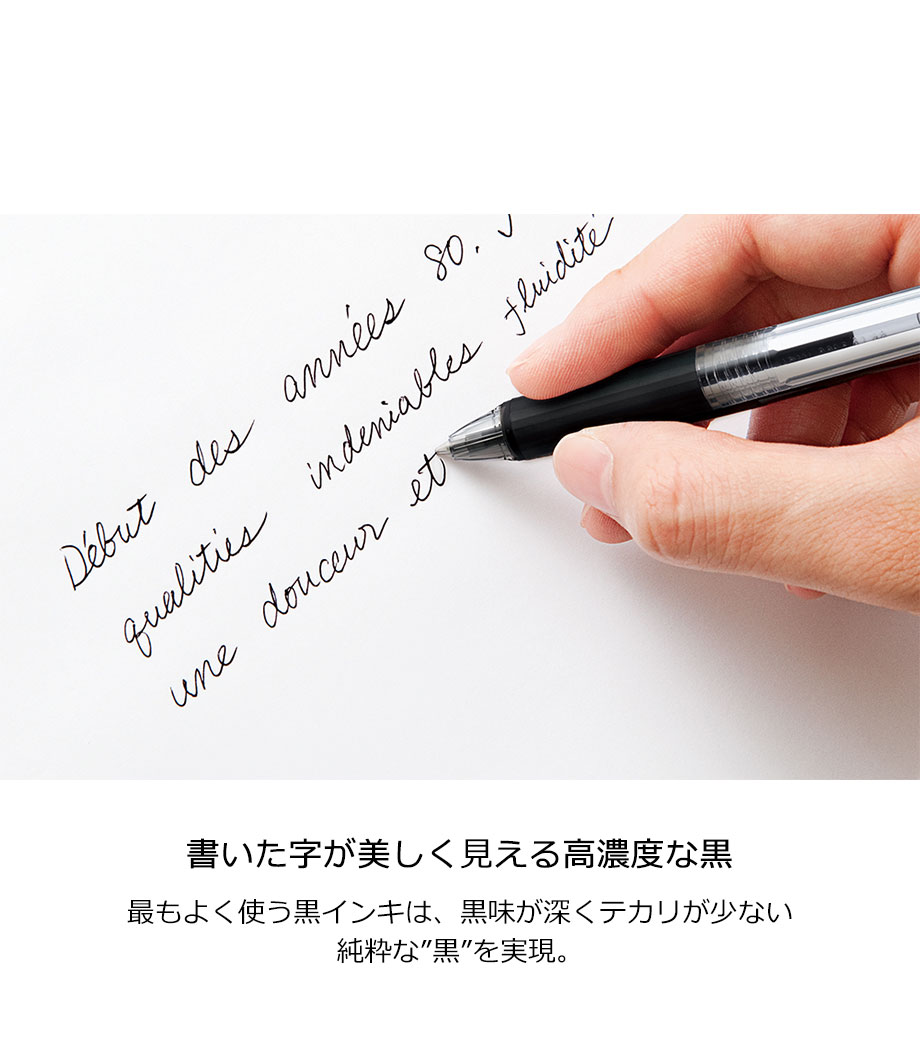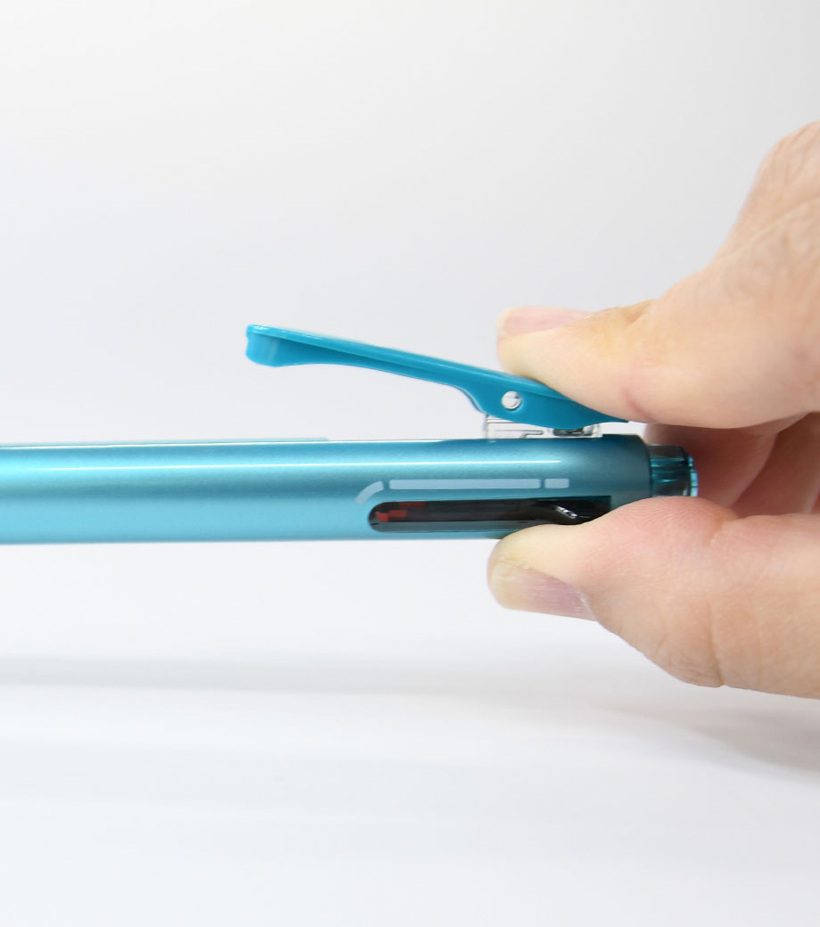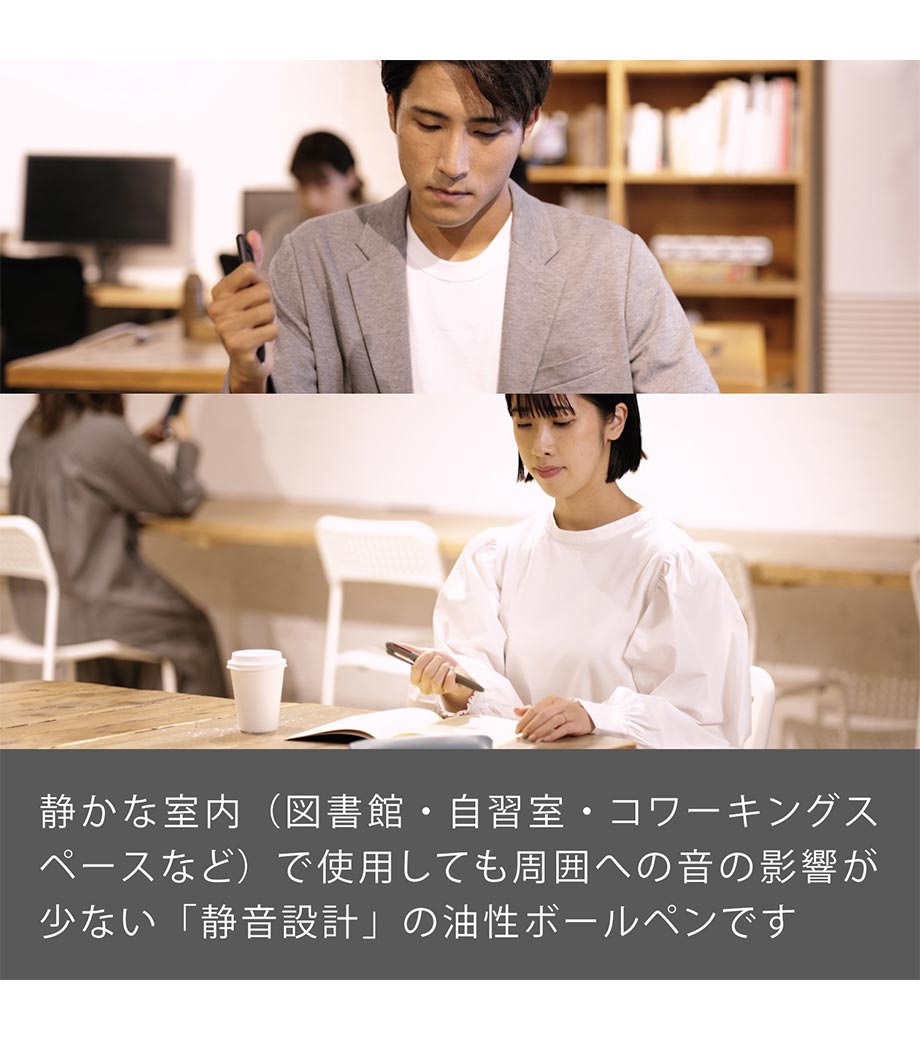 リフィル・内部機構を除く手に触れる全ての外部パーツ(軸、グリップ、ノックパーツ)が抗菌加工なので清潔にお使いいただけます。