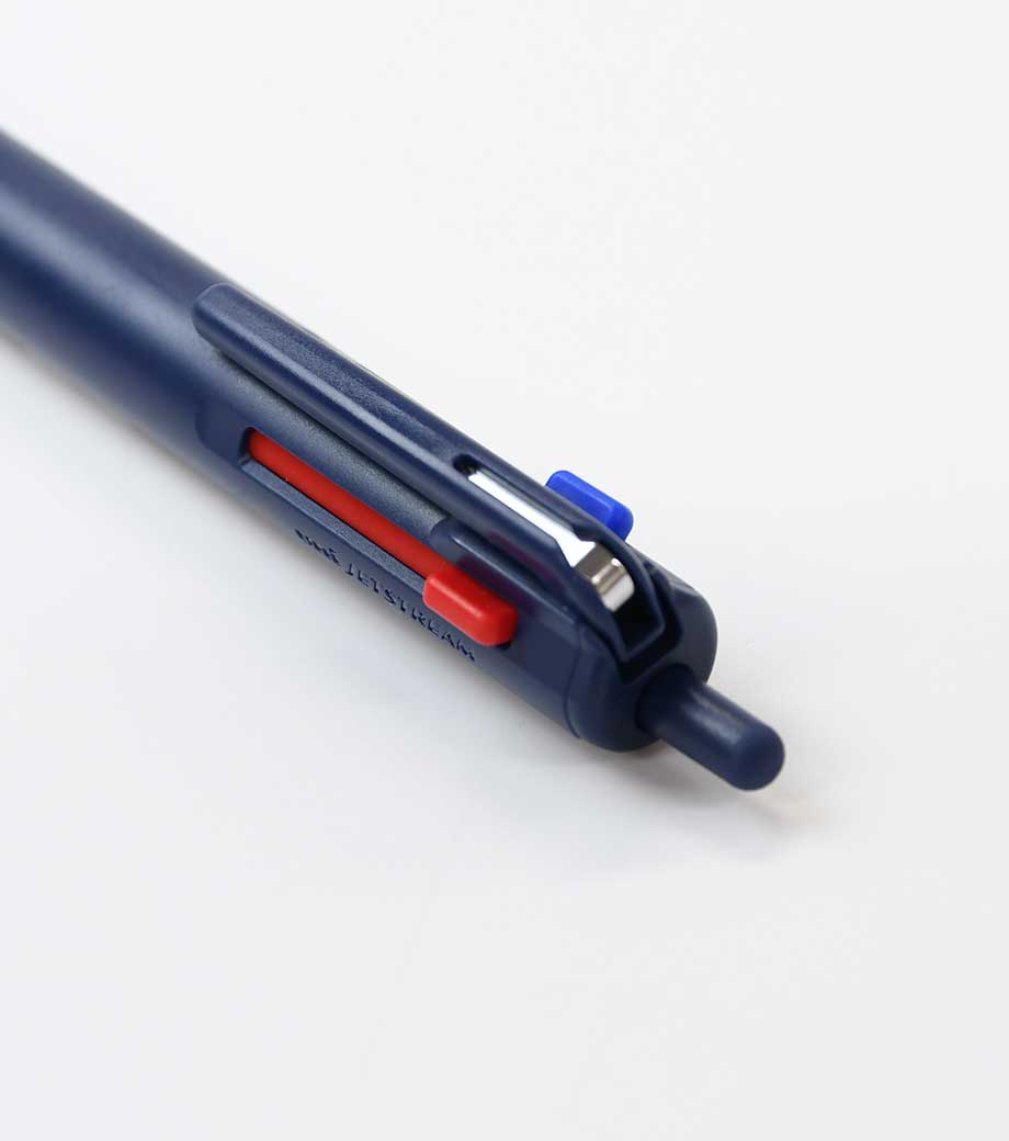 三菱鉛筆 ジェットストリーム 3色ボールペン 0.5mmは、多色ボールペンの中で使用頻度の高い「黒」がノールックで出せる親切設計。後端ノックでサッと繰り出せます。