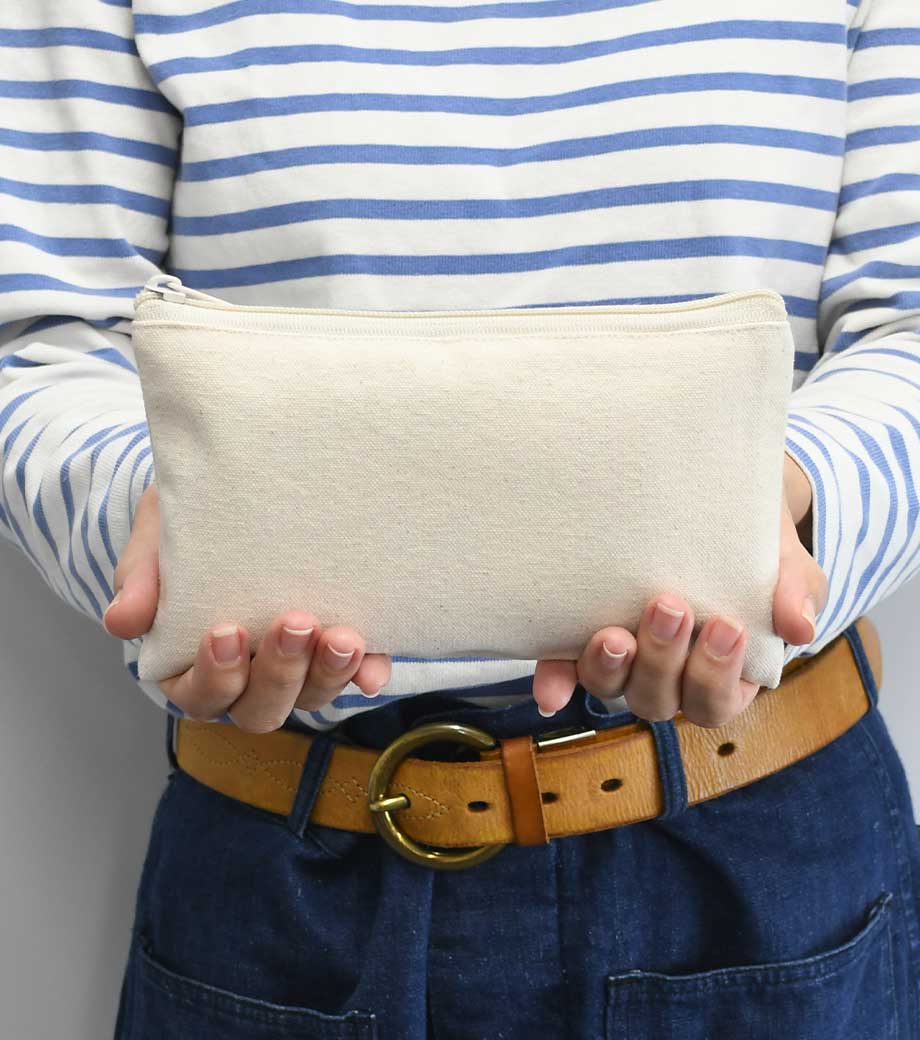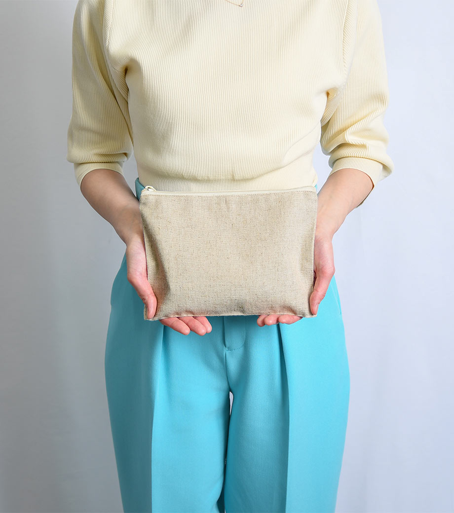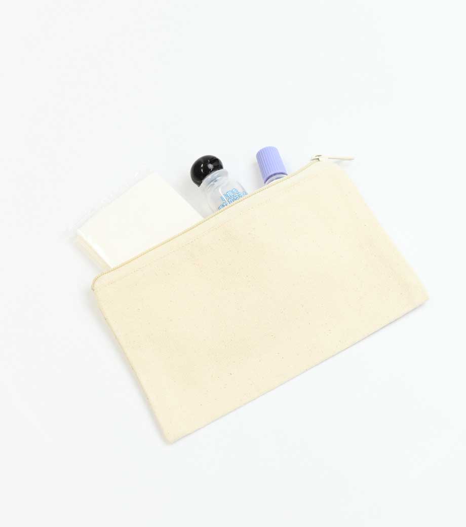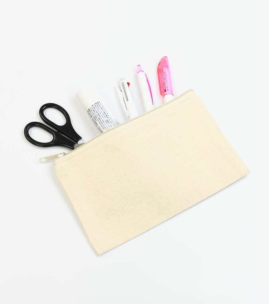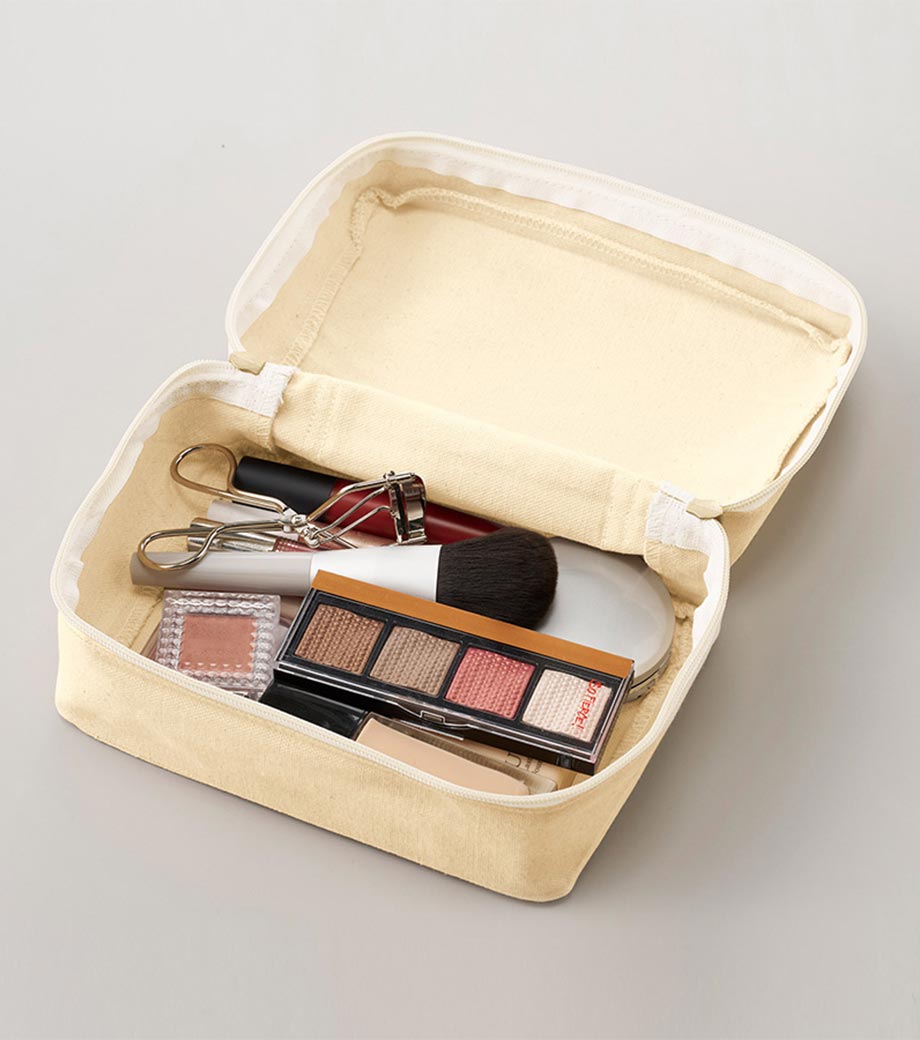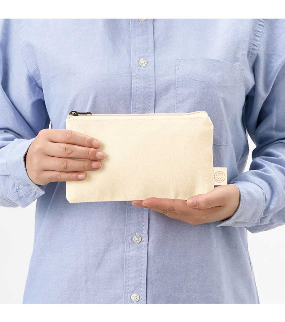 「キャンバスフラットポーチ(S)」はバッグに入れてもかさばらない薄型なので、メイクアップ用品やアクセサリー、ステーショナリーなどの持ち運びに便利。