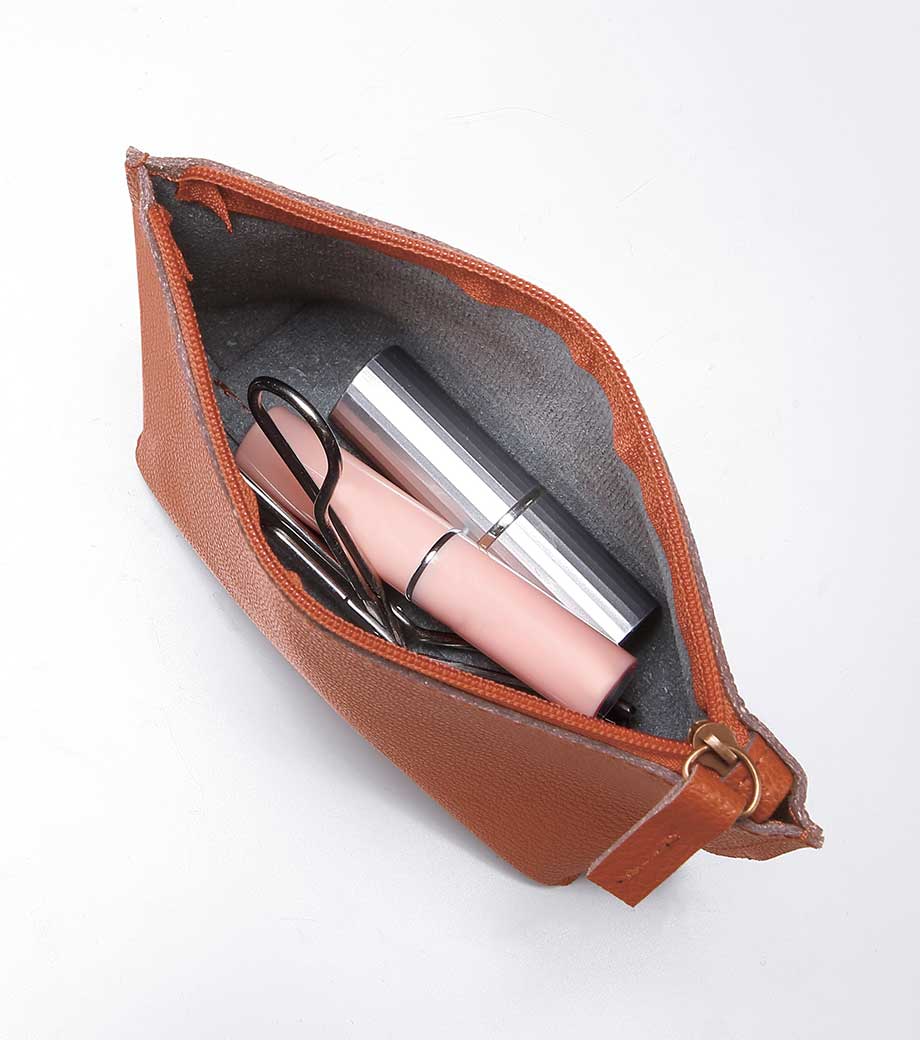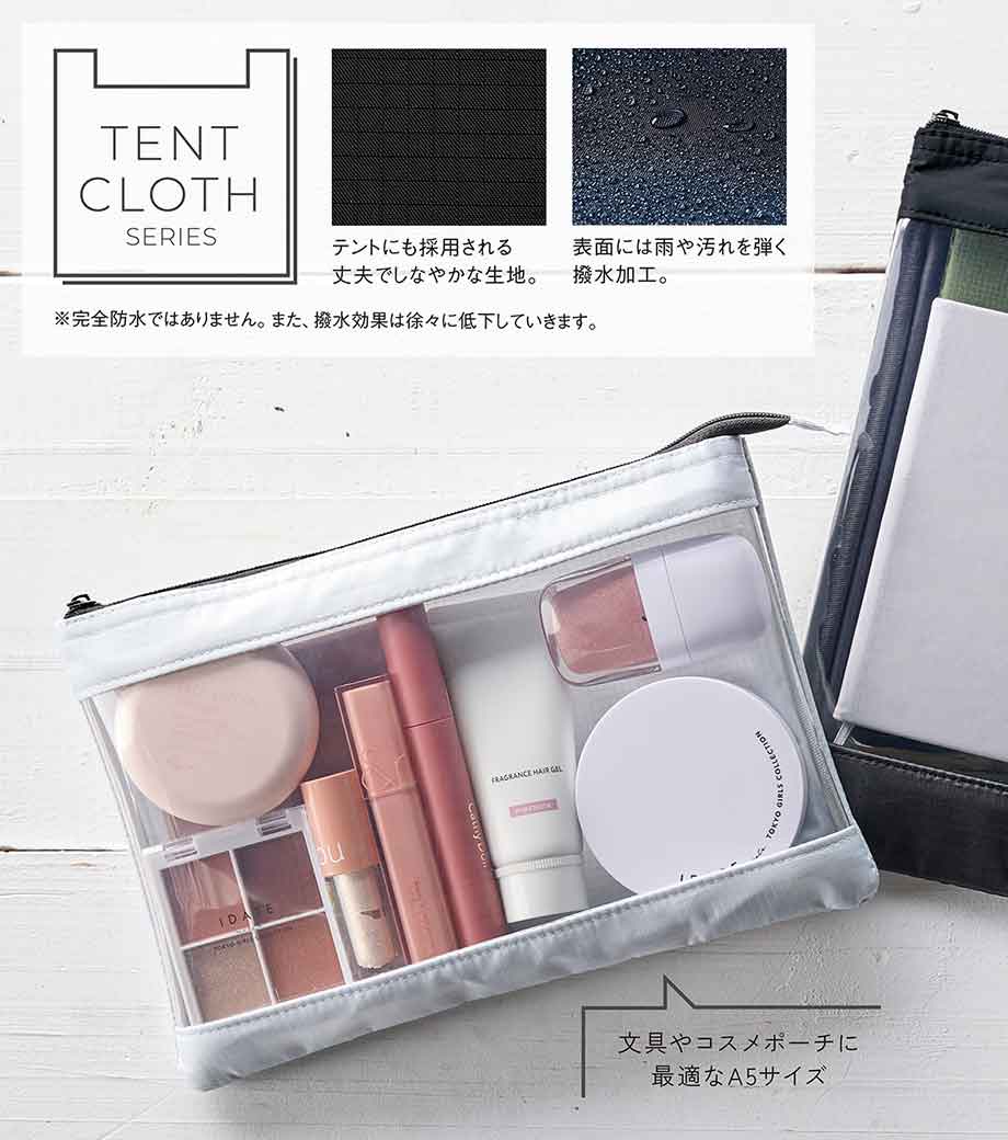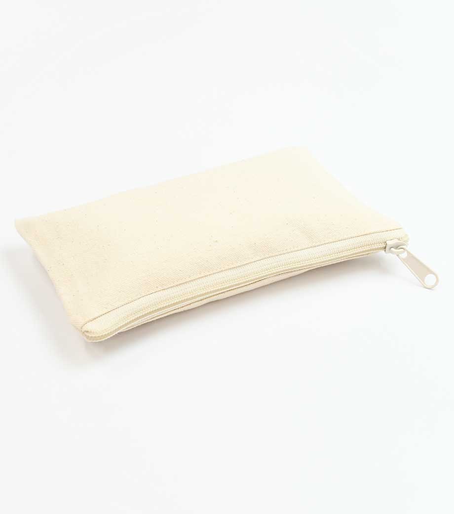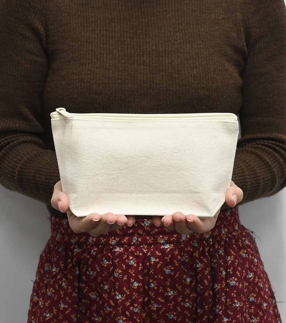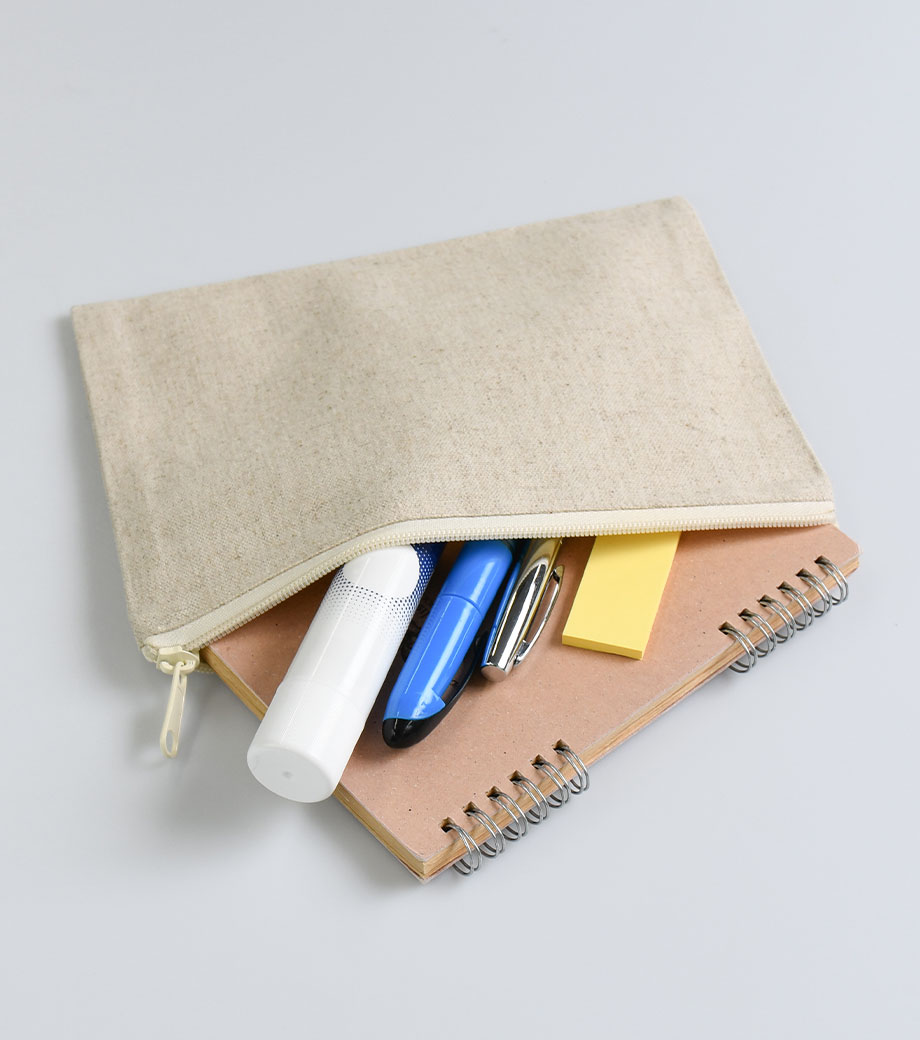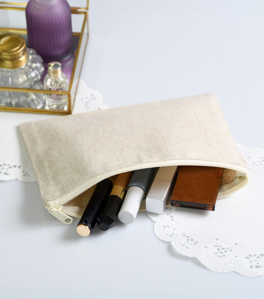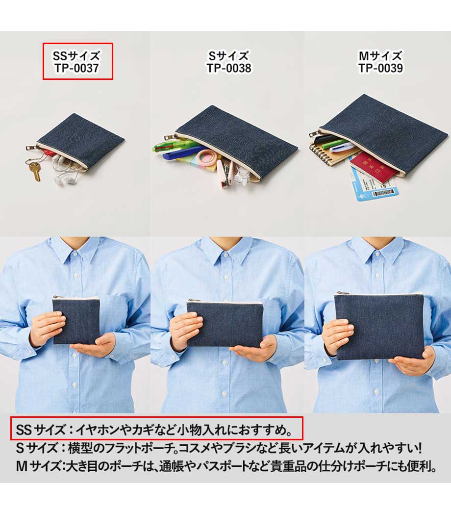「キャンバスフラットポーチ(S)」はバッグに入れてもかさばらない薄型なので、メイクアップ用品やアクセサリー、ステーショナリーなどの持ち運びに便利。