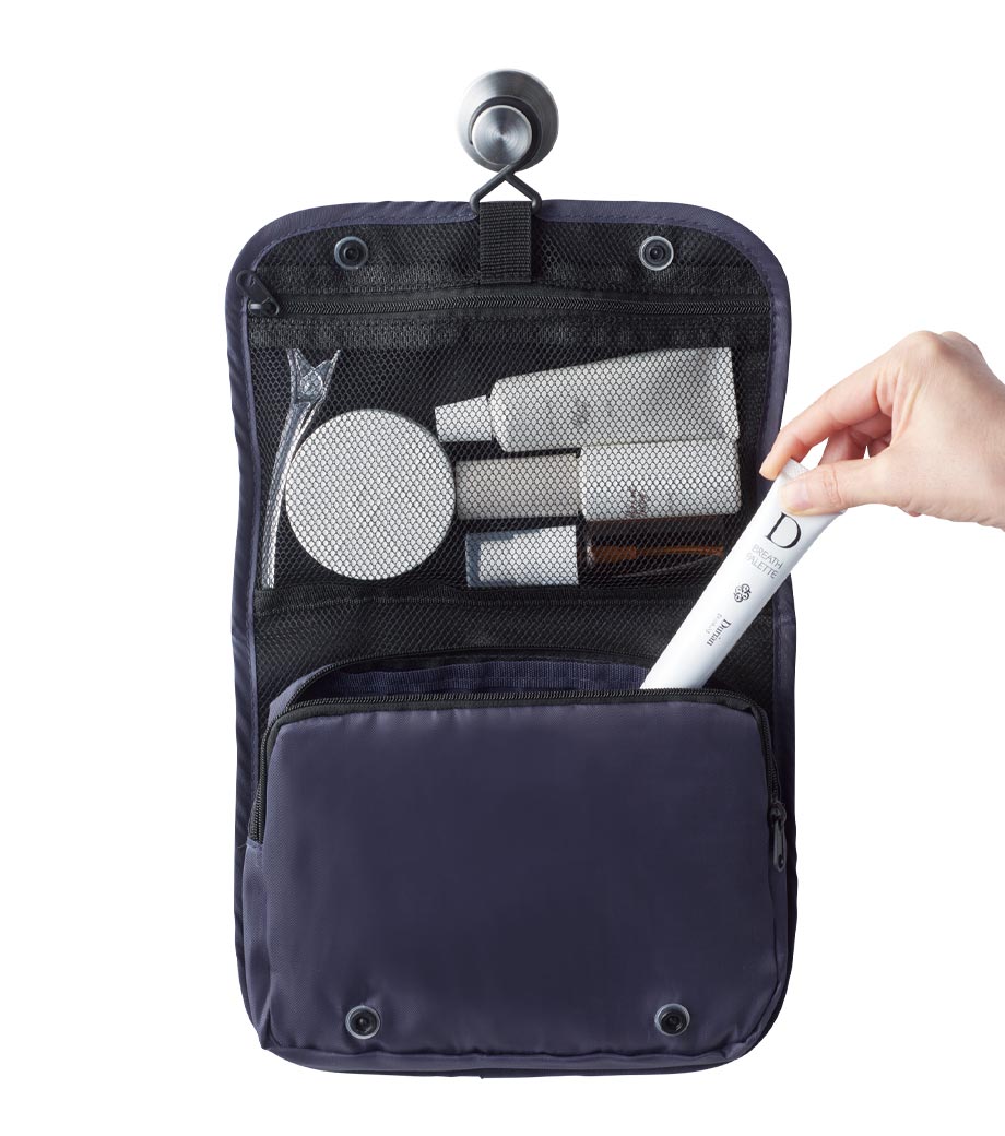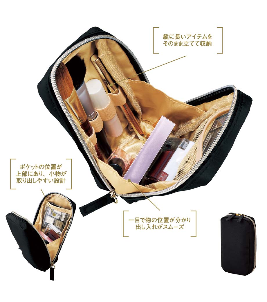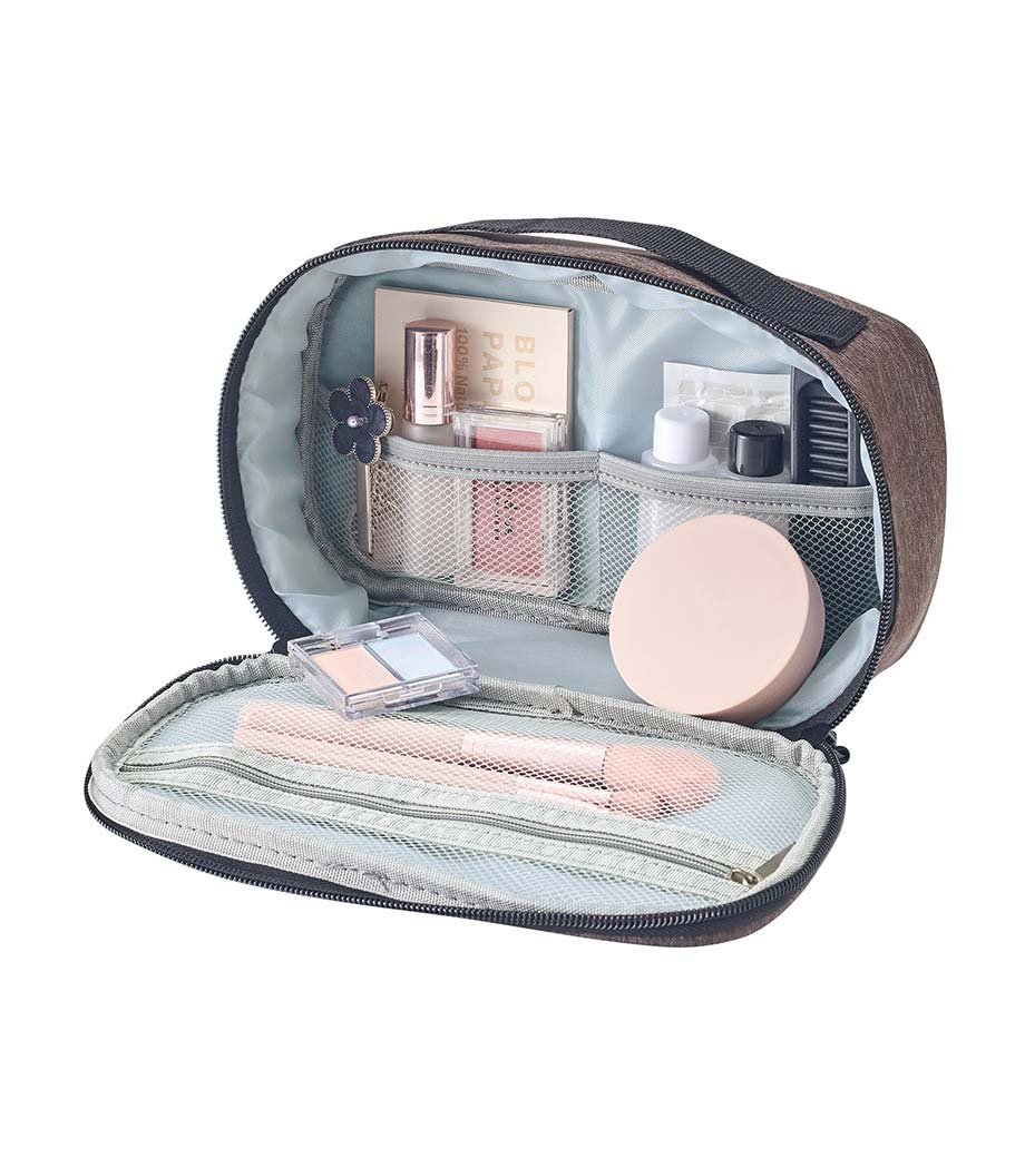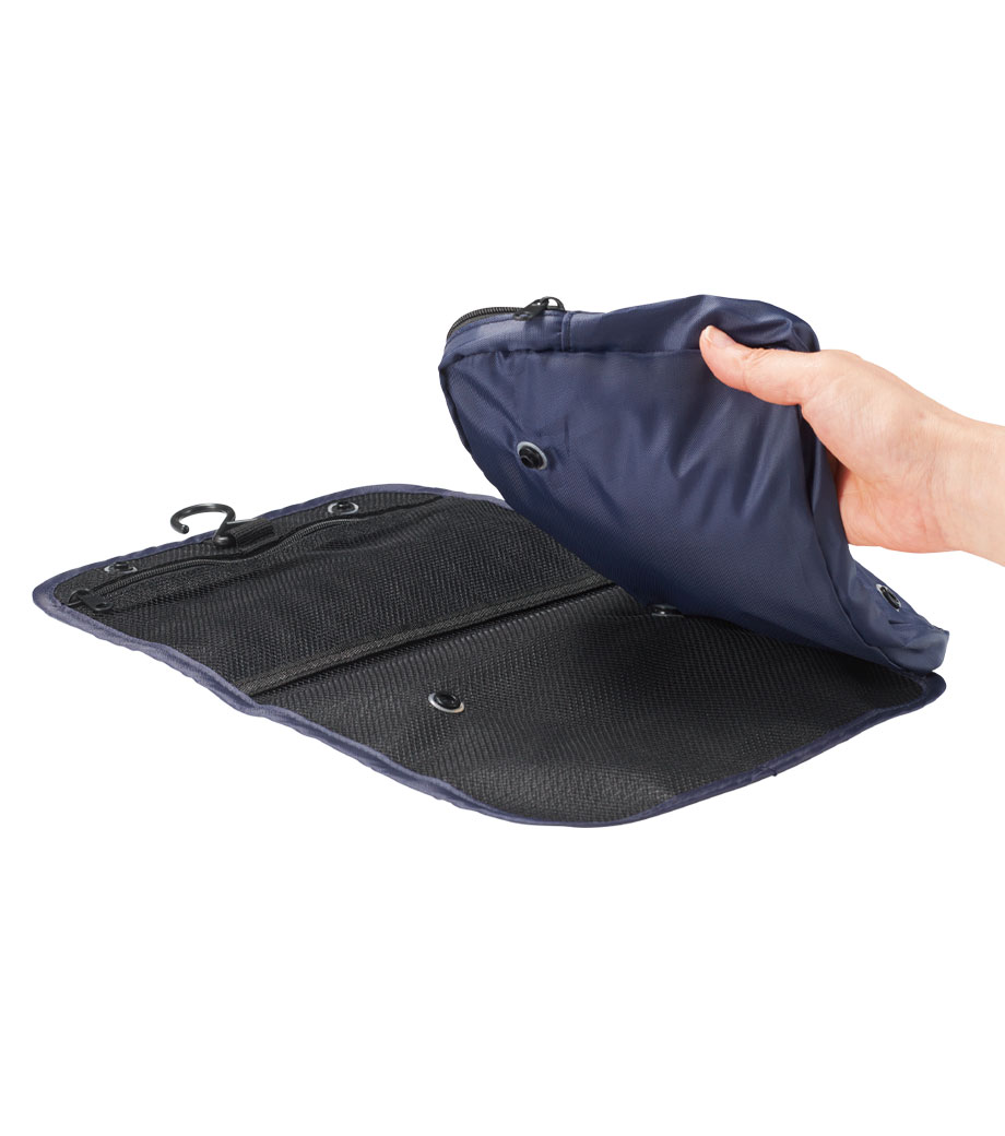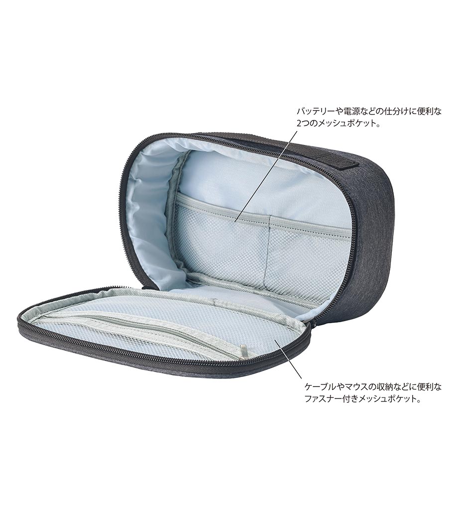 旅行や日常使いに最適なマルチポーチです。大きく開く設計で中身が一目瞭然、自立する形状と6つのメッシュポケットで整理整頓もスムーズ!フロントポケット付きだからサッと物を収納できて便利です。