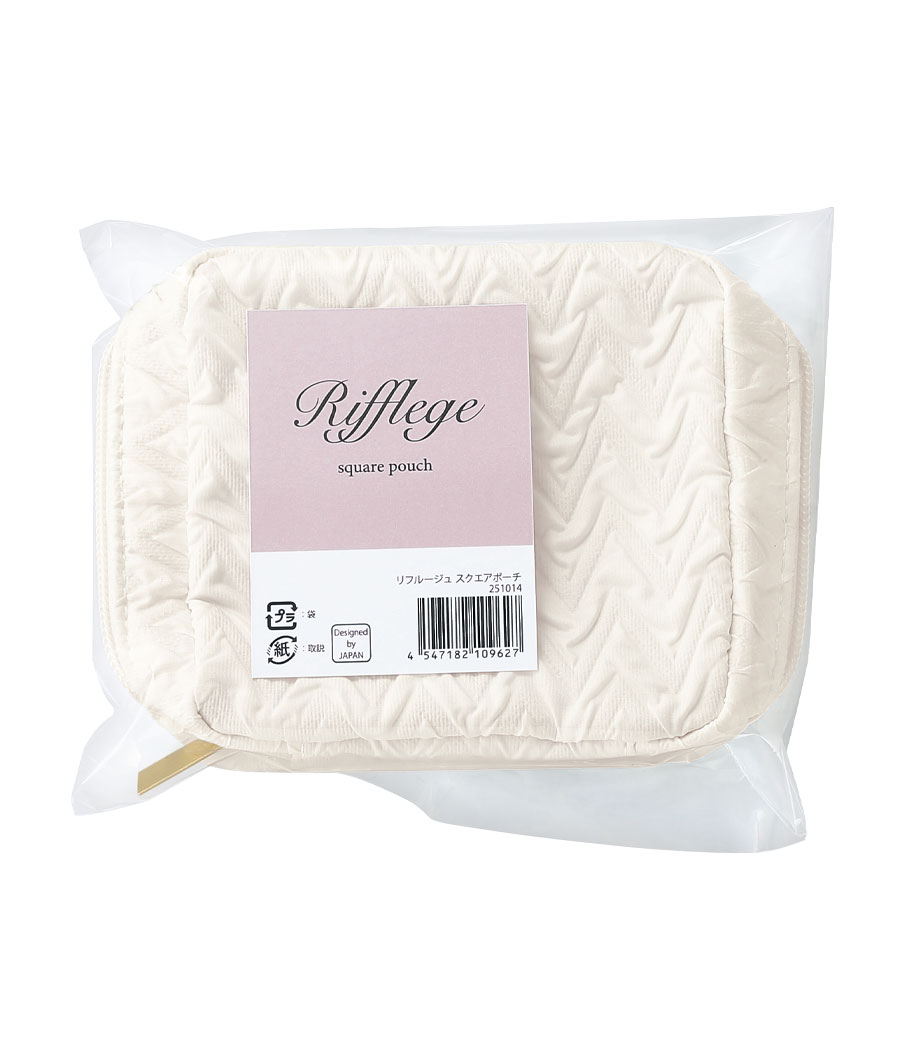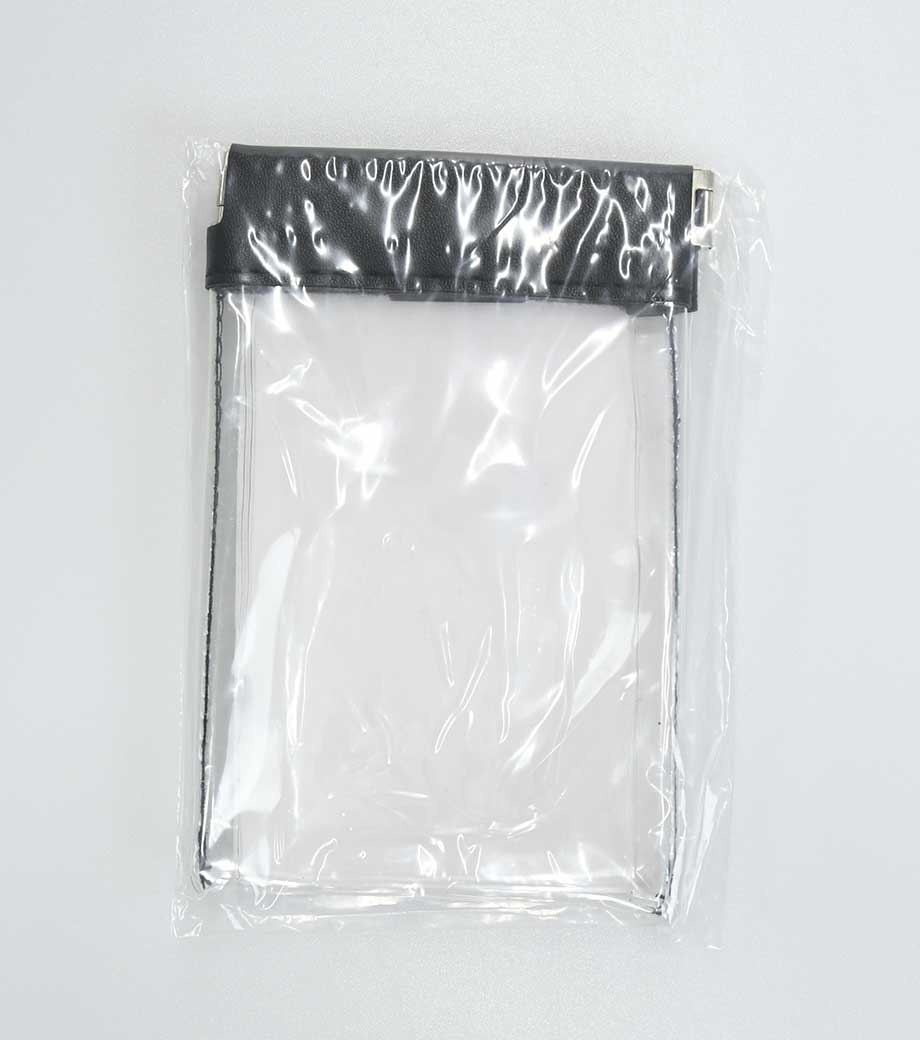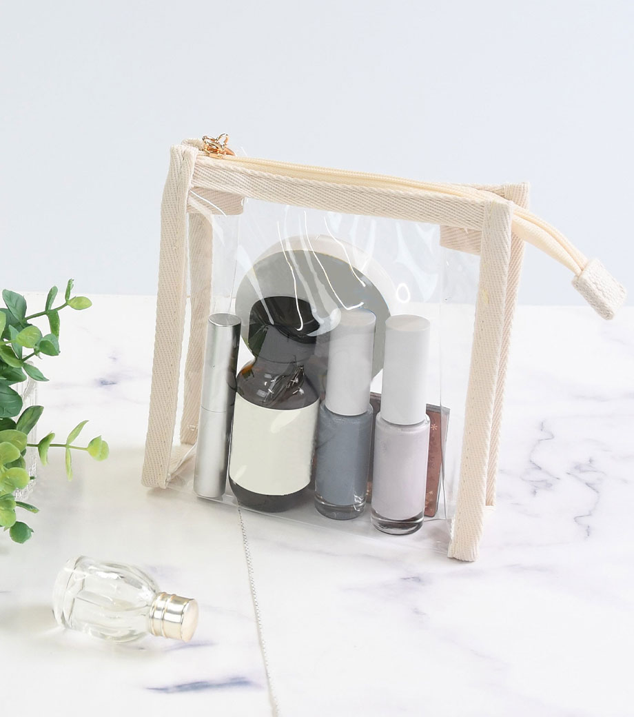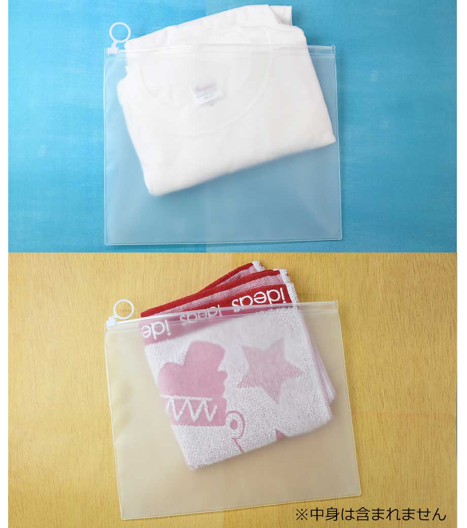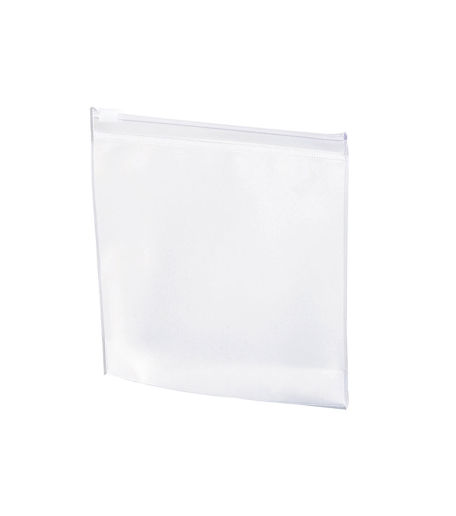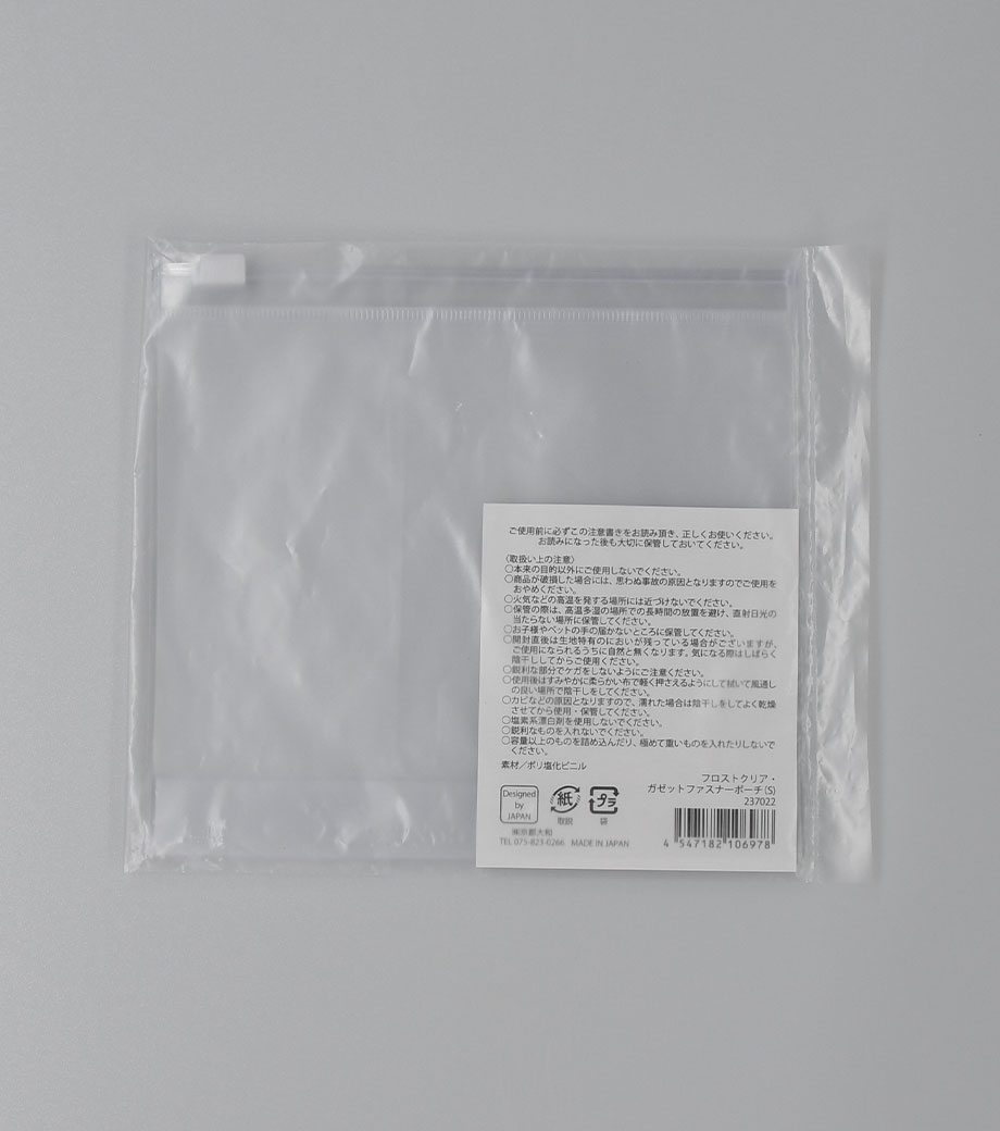 カラーファスナーがアクセントのスクエア型ビニールポーチ。四つ折りしたミニタオルが収まるサイズ感です。中身が一目でわかるのでアクセサリーや日用品の仕分けポーチに大人気。水に強いPVC素材で、アメニティ入れとしても使えます。