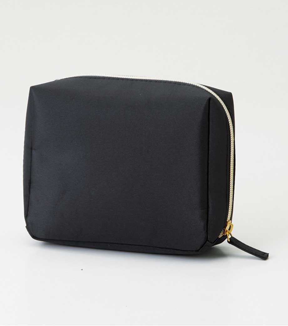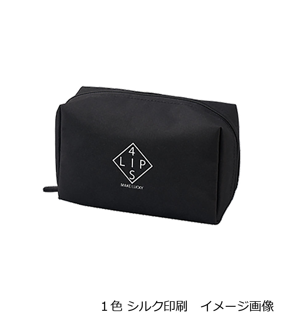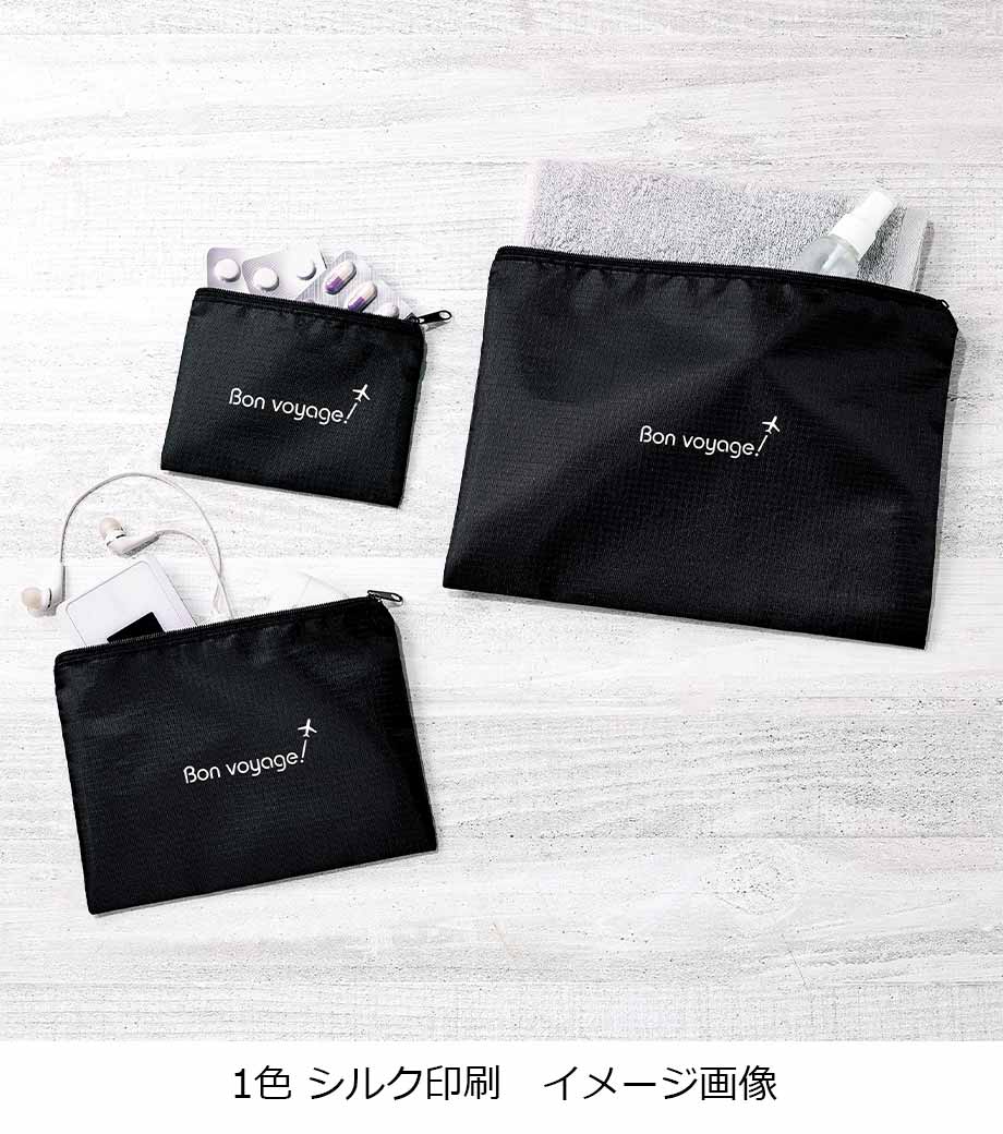 高品質で摩擦に強いナイロン素材を使用し、底面と側面にクッション性があるため、ガジェットやガラス容器の化粧品の持ち運びも安心です。シルク1色印刷かフルカラー印刷が可能。エステサロンやホテルの特典にいかがでしょうか。