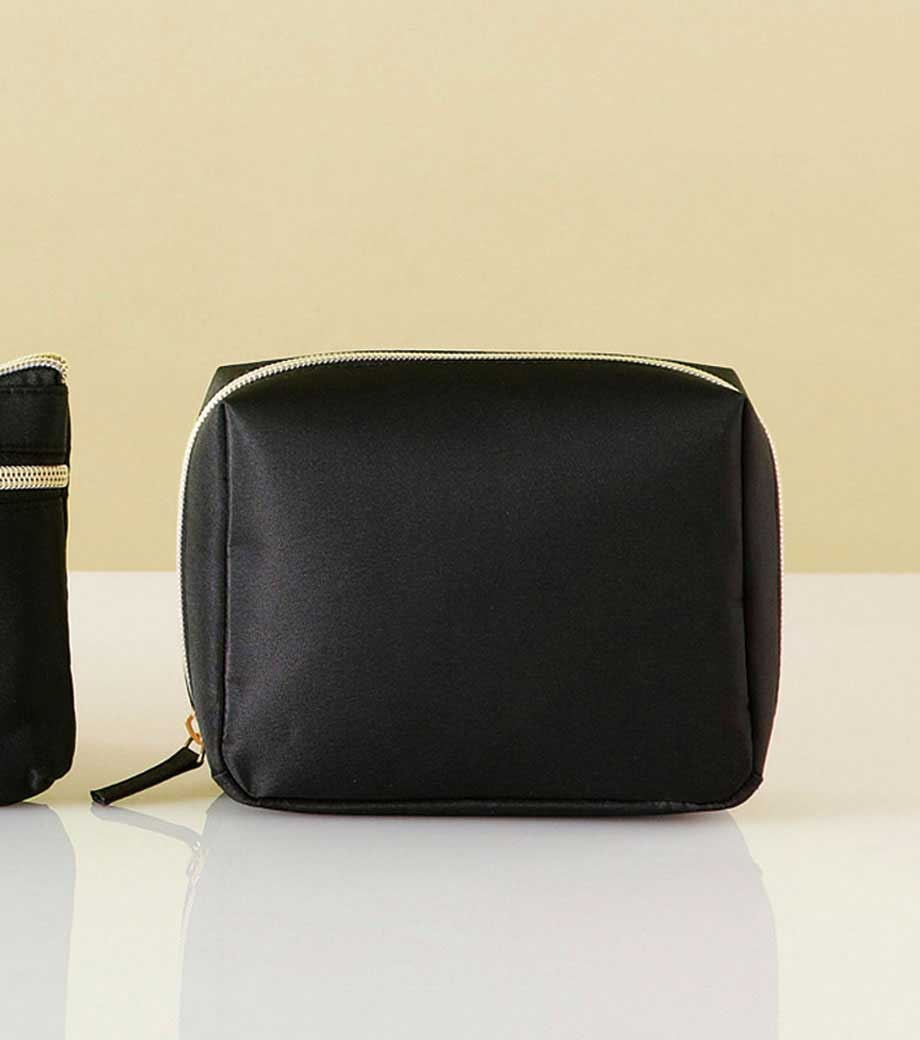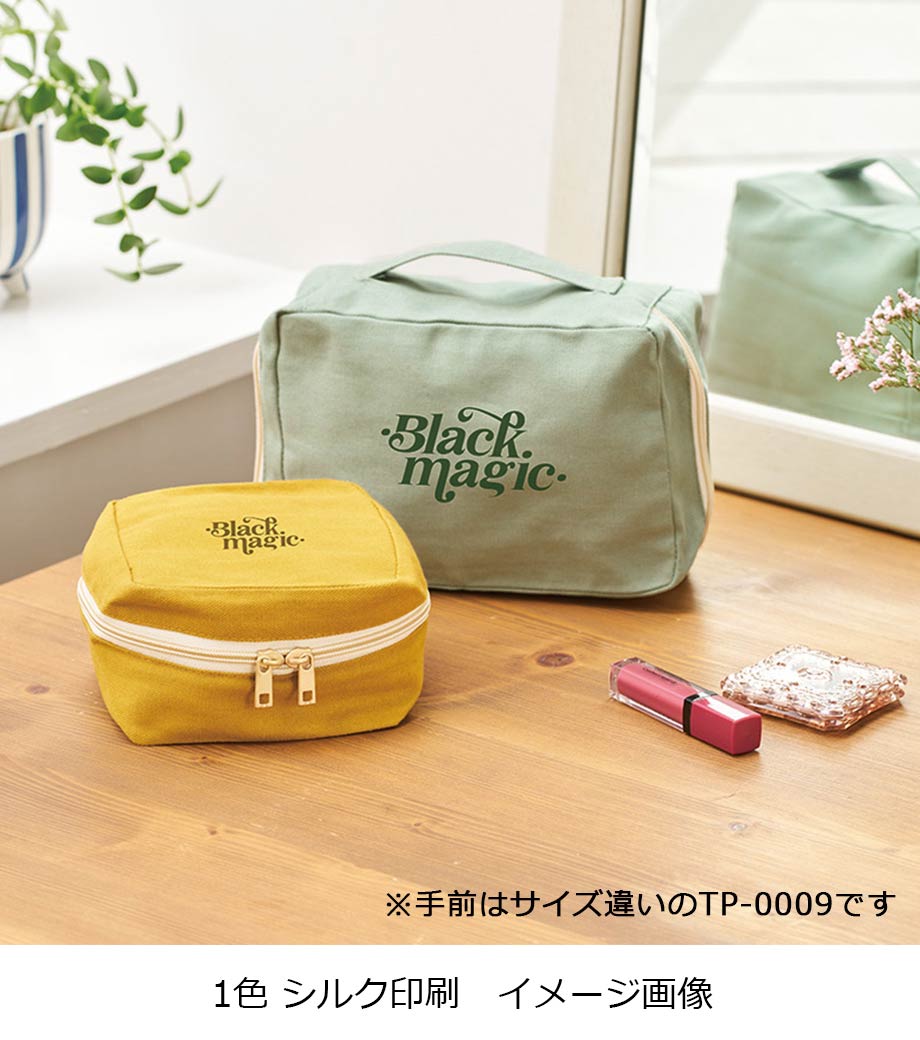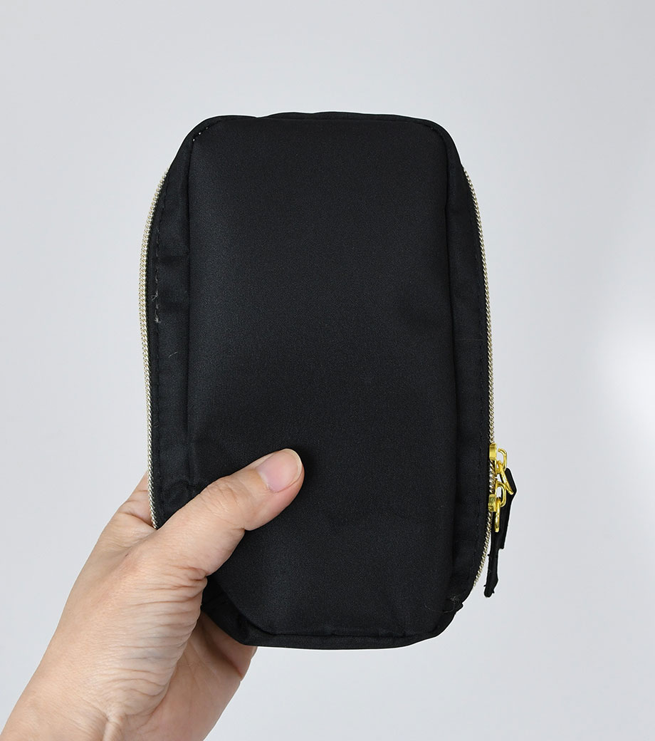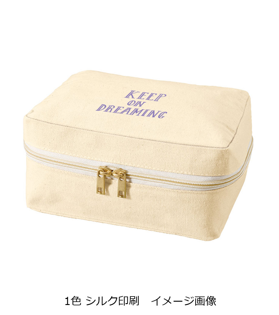 高品質で摩擦に強いナイロン素材を使用し、底面と側面にクッション性があるため、ガジェットやガラス容器の化粧品の持ち運びも安心です。シルク1色印刷かフルカラー印刷が可能。エステサロンやホテルの特典にいかがでしょうか。