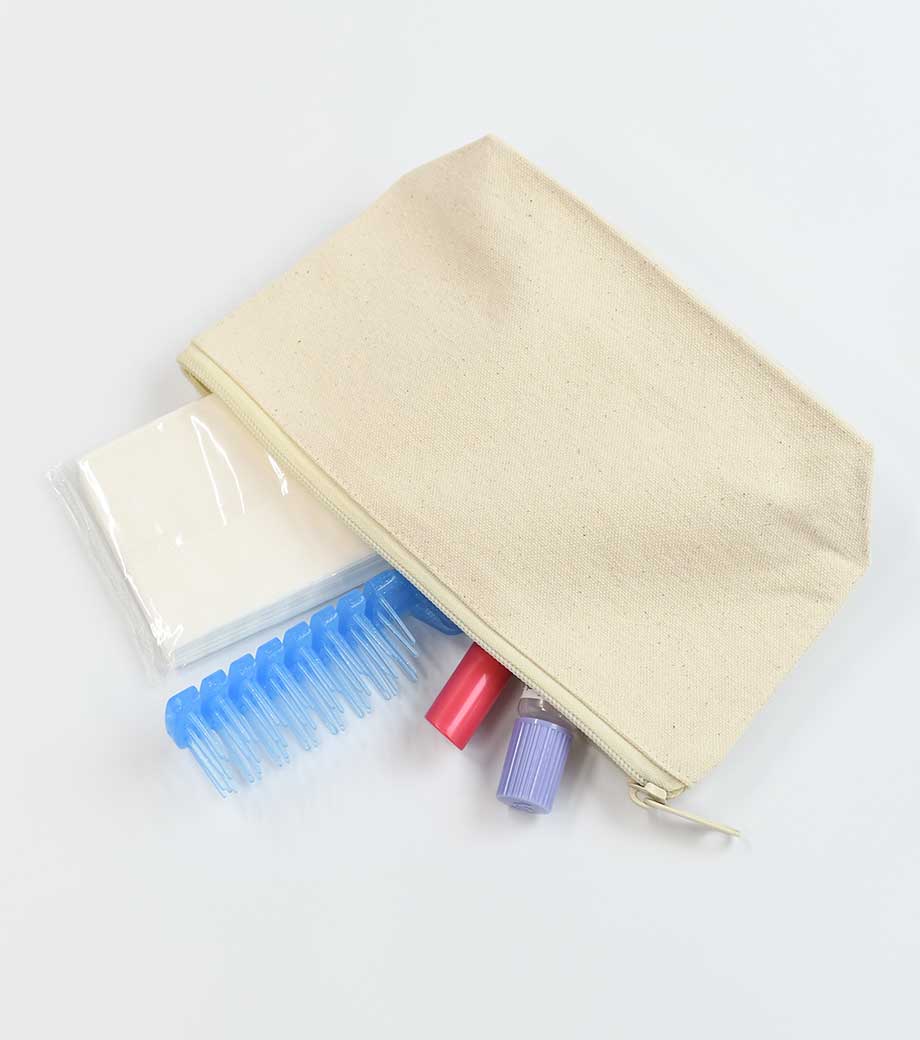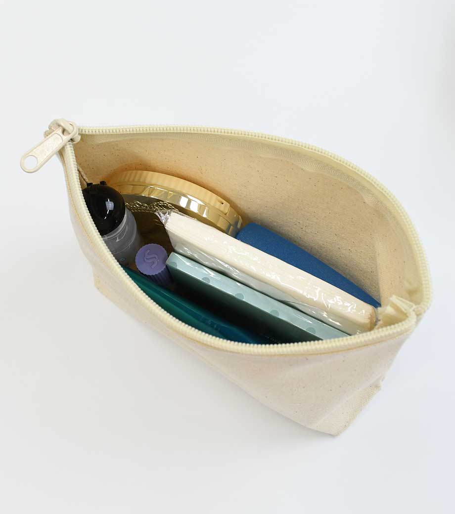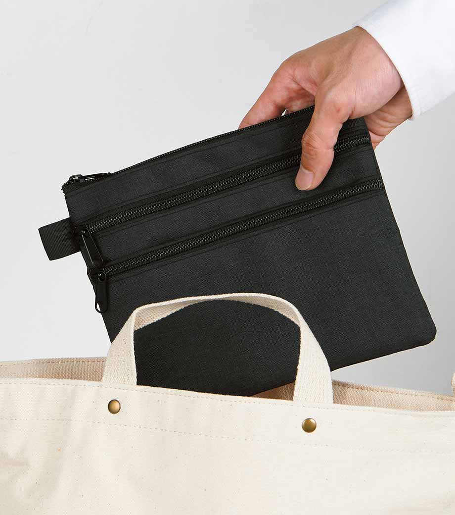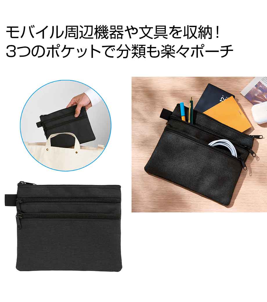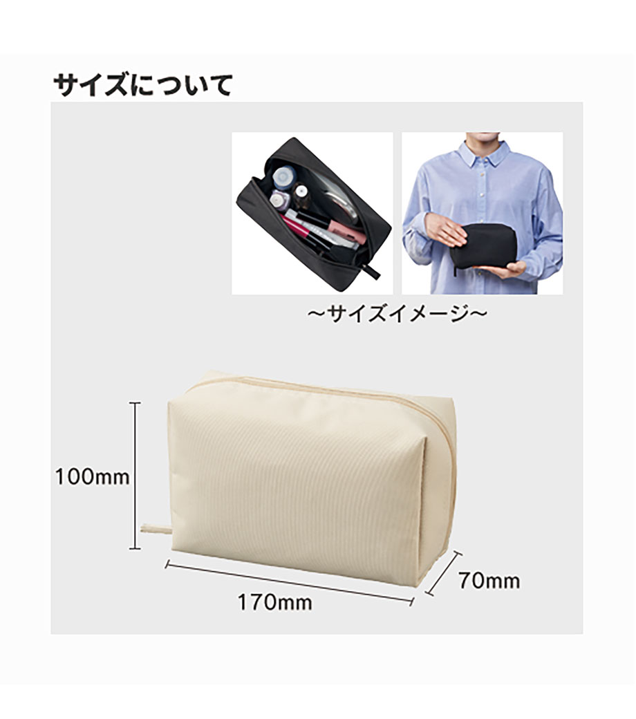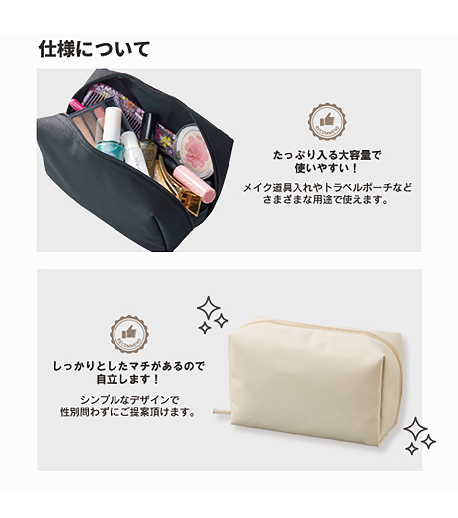 ポーチは誰もが使える収納グッズ。ファスナーで簡単に開閉でき、コスメやエチケット用品など出先で取り出す小物の収納に便利です。イベントの来場特典の贈り物にぴったり!