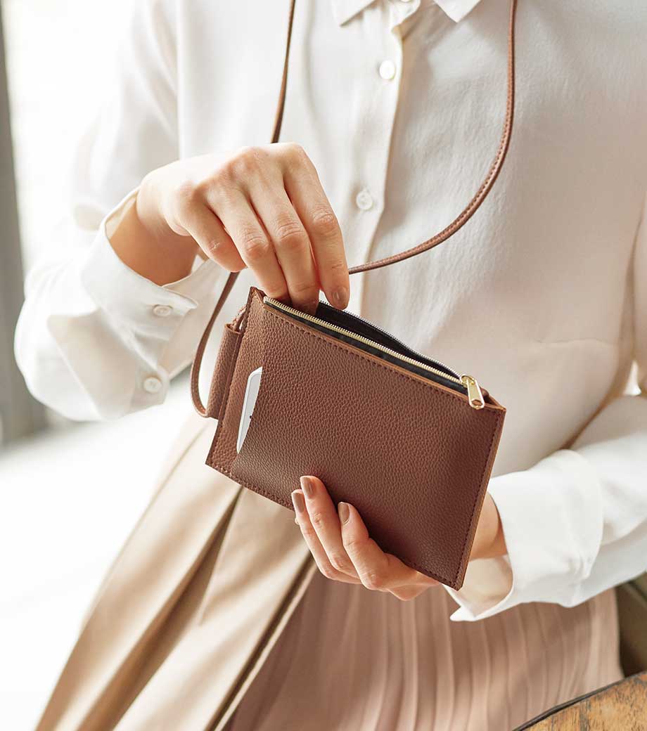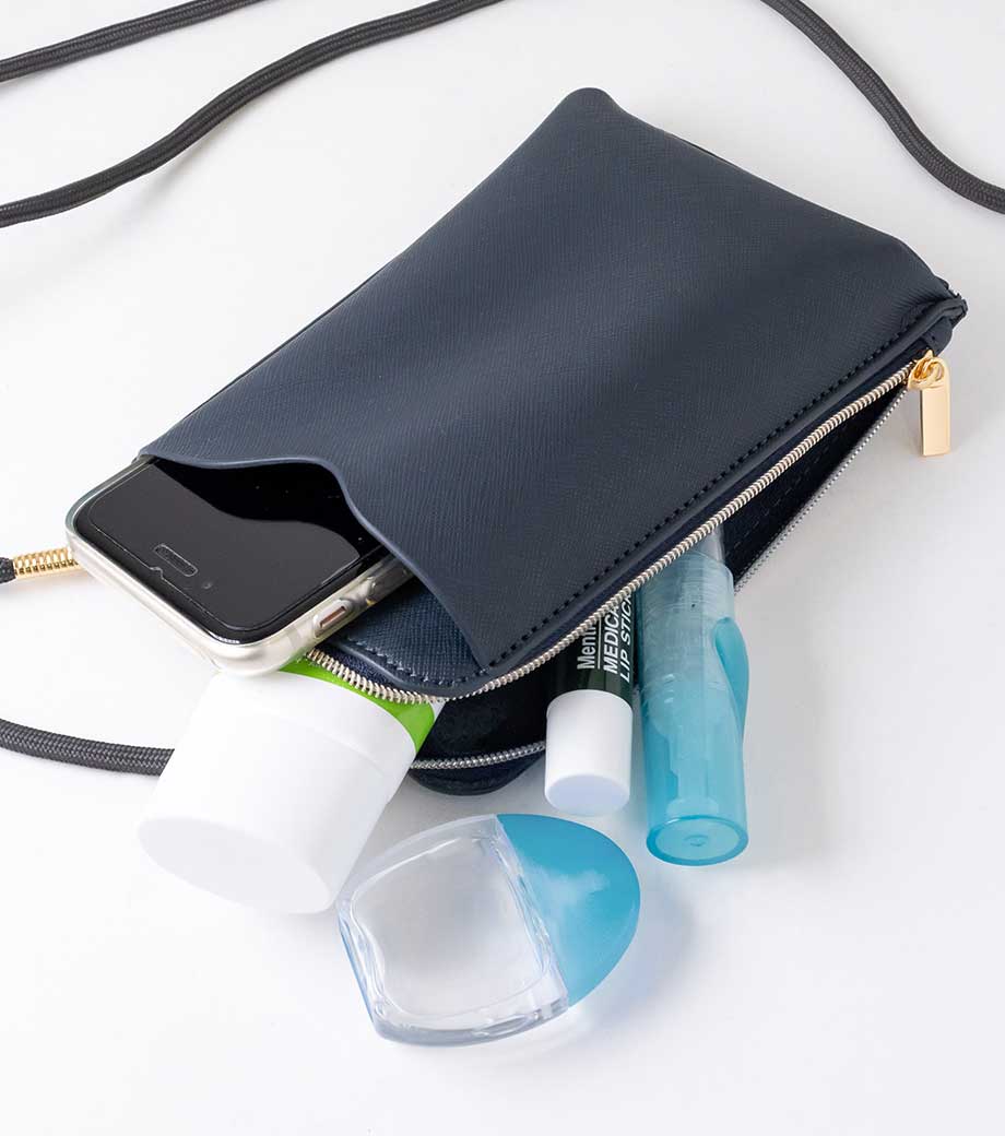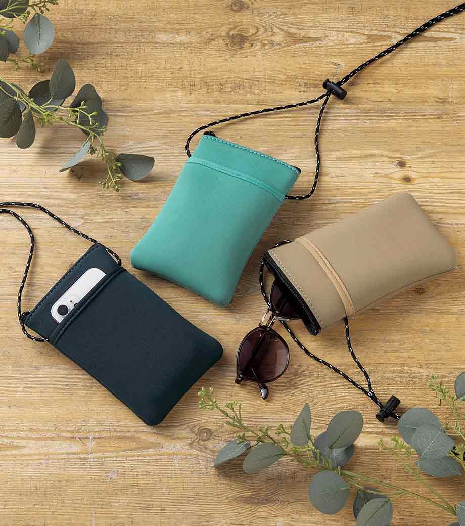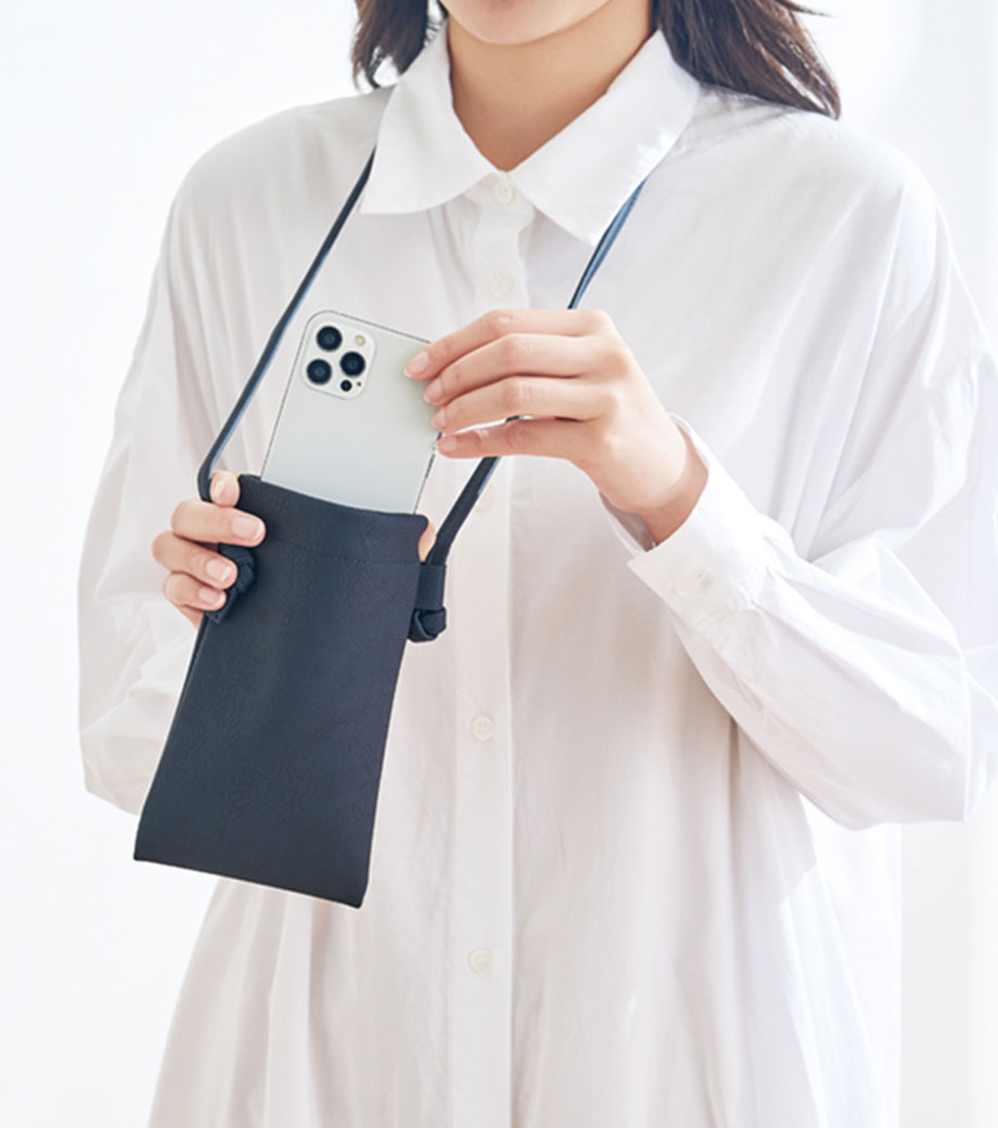 スマホショルダーはお散歩やちょっとしたお出かけに便利。荷物を最低限にできてスタイリッシュです。さりげないワンポイントの印刷なら普段使いしやすく、長く使ってもらえるオリジナルグッズになります。