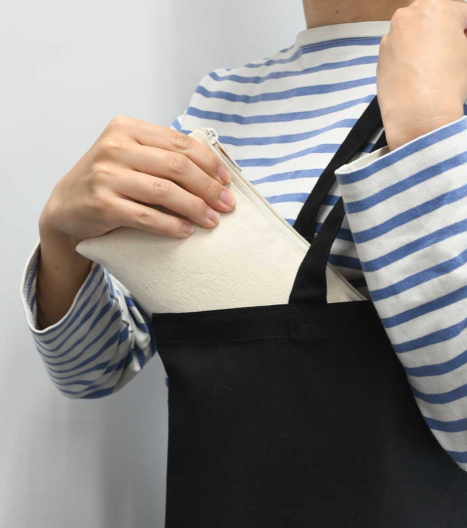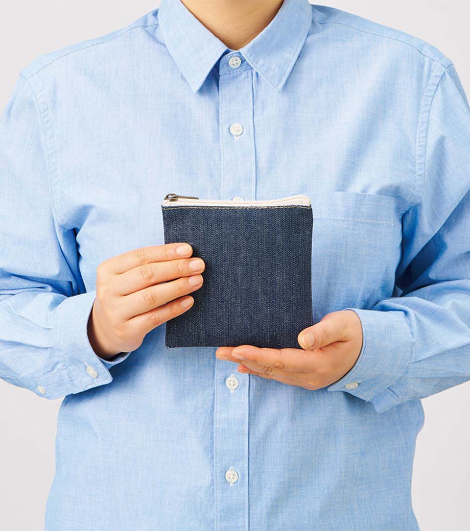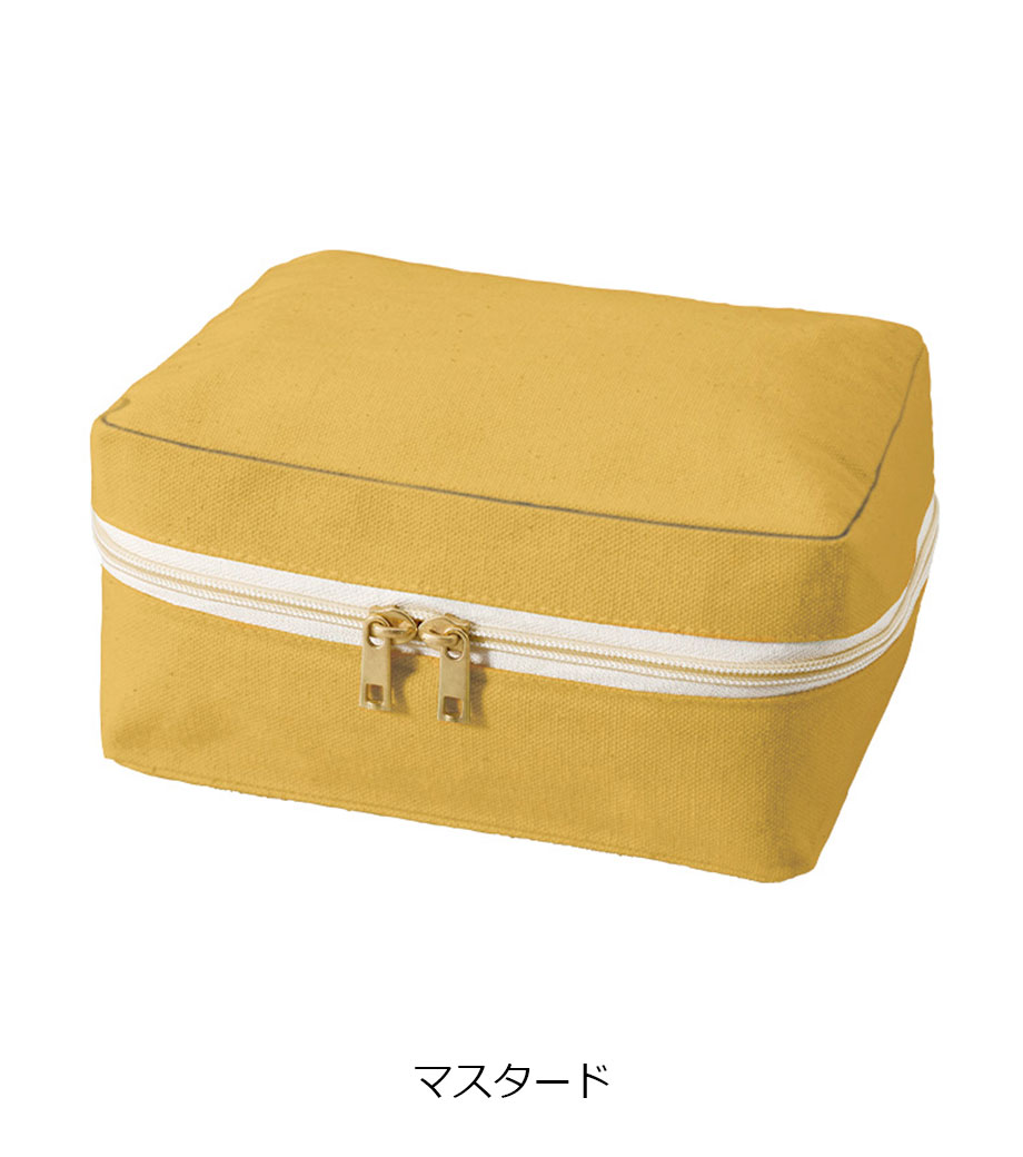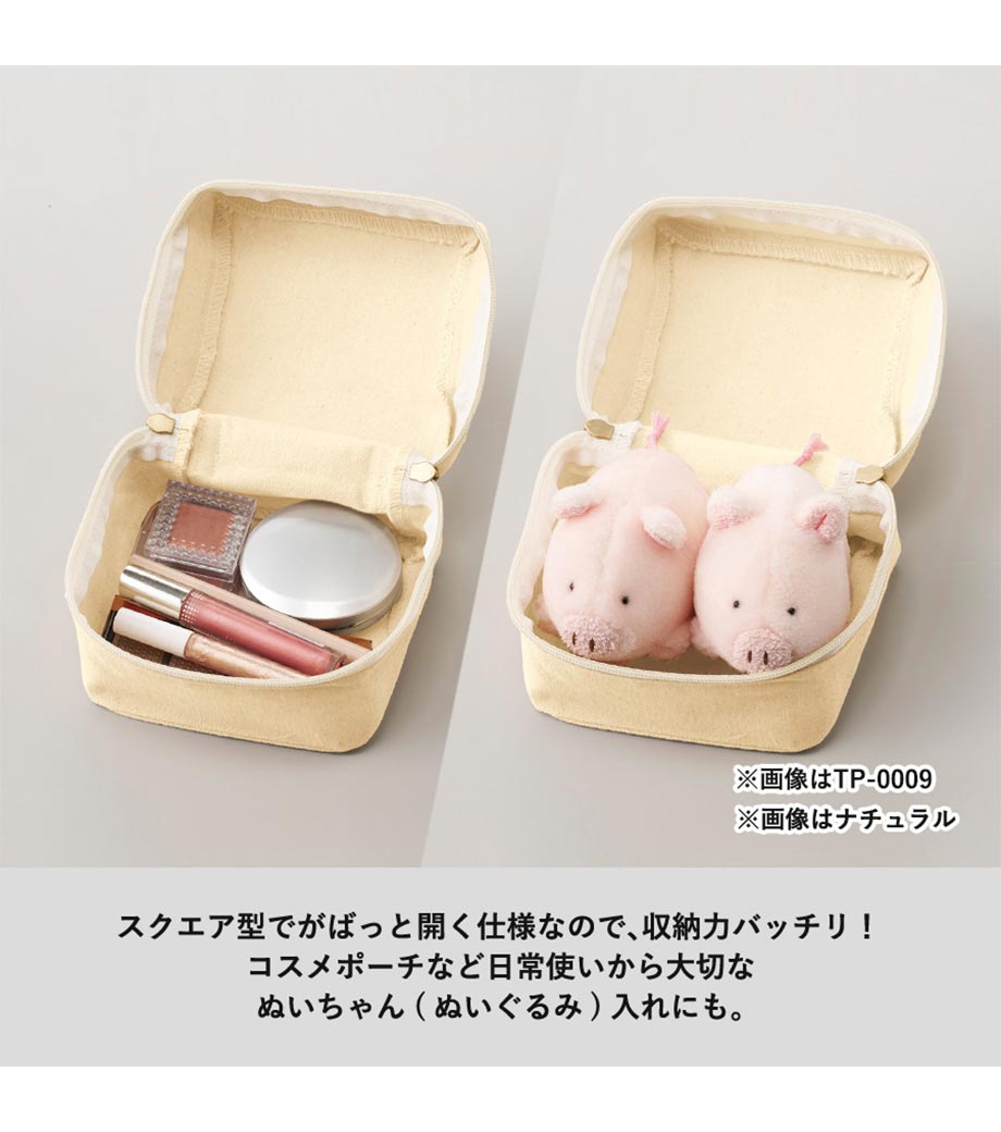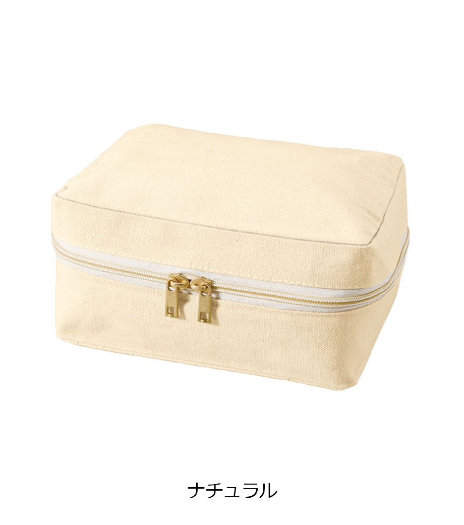 ライトキャンバスフラットポーチ(SS)は、アクセサリーやイヤホン、コスメなどの小物の収納に最適な小さめポーチです。正方形のフォルムが新鮮で、すっきりと洗練された印象です。コットン素材なのでナチュラルな風合いとやさしい手触りもとっても魅力的。シンプルなので男女問わず使いやすいのもポイントです。ナチュラル、ネイビー、ナイトブラックの人気の3色から選べます。