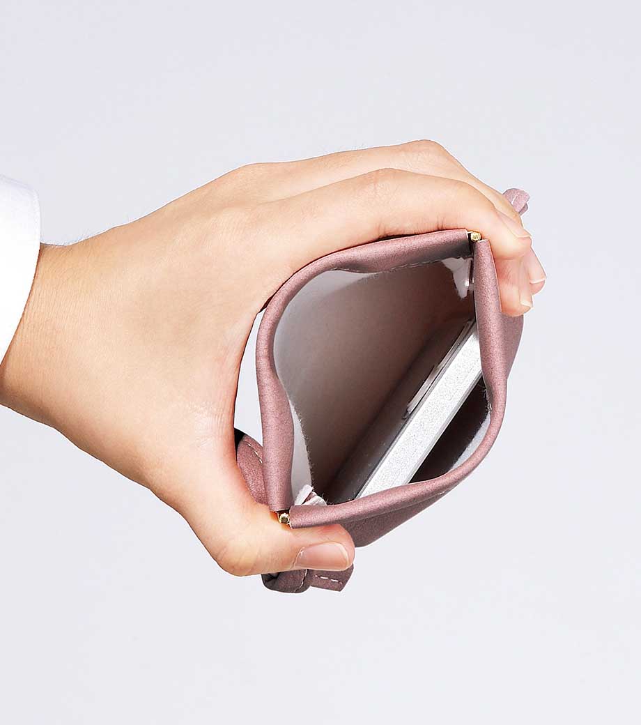 ヴェアリー・イージーオープンスリムミニポーチはバネ口タイプのポーチ。開口部の両サイドを押すだけでサッと開くとこができます。口紅・ハンドクリームのコスメの他、スマホケーブルやイヤホン等のガジェット、小銭などバッグの中で散らかりやすい小物入れにもぴったりです。柔らかいPVC生地のお洒落な見た目で、アパレル関係のオリジナルノベルティにおすすめです。