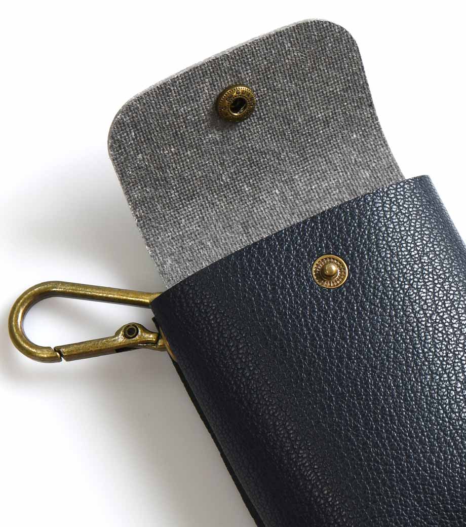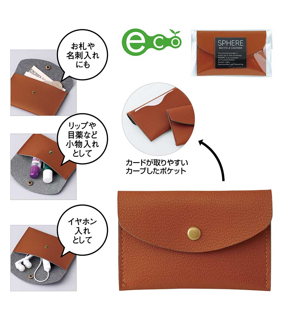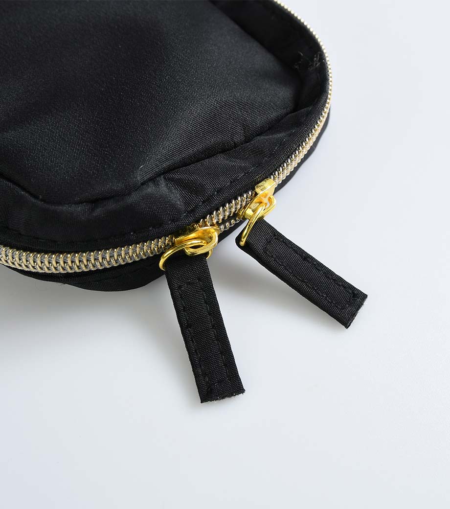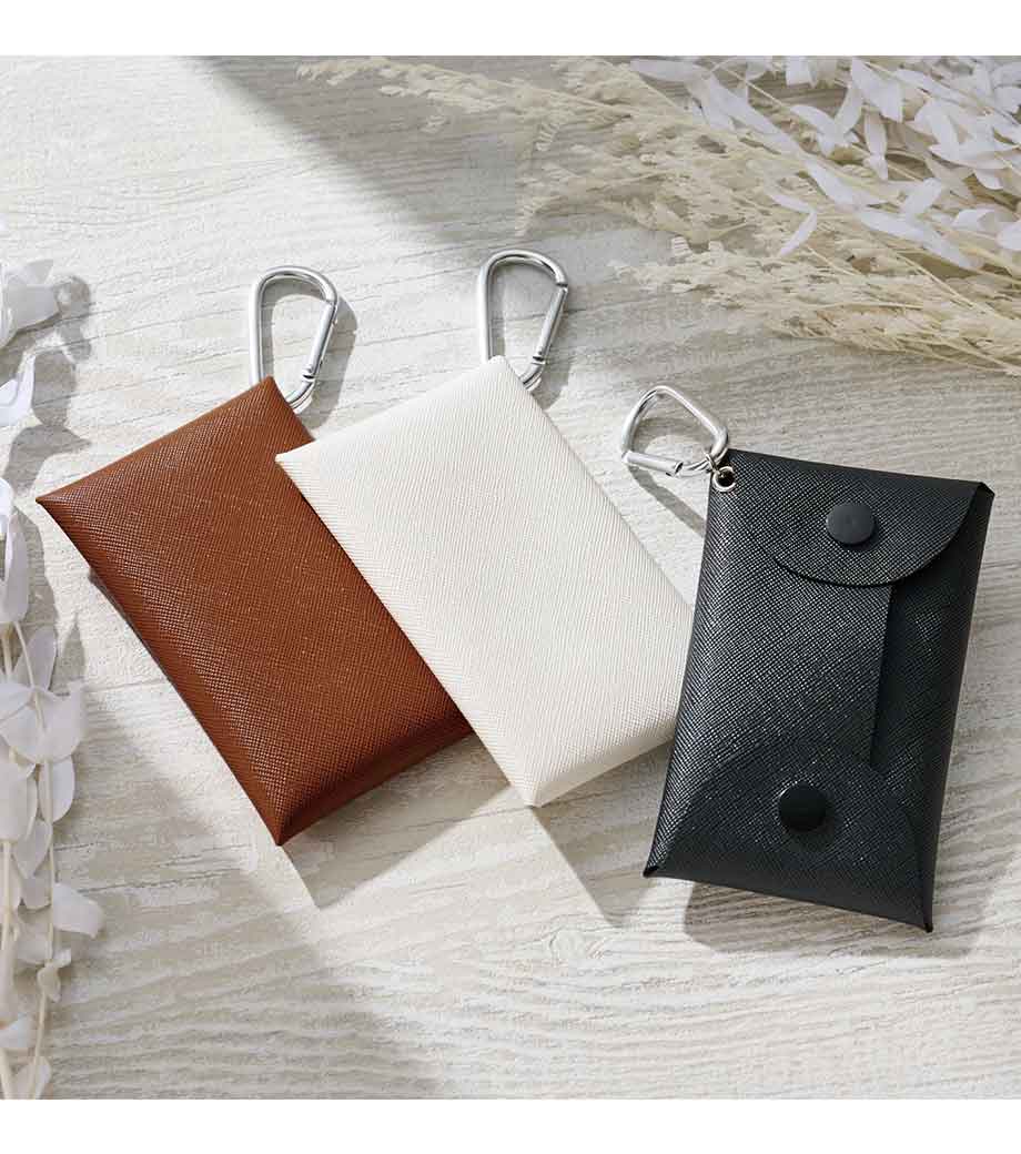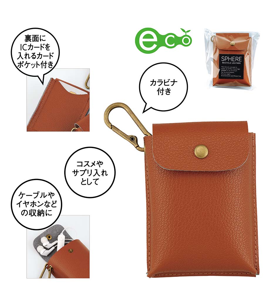 光沢感があり柔らかい生地感で、使い勝手も抜群。撥水性があるので、お手入れも楽ちんです。カバンやベルトループに付けられるキーホルダー付きで、お出かけにも便利。リーズナブルでありながら、高級感あるノベルティで人気です。