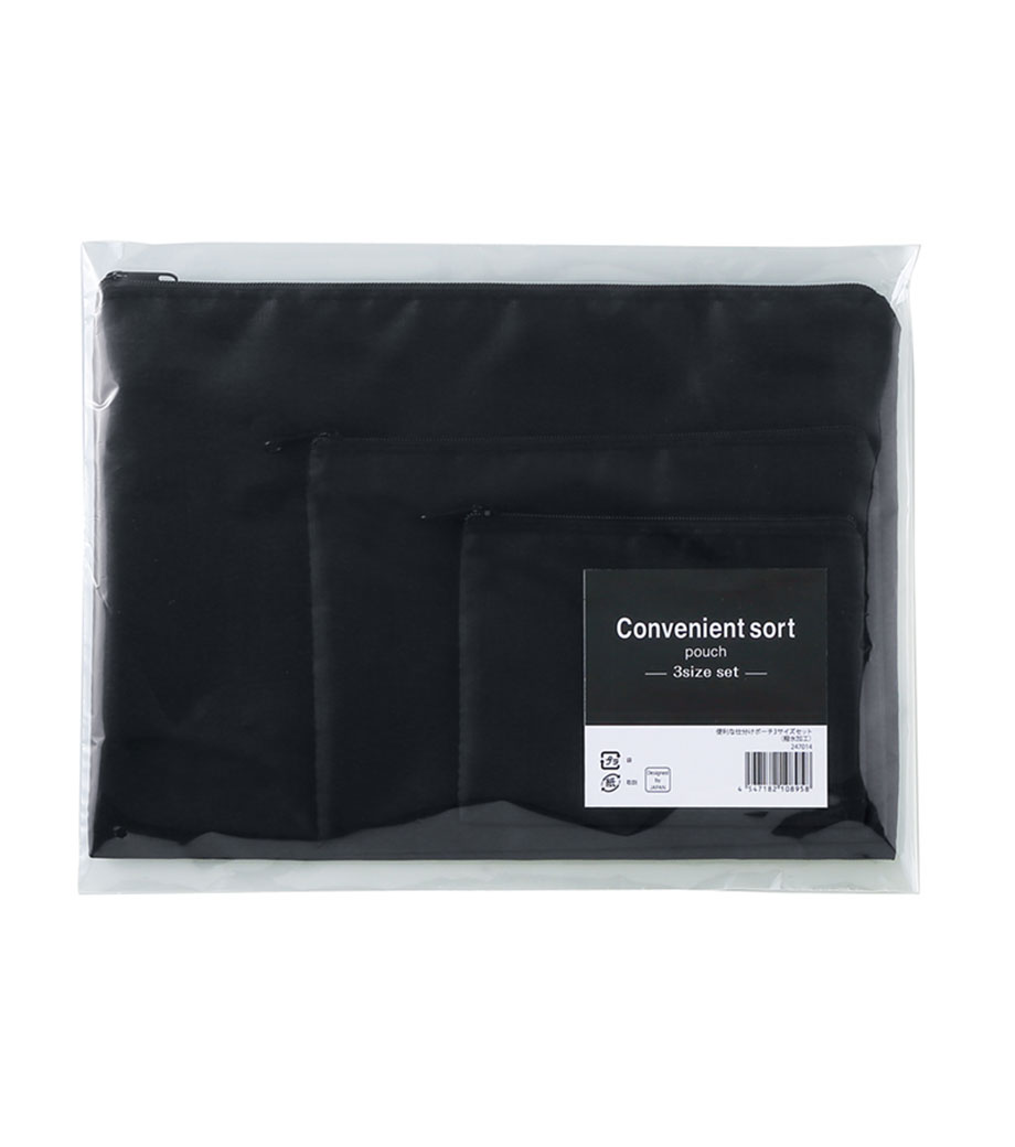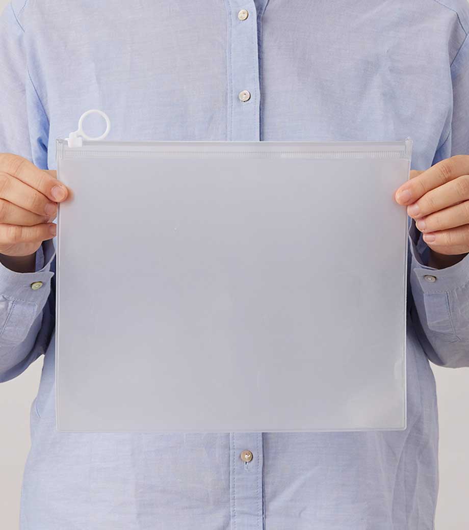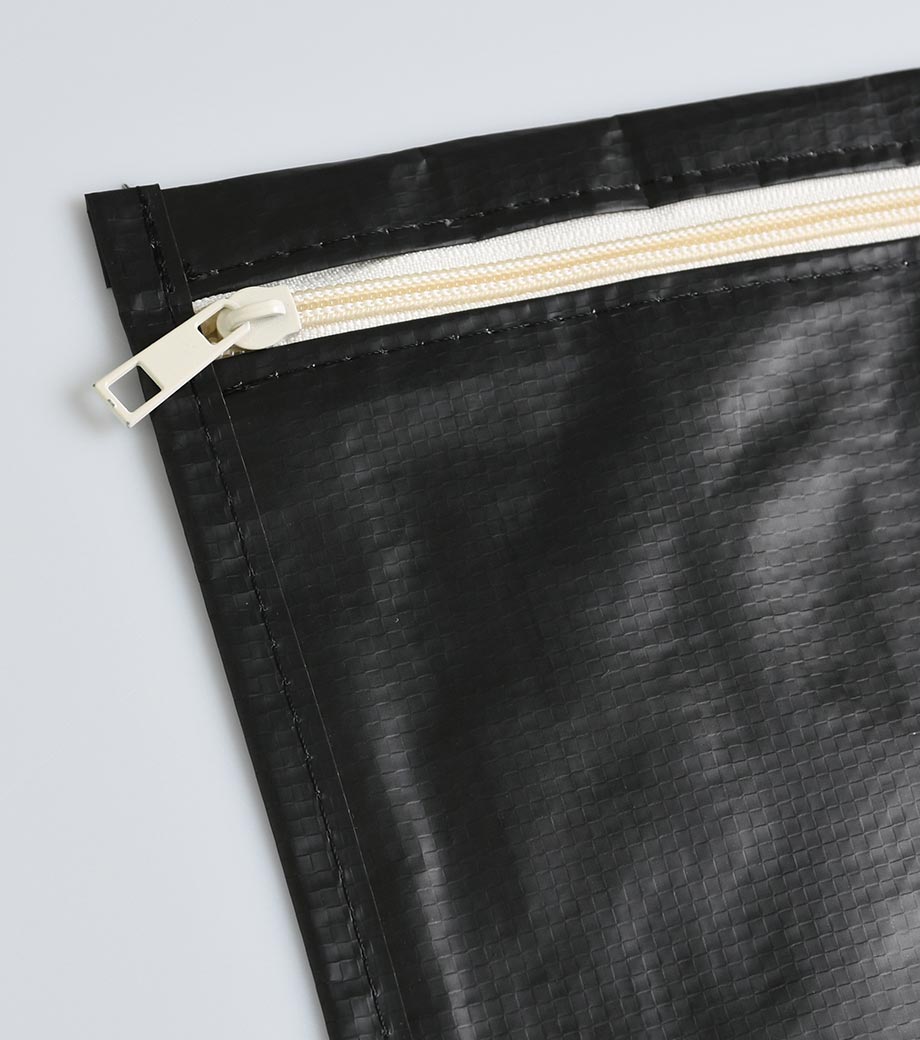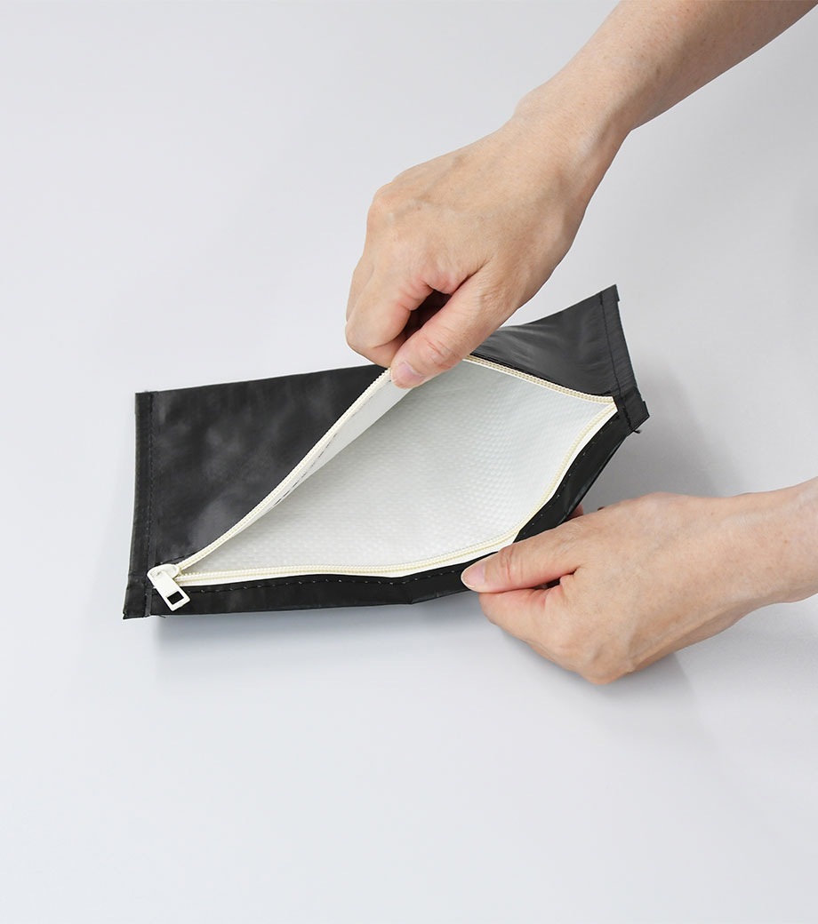 マチがない薄型なのでバッグに入れてもかさばりません。厚手のポリエステル素材でとっても丈夫!ループ付きなのでファスナーも開けやすく、壁掛けもできちゃいます。シンプルなデザインで男女問わず使えます。