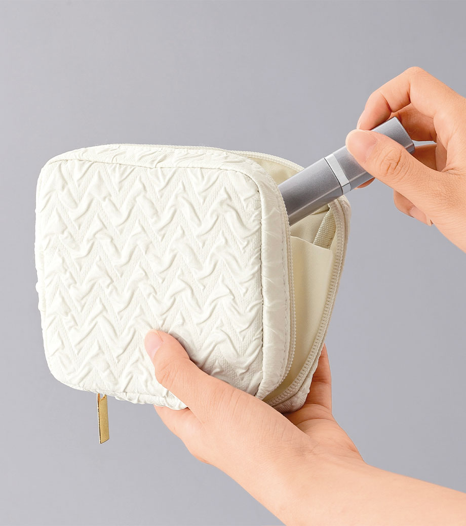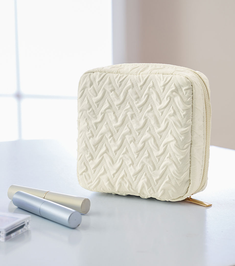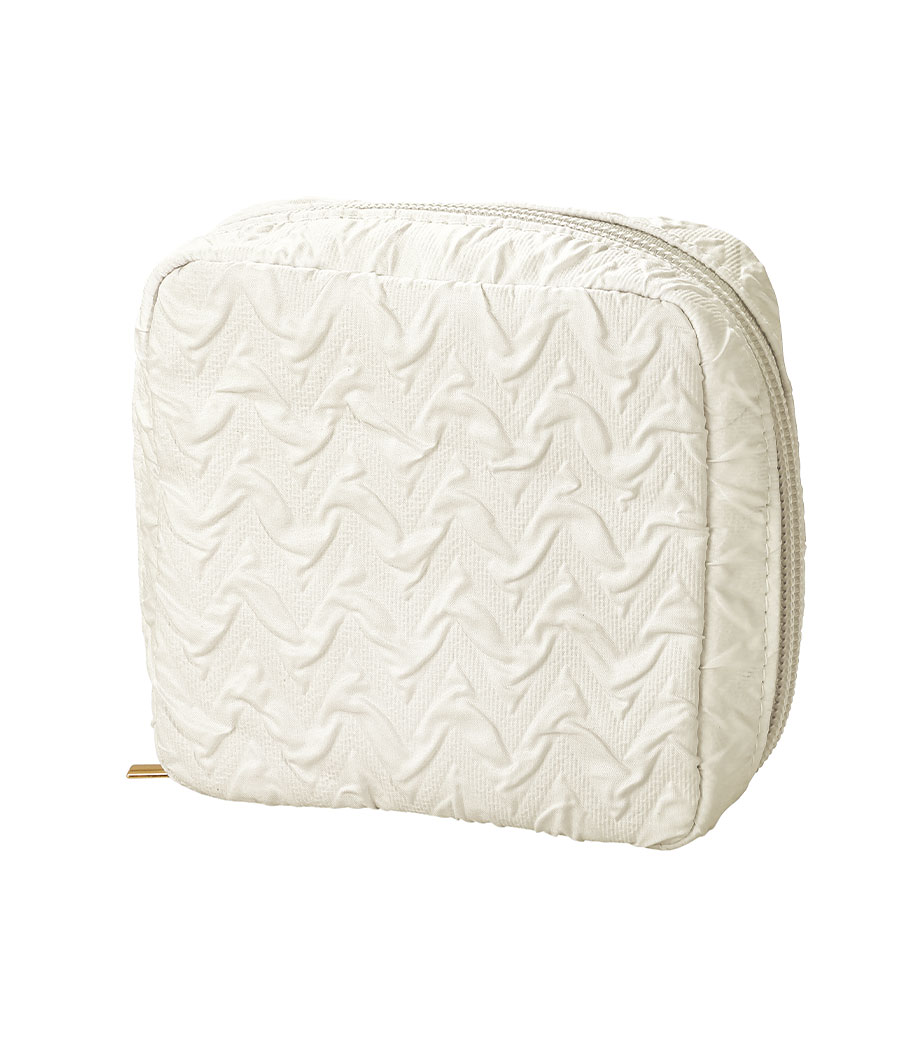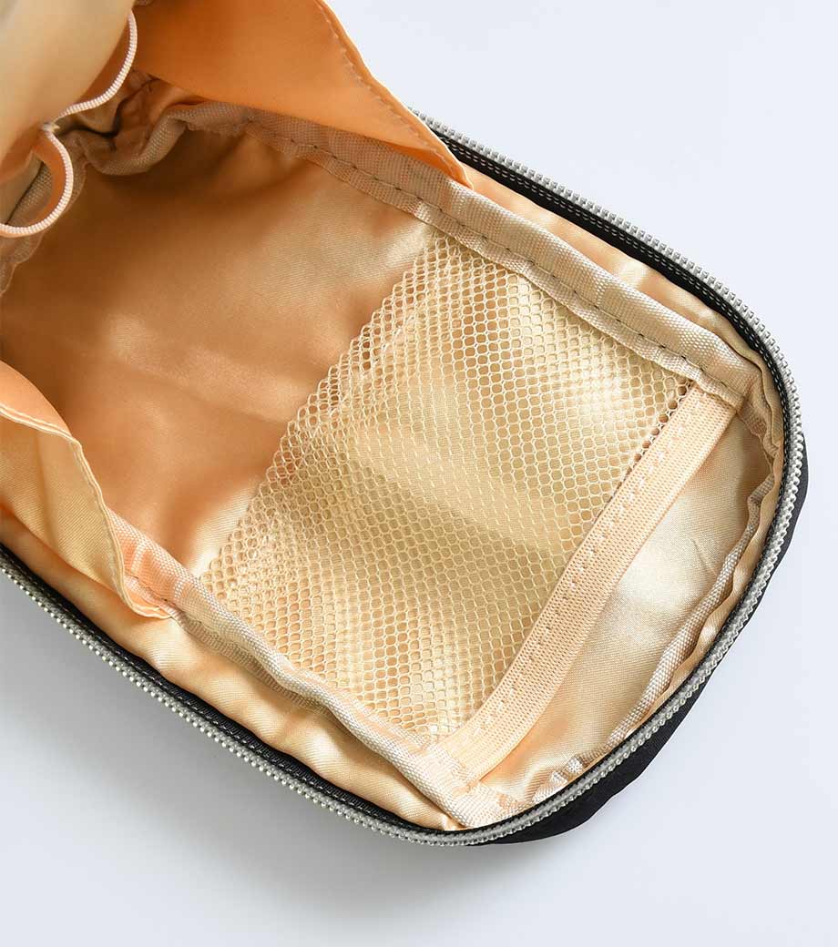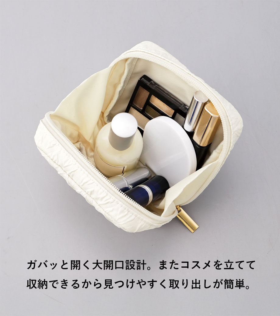 軽量でクッション性に優れたポーチです。180度大きく開くから収納しやすく、中身が一目瞭然。コスメやモバイルバッテリー、ケーブル類などを機能的にまとめることができてバッグ内の整理整頓に便利です。優しいカラーリングも魅力。普段使いはもちろん、スパや旅行、コスメポーチとしても活躍します。