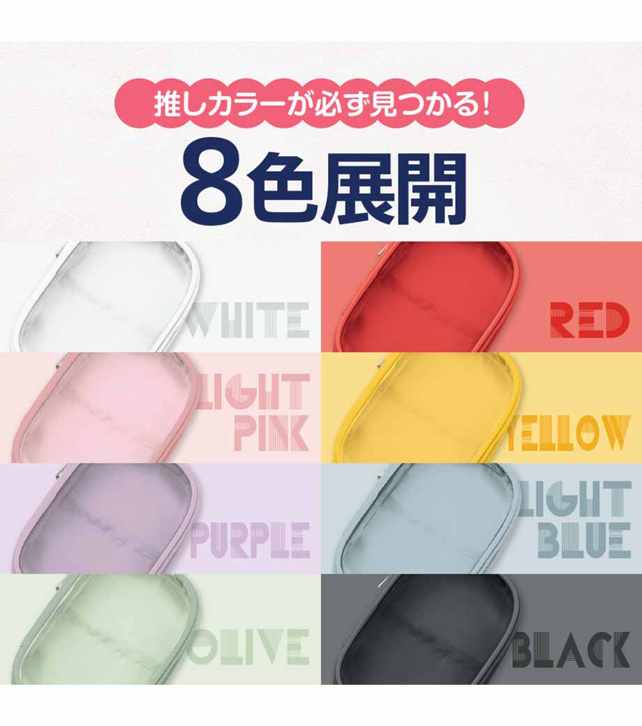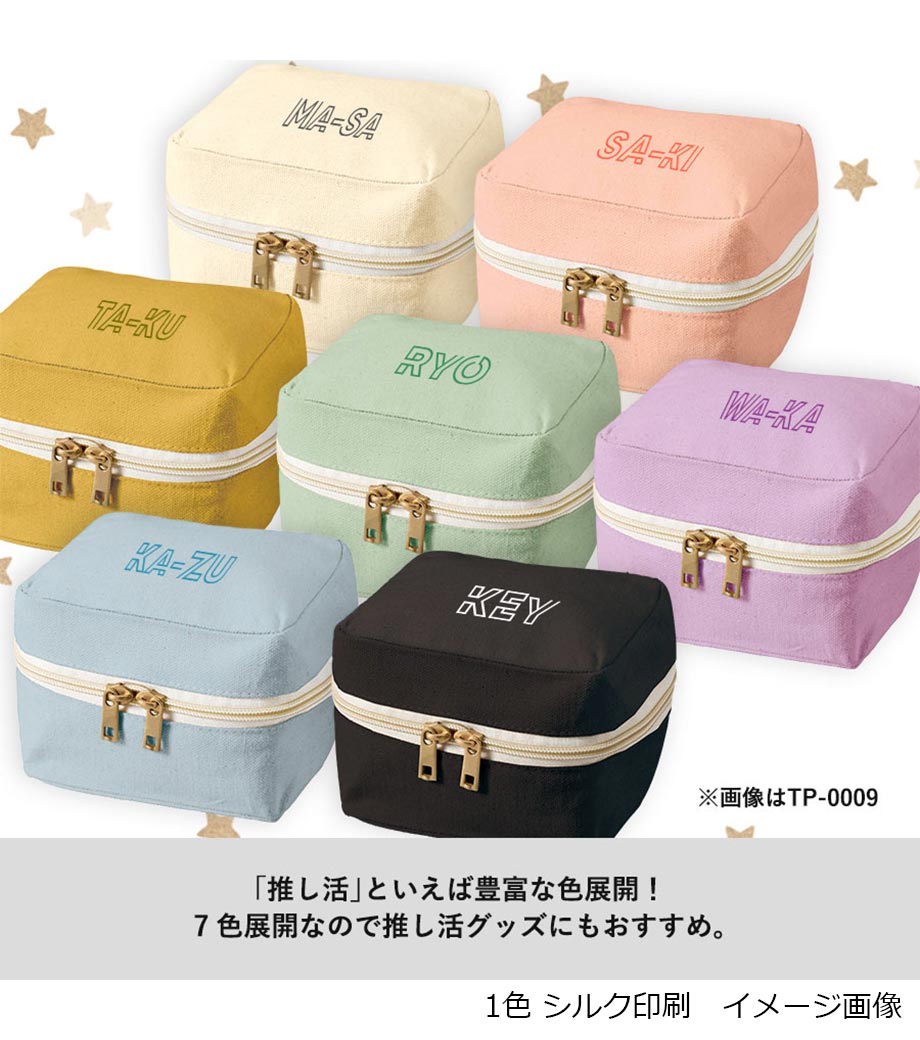 表面にはオリジナル印刷が可能。キャラクターやブランドロゴを印刷すればオリジナルティの高いグッズが制作できます。ファスナー部分は、テーマカラーに合わせて選べる豊富なカラー展開!キャラクターグッズを入れたセット販売にもおすすめです。