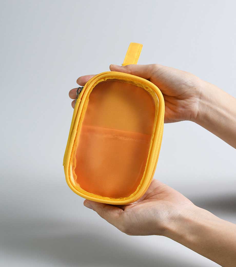 おしゃれなクリア素材で日常使いに便利なマルチケースです。絆創膏や目薬など、バッグの中で迷子になりがちな小物を収納できます。カラビナ付きでリュックやベルトに取り付け可能。カラバリ豊富なので、缶バッジや小ぶりなアクリルスタンドなどを入れる推し活グッズにもおすすめです。
