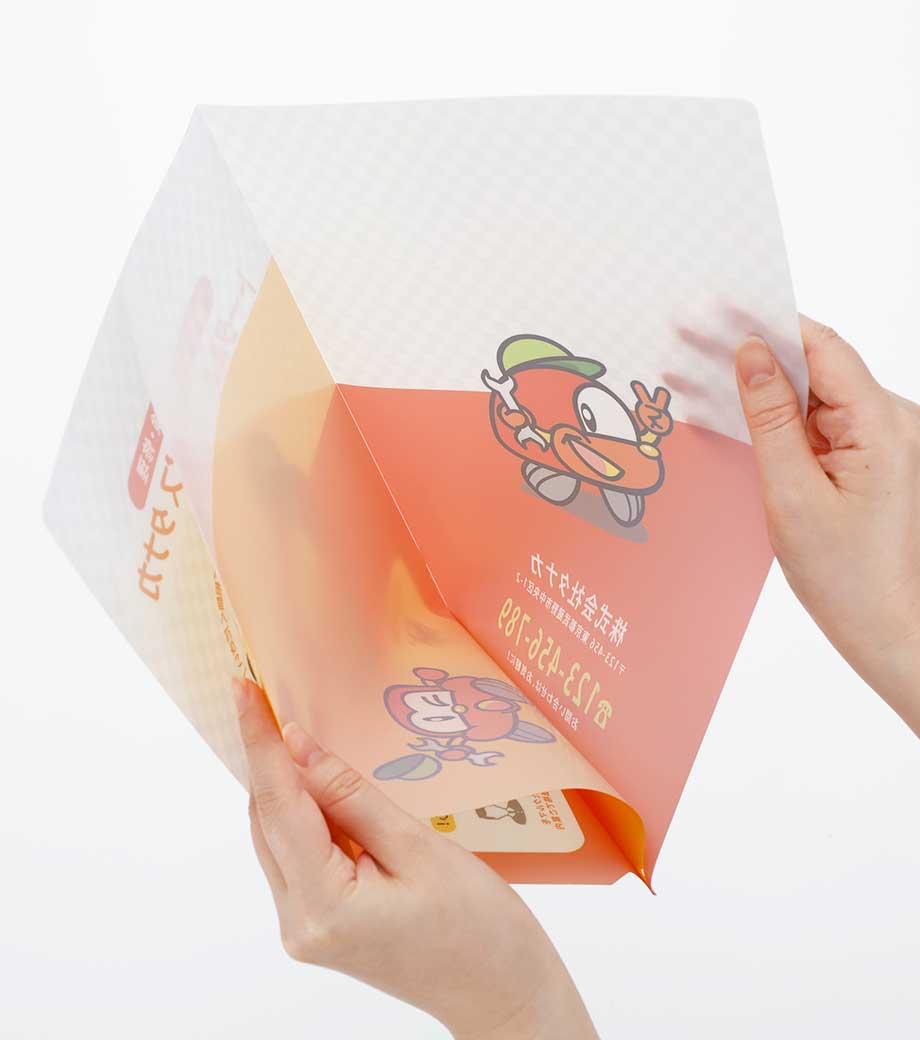 表紙部分に大きくフルカラー印刷ができるので、自治体や企業のマスコットキャラクターやイラストを自由に表現することができます。