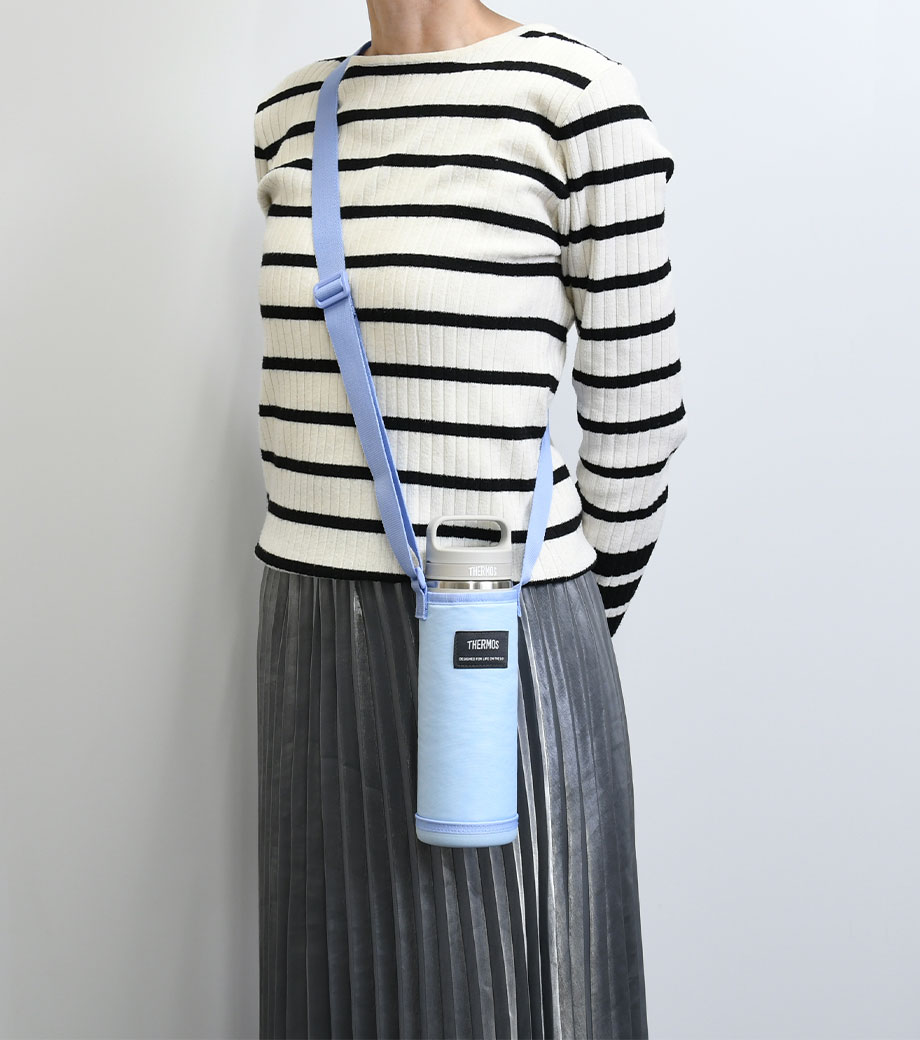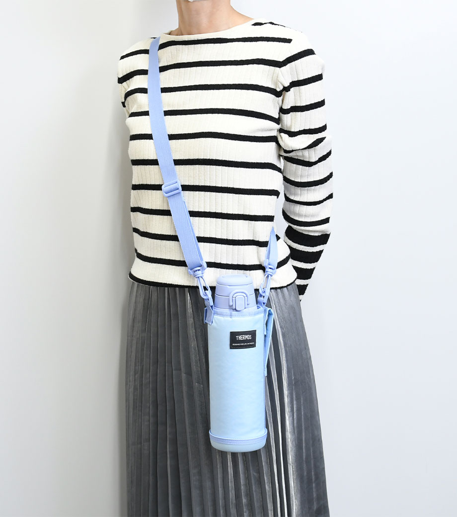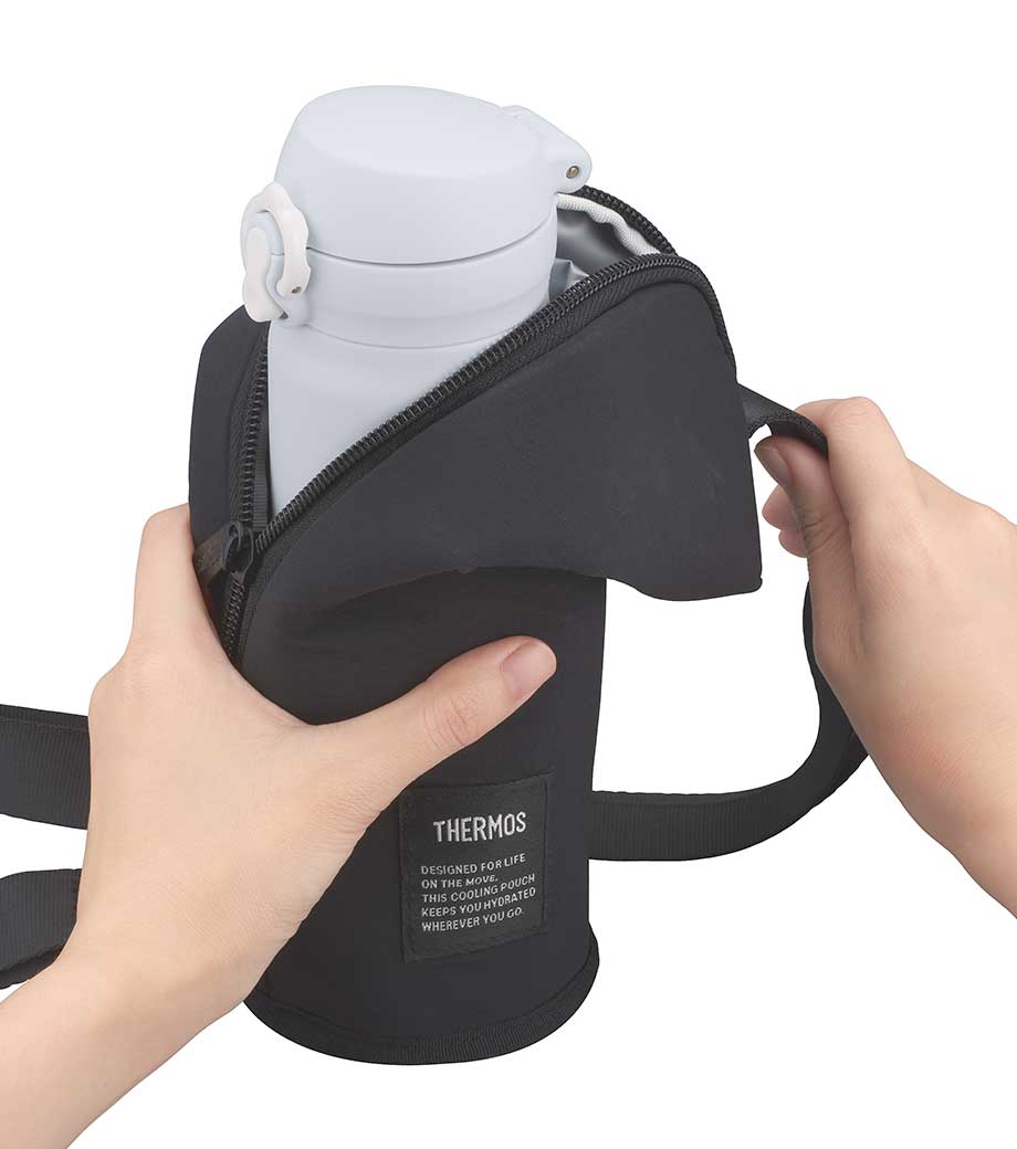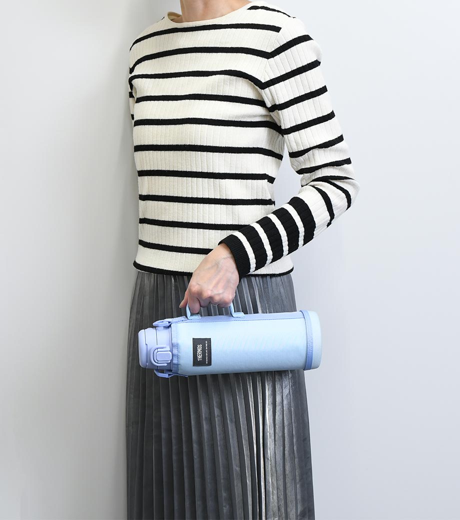 直飲みタイプの保温・保冷ステンレスボトル。容量約1Lの大容量サイズで、スポーツやアウトドア、屋外作業など、水分補給が多いシーンでもしっかり対応できます。本体は手に馴染みやすいパウダーコーティング仕様で、持ち手ハンドル付きのため持ち運びも快適。フタはスクリュータイプを採用し、開けたらすぐに飲める手軽さがポイントです。
