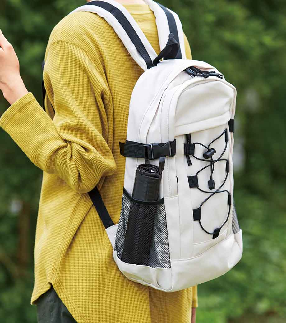 水に強く軽量で耐久・通気性がある優れものPPクロス素材バッグ。マチがあるのでカタログや習い事のテキストなど重い荷物が楽に運べて自立します。汚れてもサッと拭けば綺麗になるから、お手入れが楽チン!レジャーにもおすすめです。