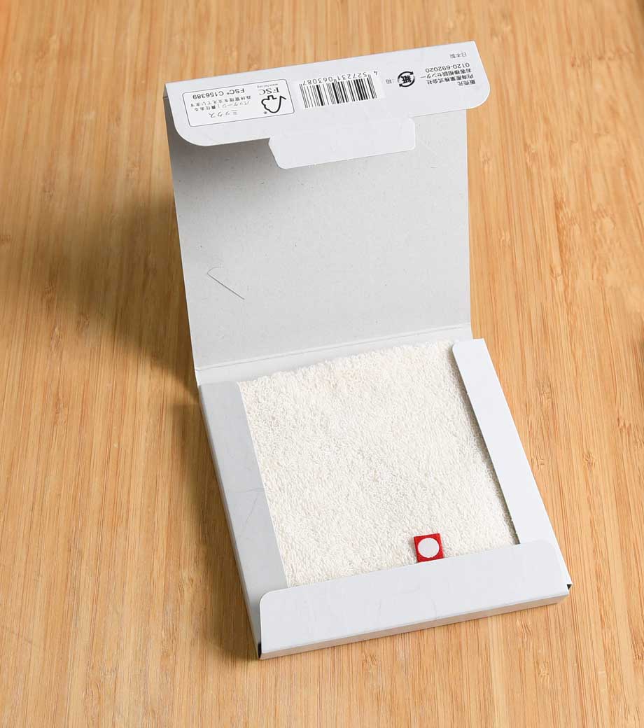 タオルは二酸化炭素排出量を従来の40%削減した方法で生産され、地球温暖化防止に貢献。パッケージもFSC認証マーク入りなので、環境問題に取り組む企業におすすめのノベルティです。