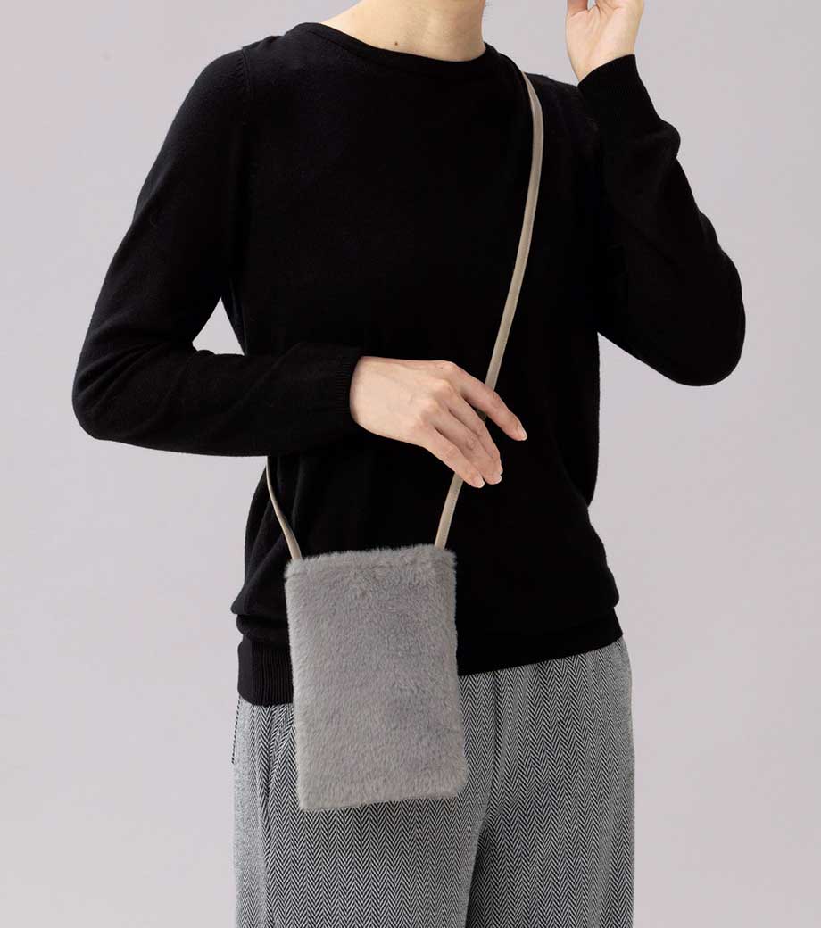 スマホと小さめのお財布がしっかり収まるサイズ感で、必要なものだけを軽やかに持ち歩けます。上品なファー素材がコーデに季節感と華やかさをプラスしてくれるので、普段使いはもちろん、お散歩やカフェタイムにもおすすめ。ギフトにも喜ばれるアイテムです。