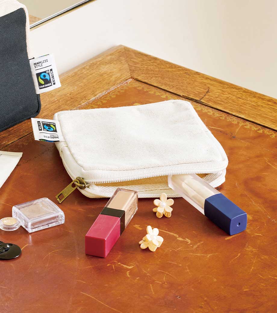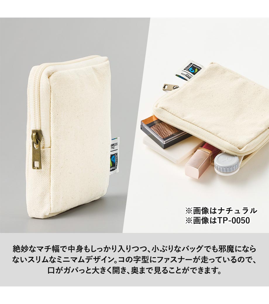 「キャンバスファスナーポーチ(M)」は化粧品や文具をまとめる日常的な使用からアクセサリー、ステーショナリーなどの持ち運びも便利できるポーチ。