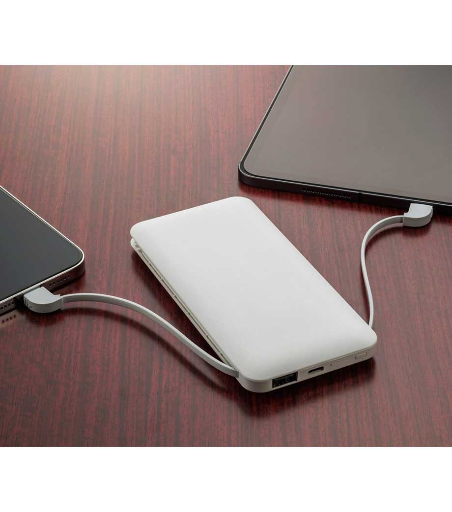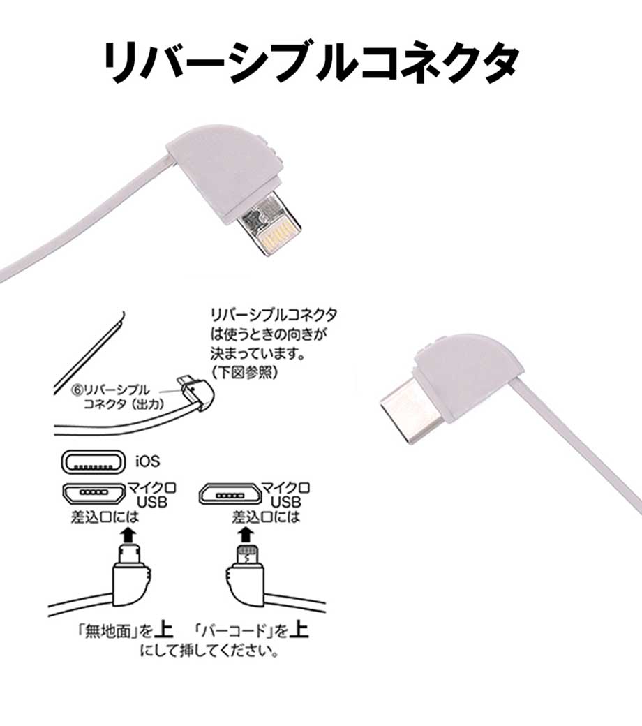 大容量10,000mAhのバッテリーです。Type-Cとリバーシブルコネクタが本体と一体型なので、さまざまな機器への充電できます。電池残量は4段階のランプで確認可能。