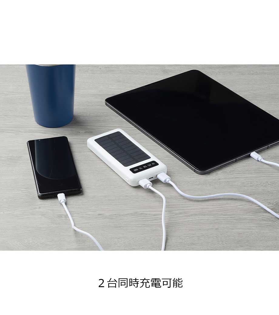 2台同時に給電できるので、旅行先でスマホとデジカメをチャージしたり、災害時には家族とシェアして充電できますね。1台あると安心のモバイルバッテリーです。