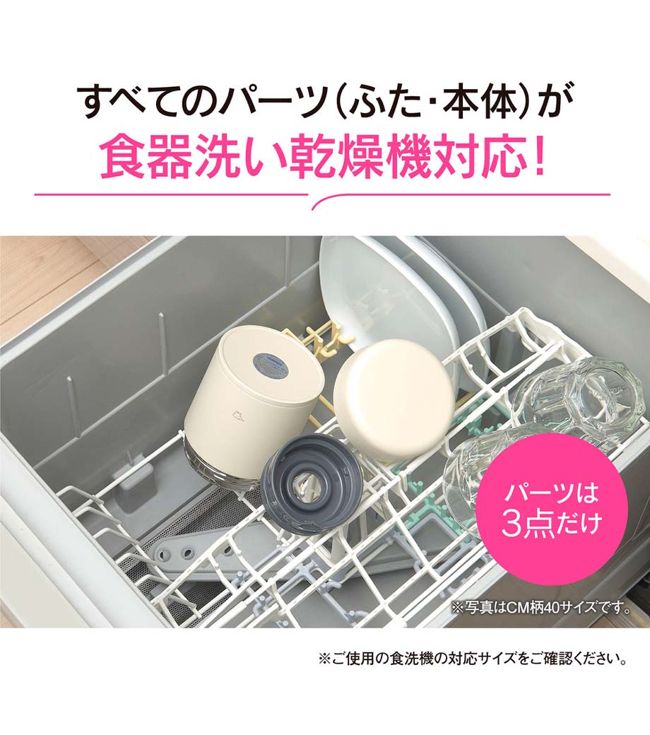 容量たっぷり約500mlのスープジャーです。真空断熱構造のステンレス製で保冷・保温効果抜群。丸ごと食洗機対応でお手入れ簡単です。パーツは分解可能なので衛生面も安心。