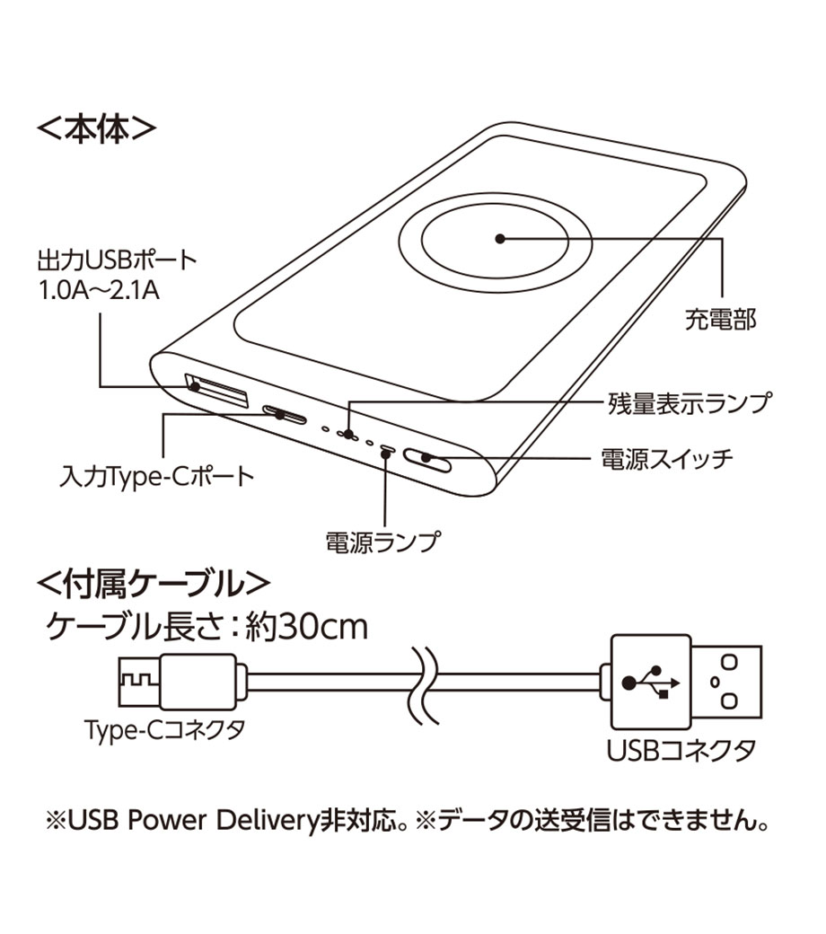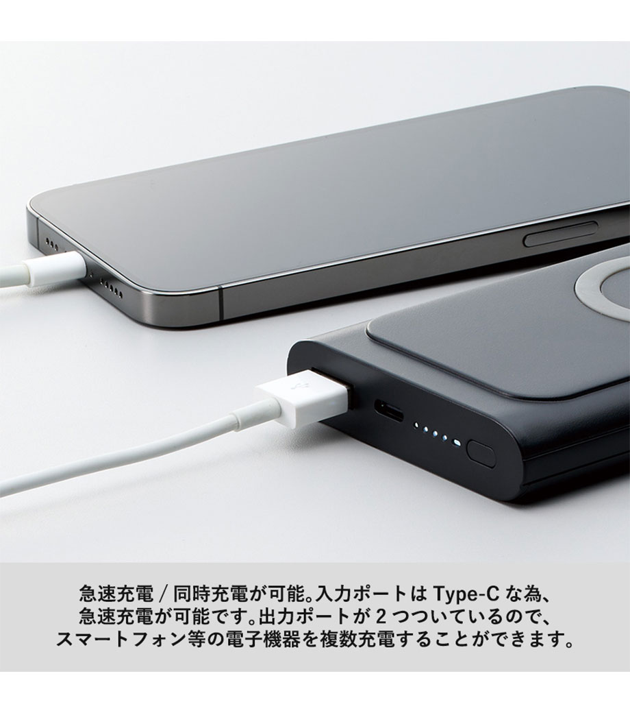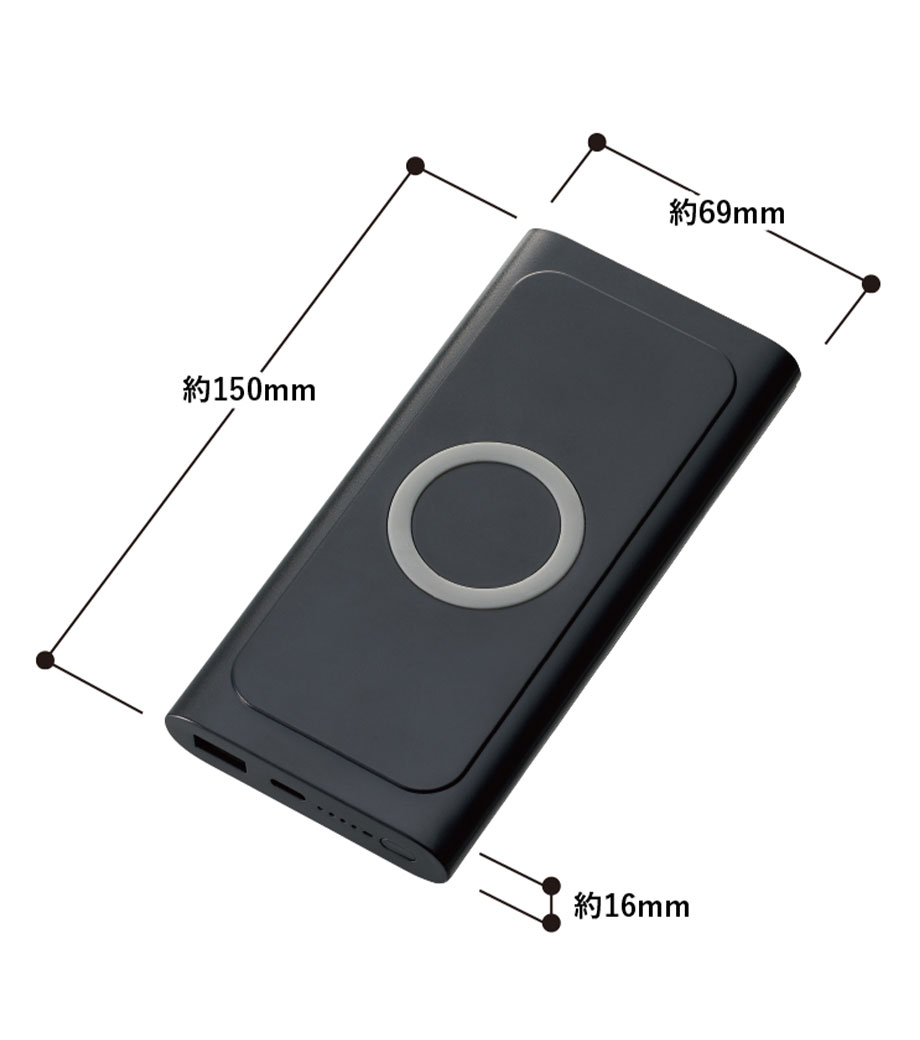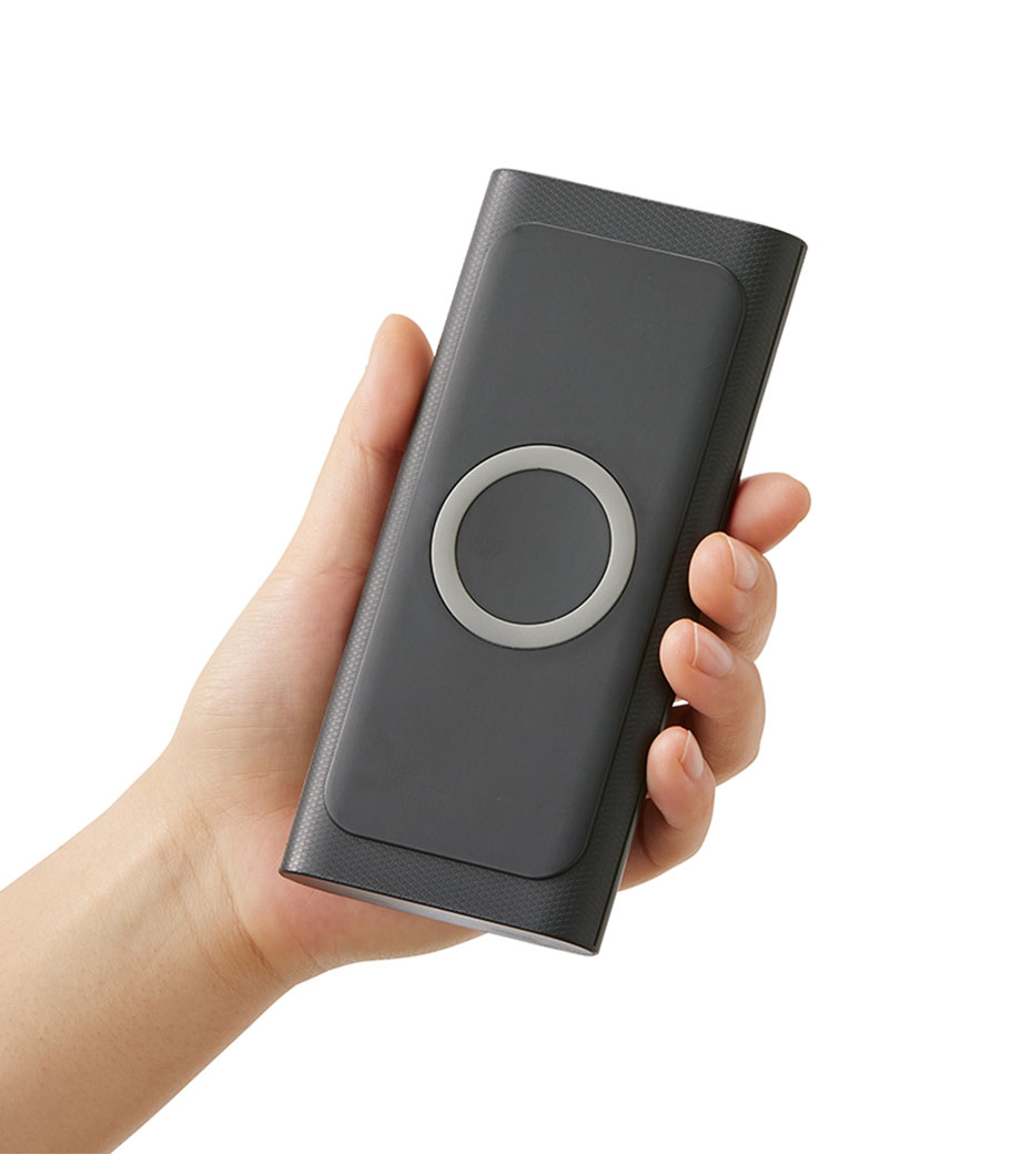 容量10000mAhのワイヤレスモバイルチャージャーです。スマホをポンと置くだけで充電が開始されて便利!入力ポートは急速充電可能なType-Cタイプ。お出かけ時や、災害時にも活躍します。
