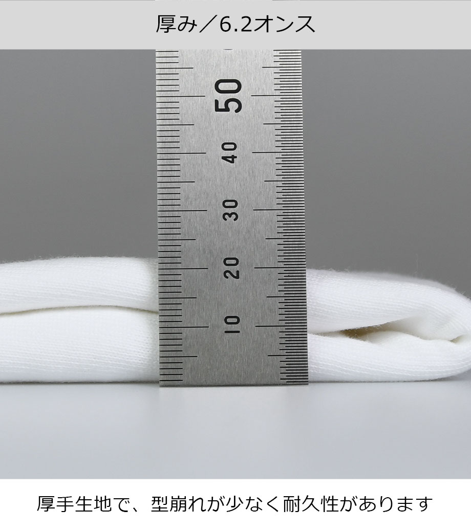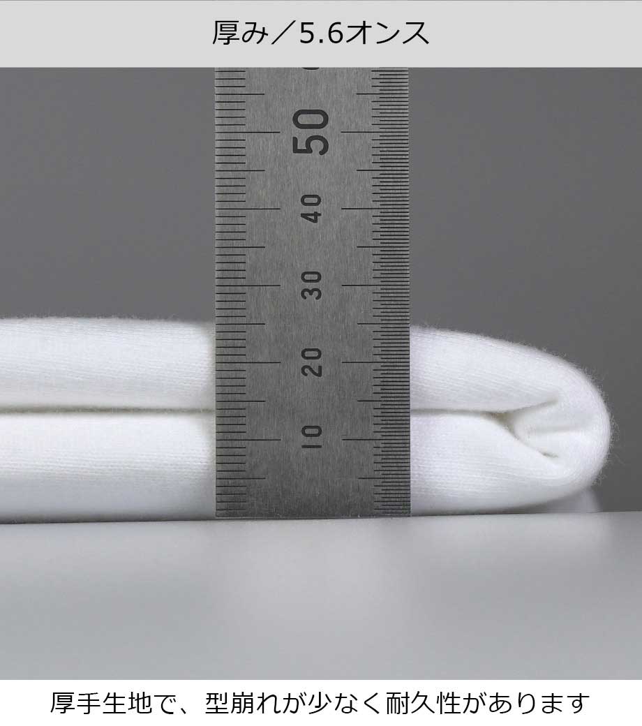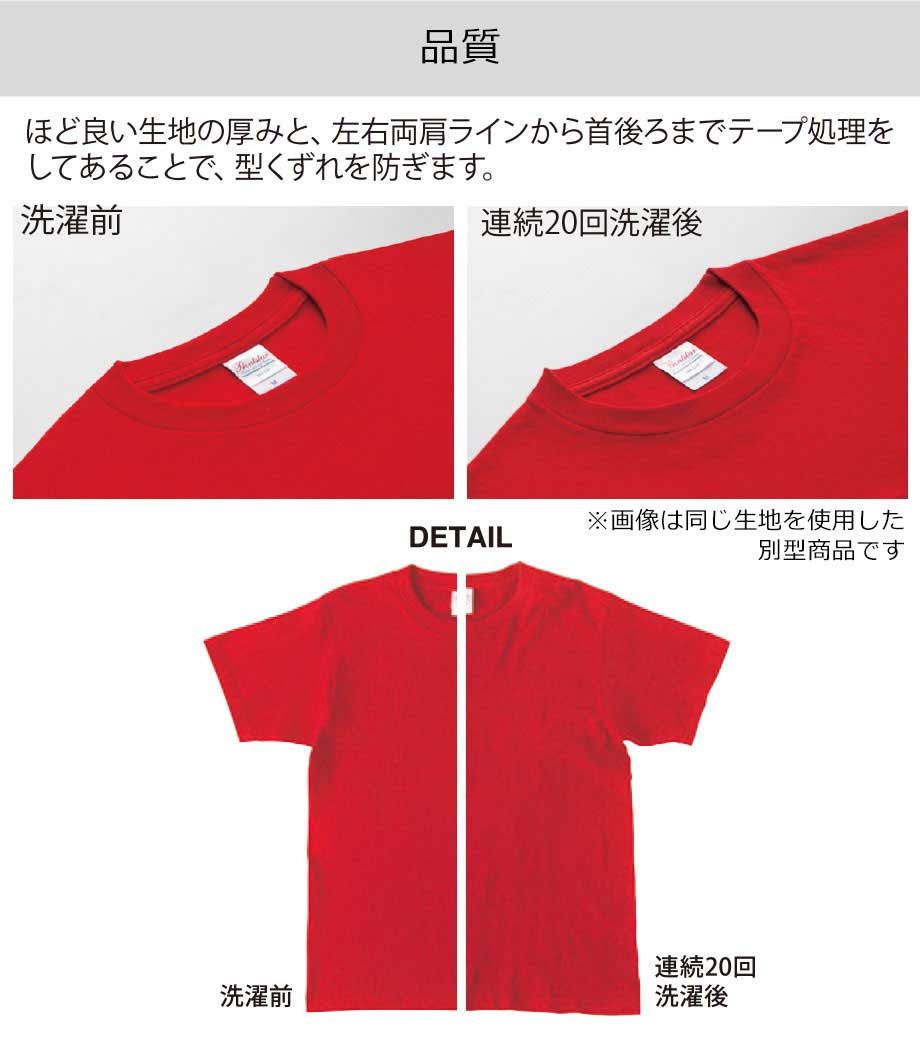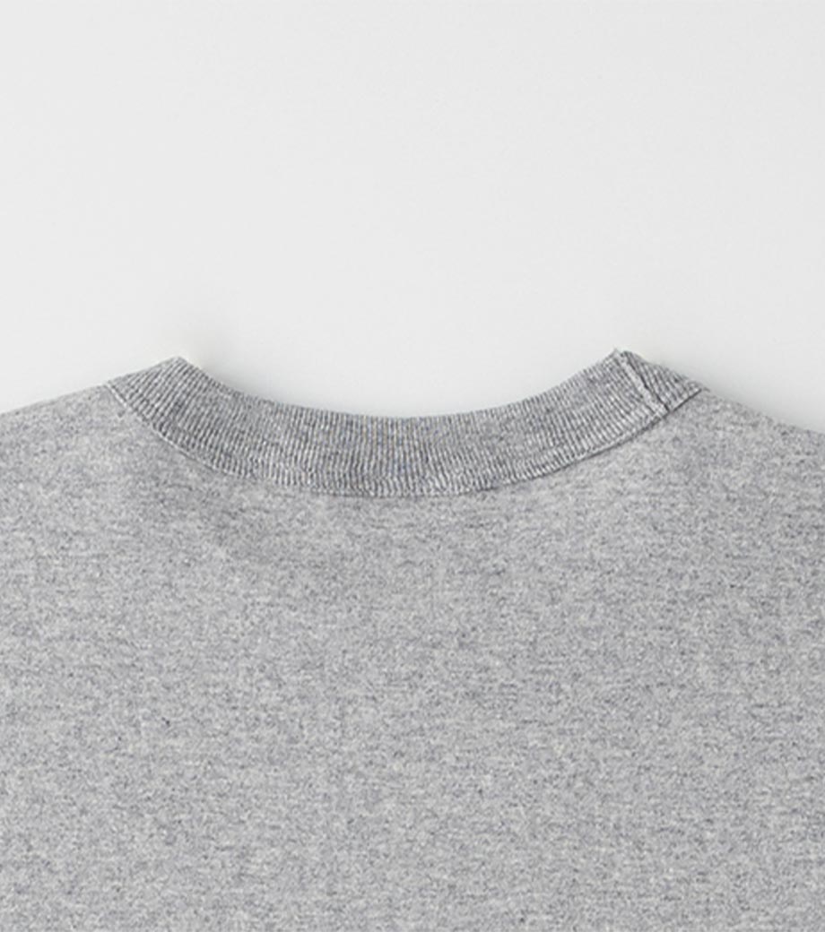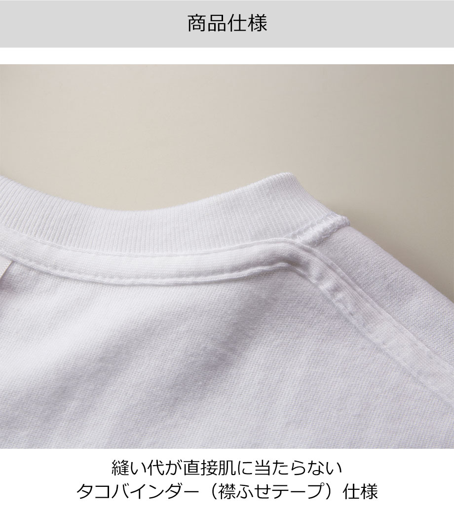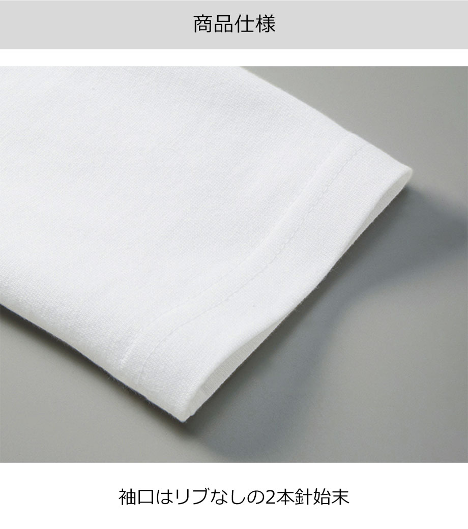 綿100%の優しい肌触りで、着心地の良さも抜群。首回りのステッチを二重にするなど、よれにくく、長く使える機能性と耐久性が魅力です。適度な厚みで、オールシーズン活躍する大定番のアイテムです。