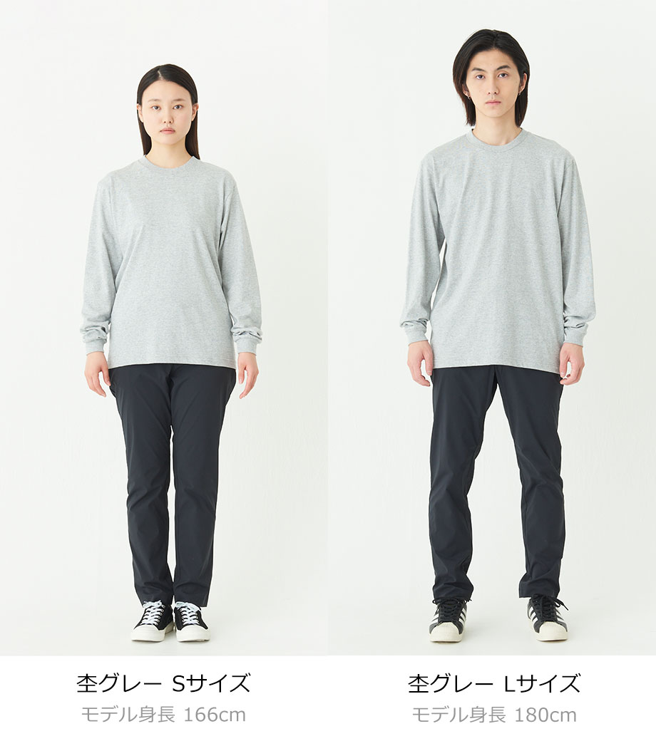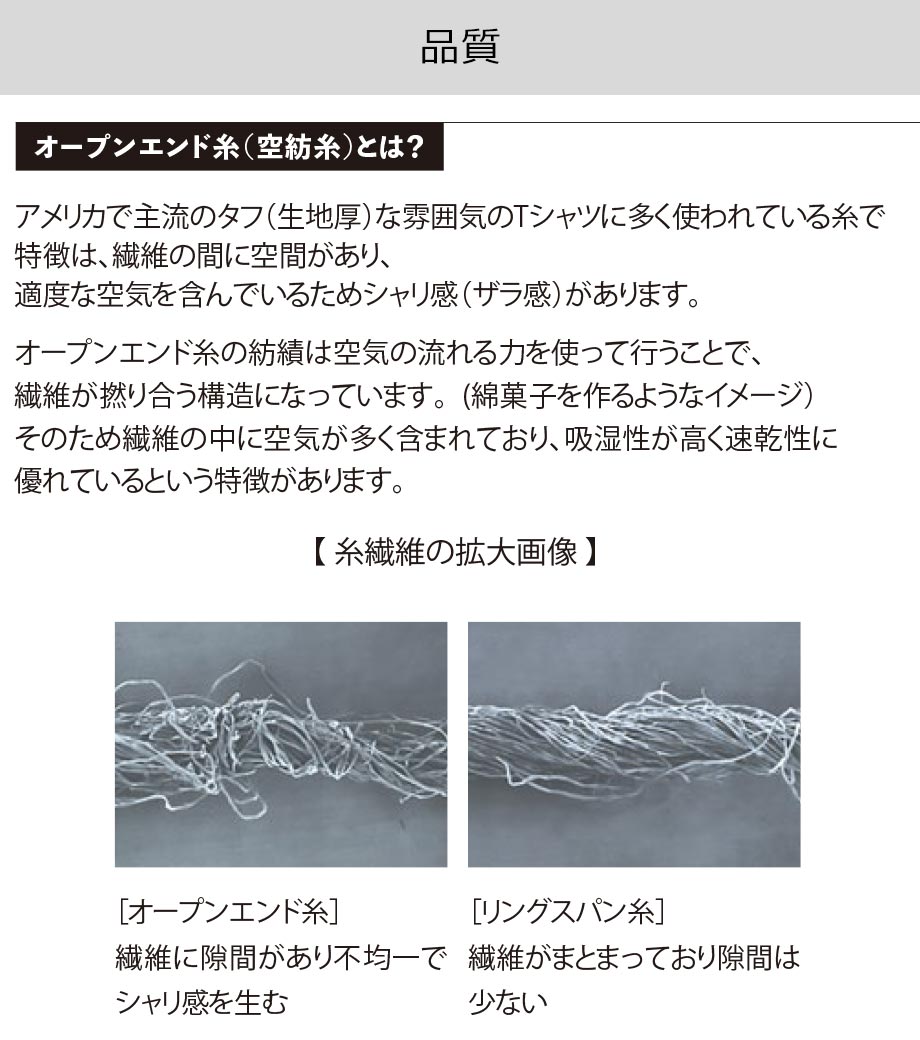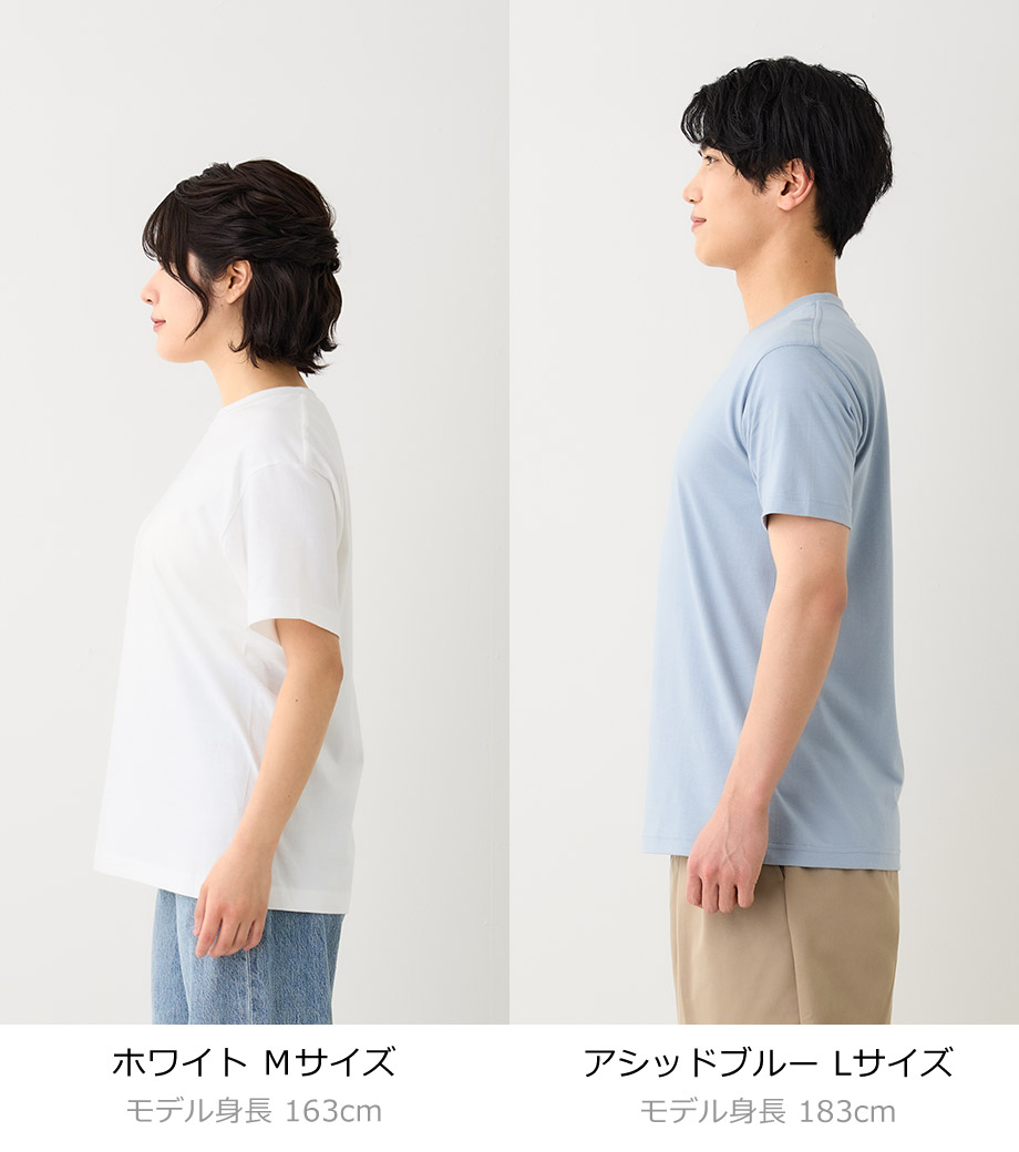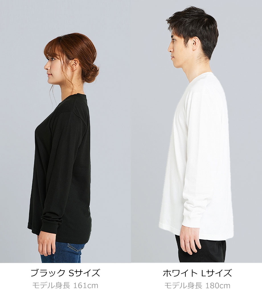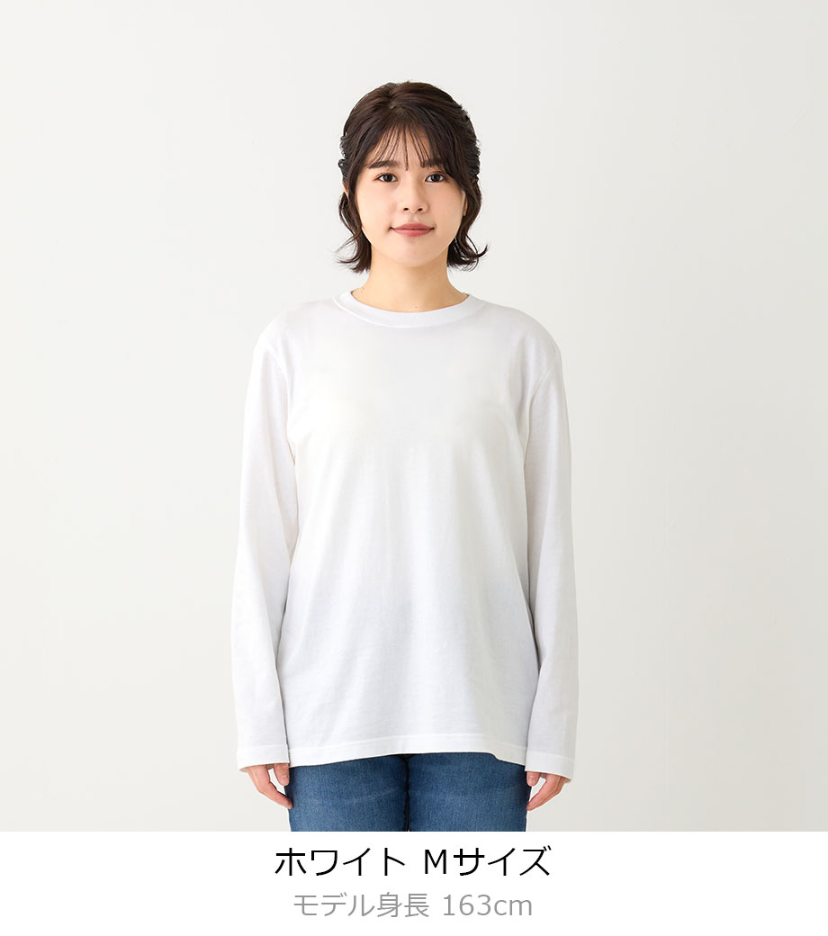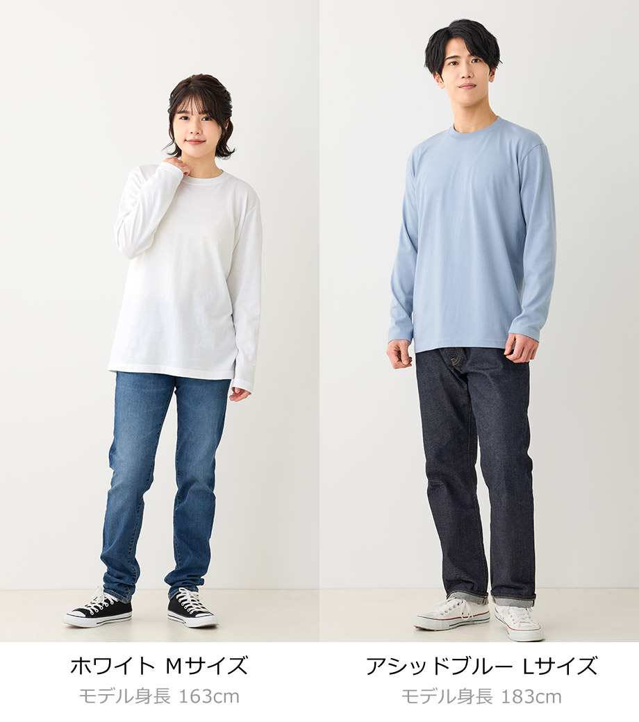 綿100%の優しい肌触りで、着心地の良さも抜群。首回りのステッチを二重にするなど、よれにくく、長く使える機能性と耐久性が魅力です。適度な厚みで、オールシーズン活躍する大定番のアイテムです。