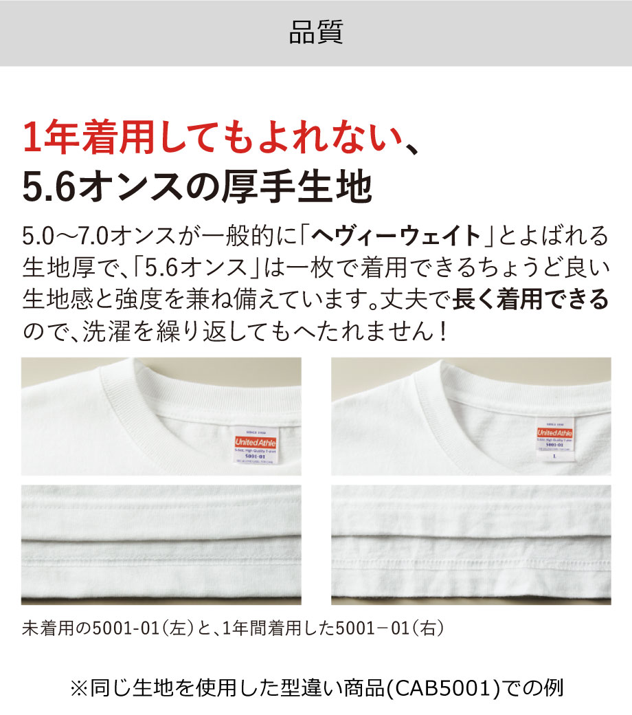 着心地の良さと丈夫さを兼ね備えたハイグレードなTシャツです。厚手のコットン生地で型崩れしにくく、首回りはダブルステッチ仕様で強度アップ。さらに毛羽立ちを抑えるコーマ糸を採用しています。