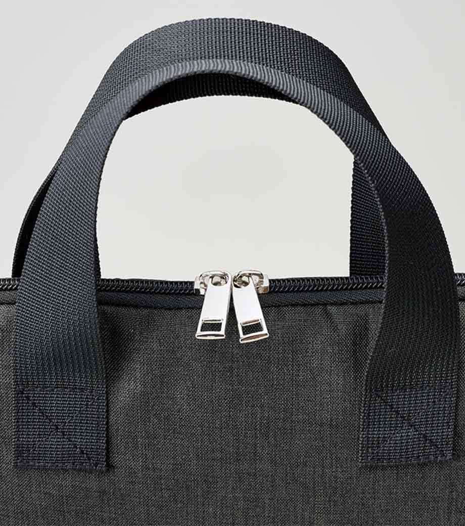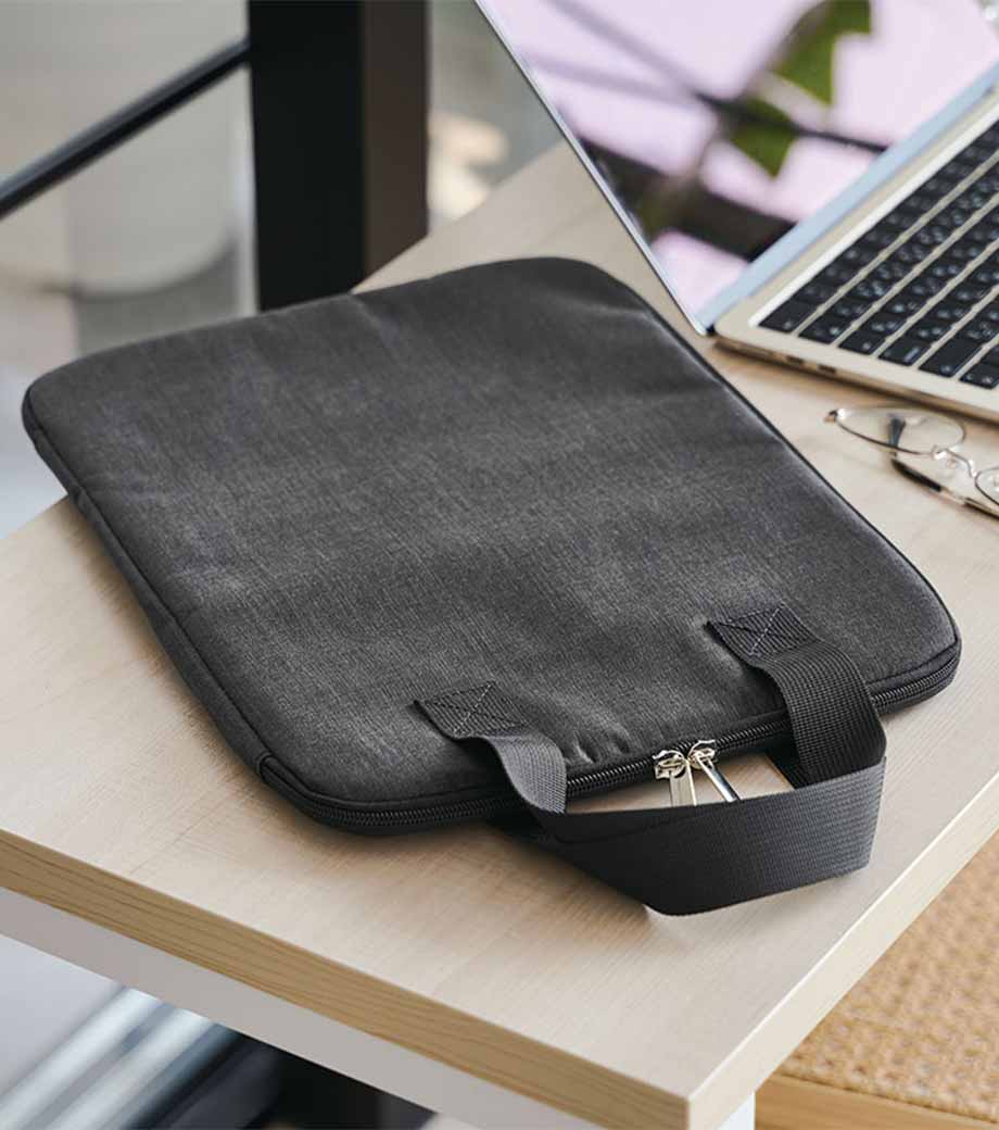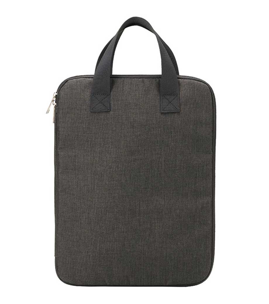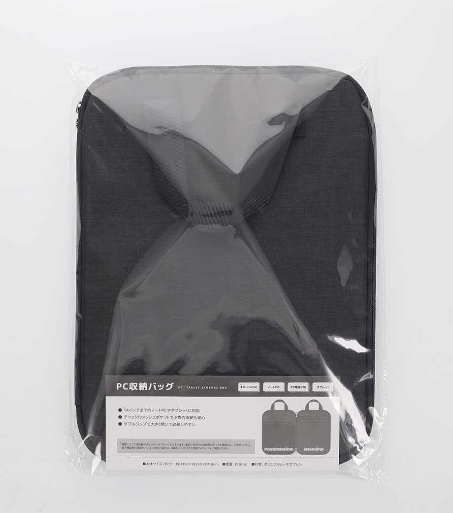 オリジナル印刷が映える、シンプルなPCバッグ。13.3インチまでのノートPCが入るサイズです。ハンドル付きで持ち歩き便利。外側にはA4資料が入るポケットが付いています。