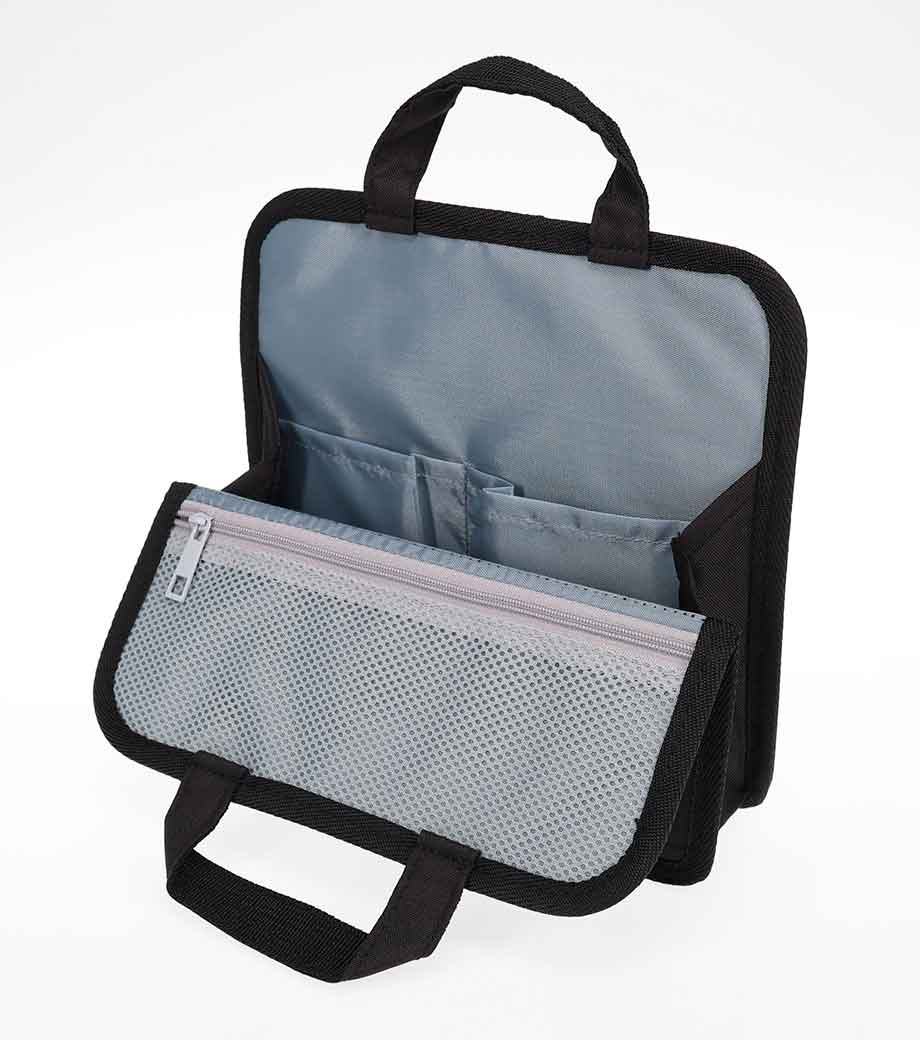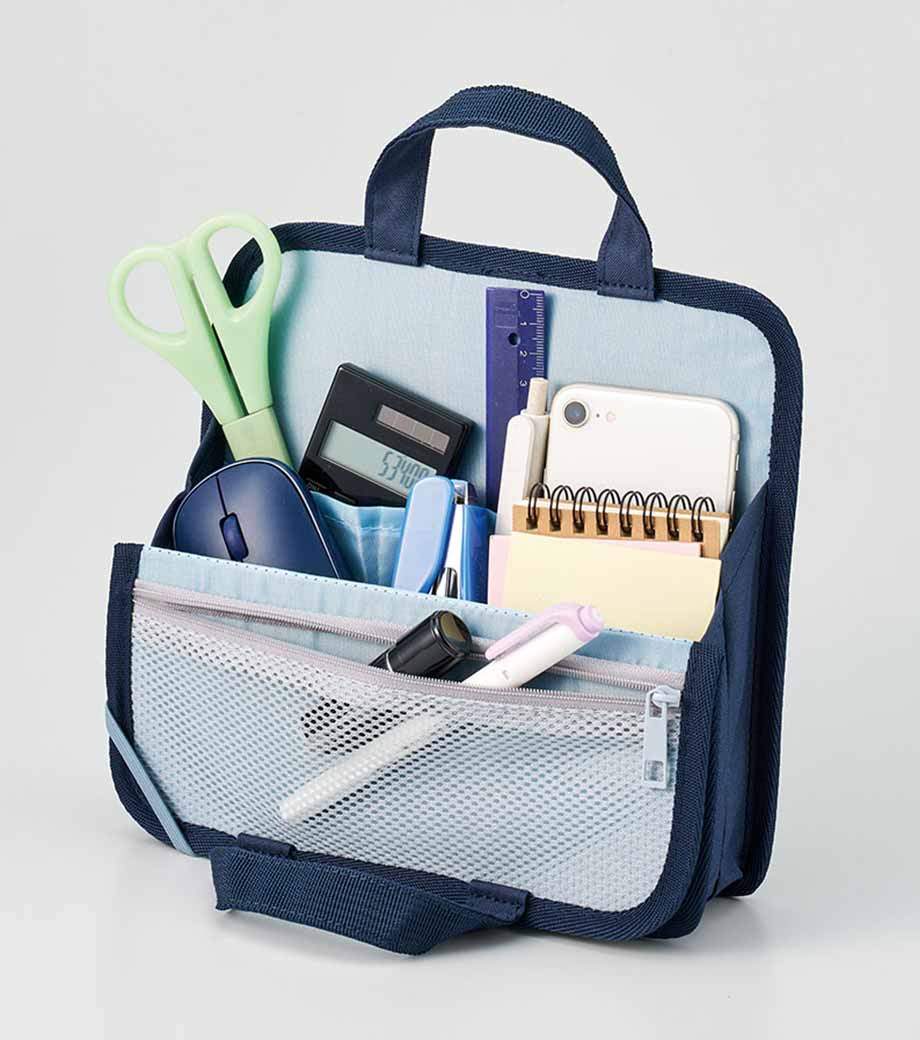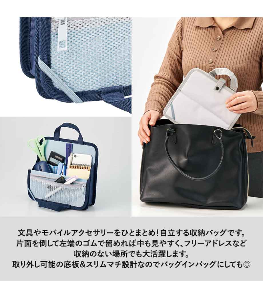 「モバイルアクセサリーケース(L)」は、ノートPCやスマートフォンなどに必要なモバイルアクセサリーをまとめて収納。かさばるコードやイヤホン、充電器などをスマート&便利に持ち運べます。大きめ目のLタイプは、アダプターなどもきちんと収まるサイズ。出張や旅行にも重宝するモバイルケースです。グレー・ブラック・ネイビーの3色から選べます。