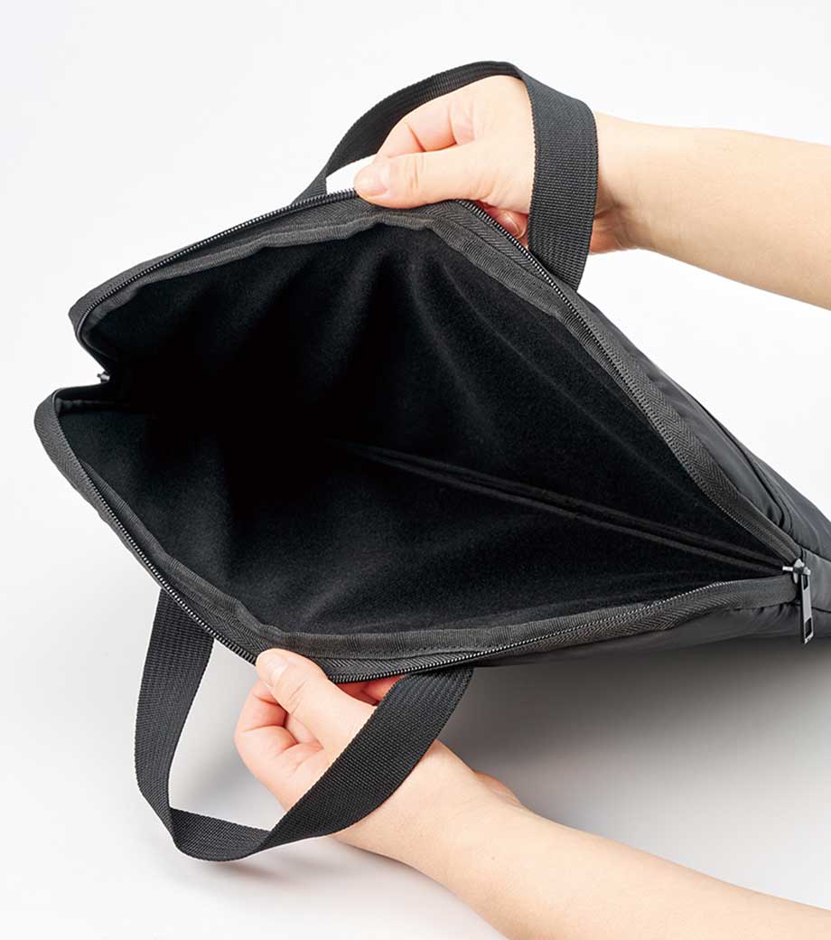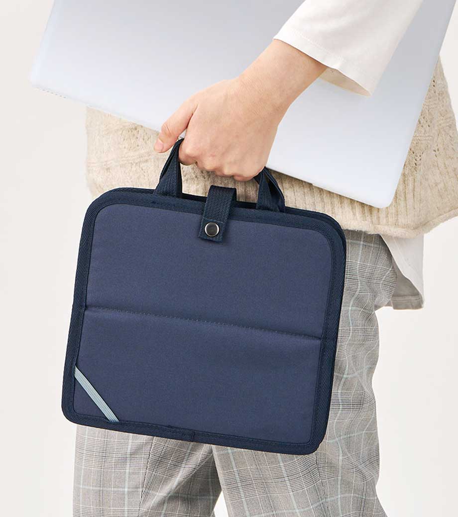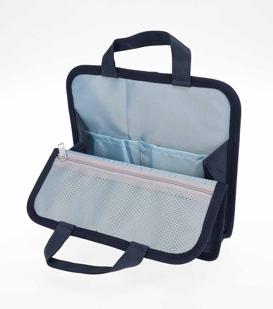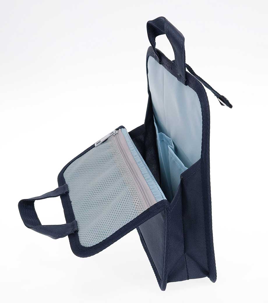 「モバイルアクセサリーケース(L)」は、ノートPCやスマートフォンなどに必要なモバイルアクセサリーをまとめて収納。かさばるコードやイヤホン、充電器などをスマート&便利に持ち運べます。大きめ目のLタイプは、アダプターなどもきちんと収まるサイズ。出張や旅行にも重宝するモバイルケースです。グレー・ブラック・ネイビーの3色から選べます。