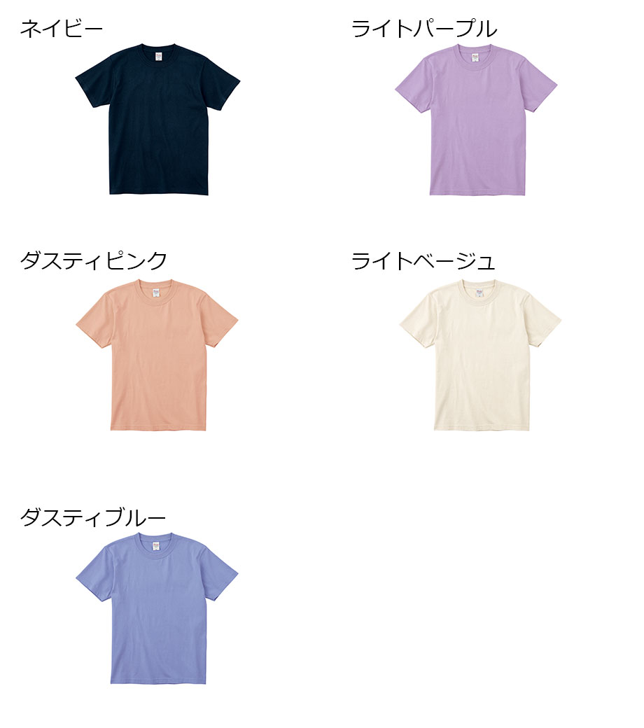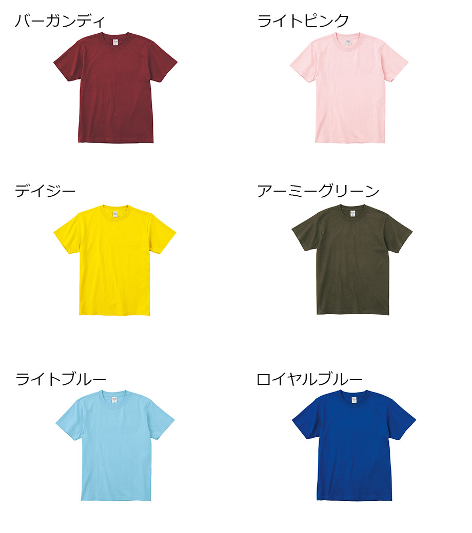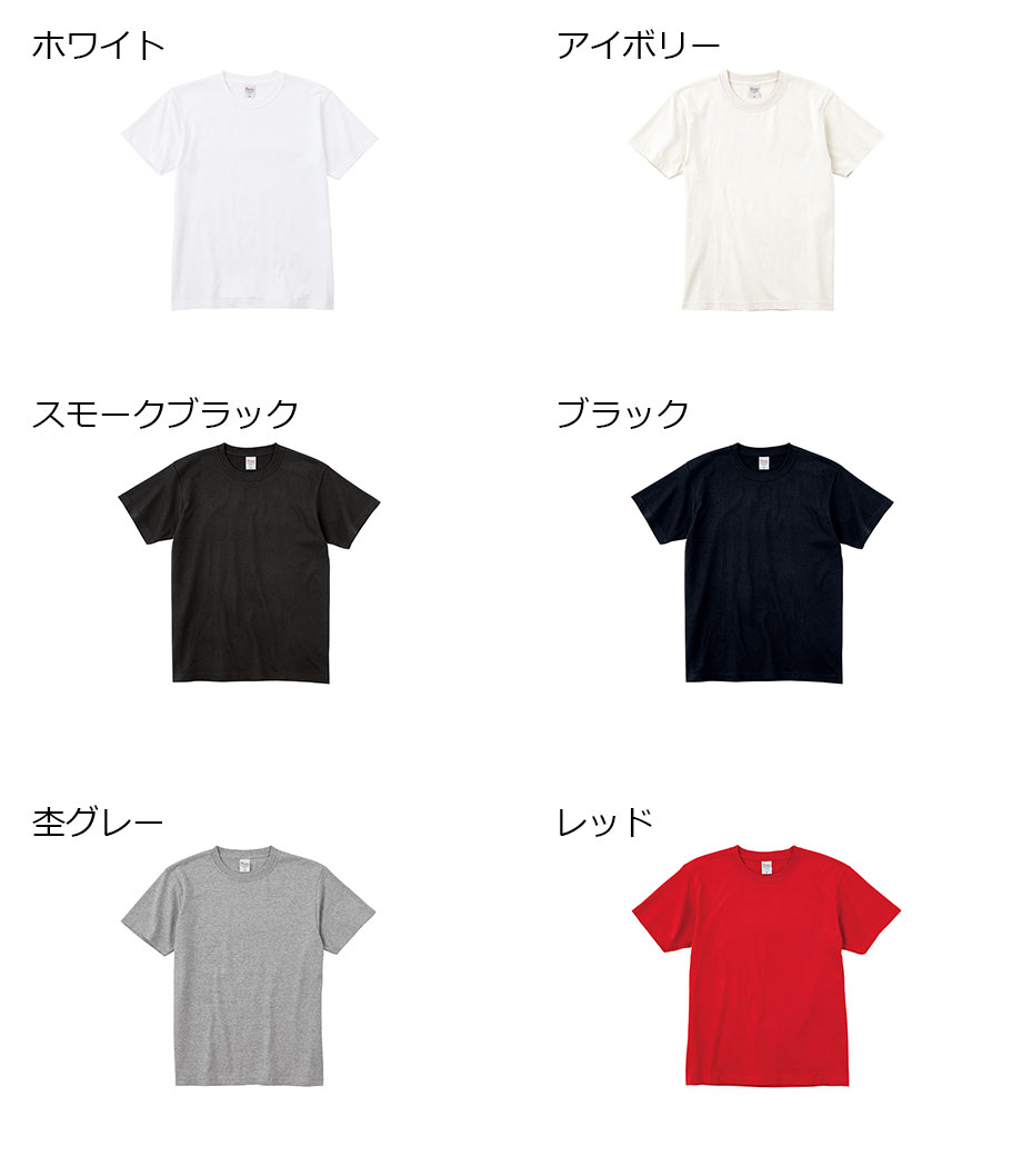 幅広い年齢層にフィットするシンプルなデザインで、どんなファッションにも取り入れやすい1枚です。豊富なカラーから本体色をお選びいただけます。お好きなデザインを1色からフルカラーまでプリントでき、定番のオリジナルTシャツ作成にぴったりです。アーティストのライブグッズやブランドのオリジナルグッズなどにいかがでしょうか。