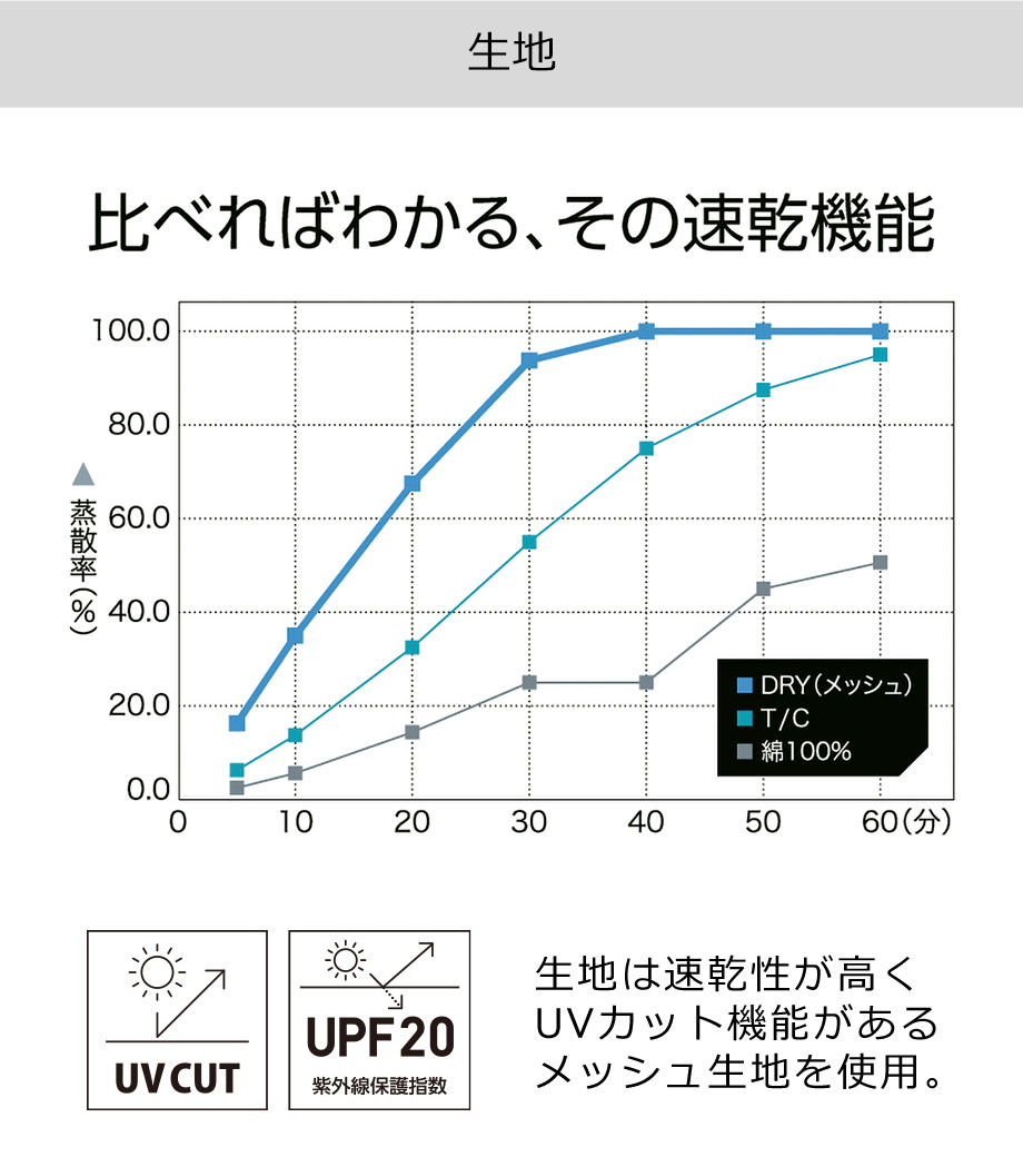 ペンやメモを入れられる胸ポケット付きなので実用性も抜群。サラッとした薄手のメッシュ生地は吸汗性・速乾性・UVカット機能を備え、長時間着用しても快適です。イベント名をプリントしたスタッフ用ユニフォーム、シニアクラブのオリジナルグッズなど、年代性別問わず着られるお揃いアイテムをお探しの方におすすめ。