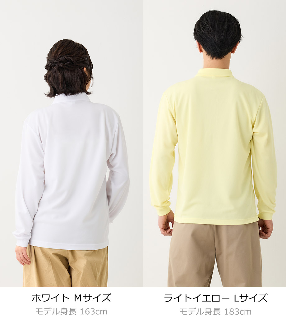 ビジネスシーンからレジャーシーンまで、様々なTPOに対応できる長袖ポロシャツです。1色・2色・フルカラーでオリジナルデザインをプリントして、オリジナルポロシャツが作成できます。