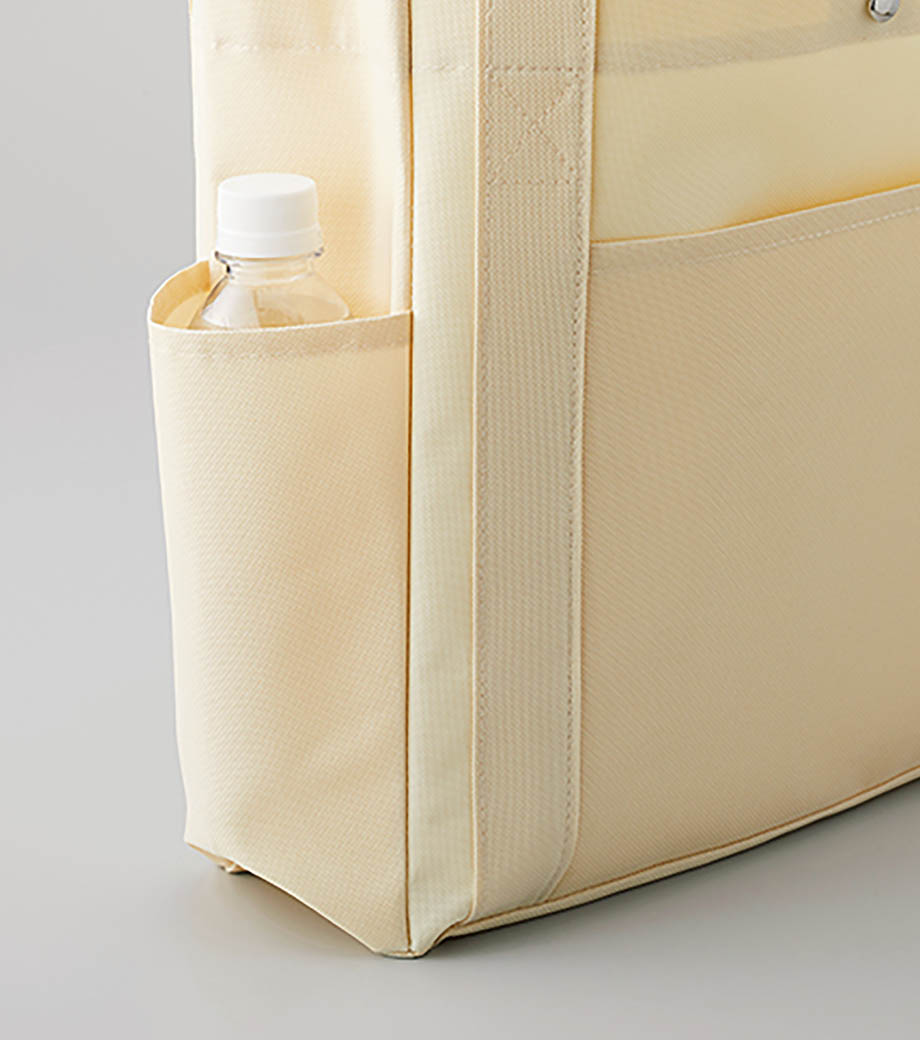 【MOTTERU】クルリト クーラーバッグは、リサイクルPETを使用して作られたMOTTERU(R)シリーズの保冷バッグ。マチが広めなので、2Lのペットボトルが横向きに2本入ります。間口はファスナー仕様で保冷効果もバッチリ。外ポケットも1つ付いているので、スマホや家の鍵などのこまごましたアイテムを入れておくのに便利です。