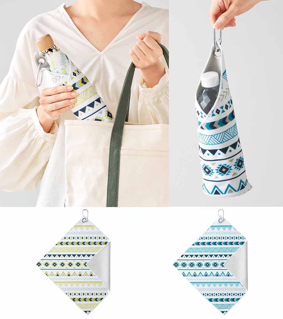 濡れた折りたたみ傘をそのまま入れられる便利な傘カバーです。内側はマイクロファイバー生地で、水滴をしっかり吸収。付属のストラップでカバンのやリュックに釣り下げることも。使わない時はコンパクトに折り畳めてかさばりません。傘だけでなく、ペットボトルカバーとしても使えます。
