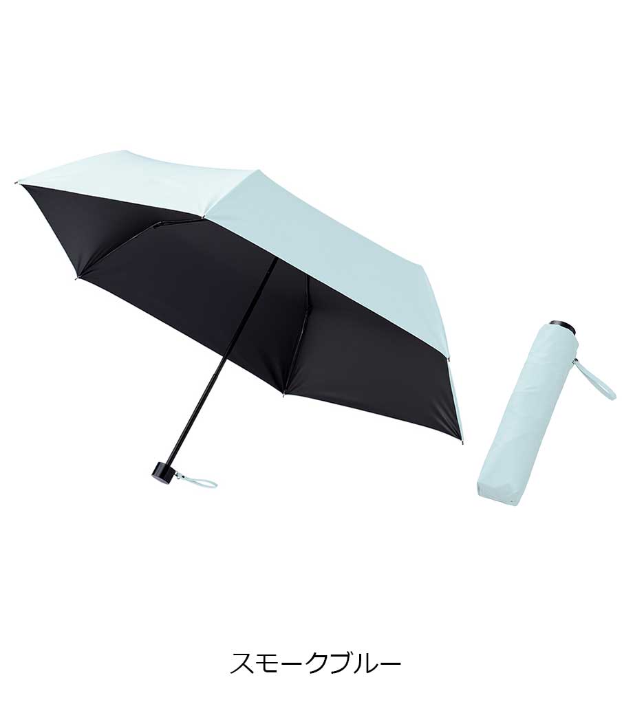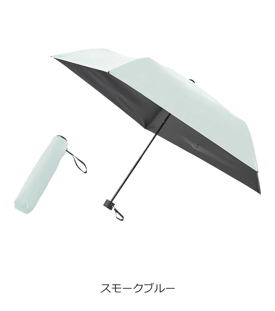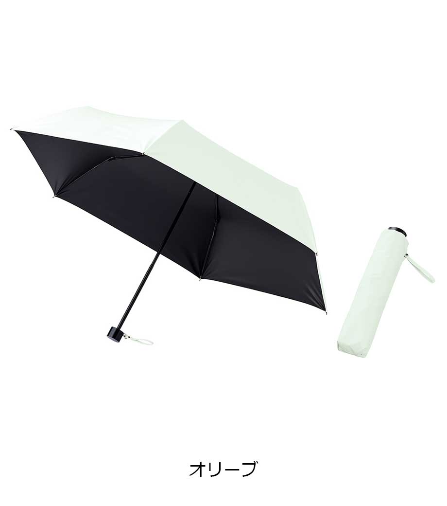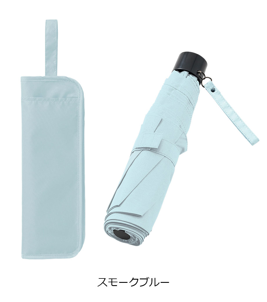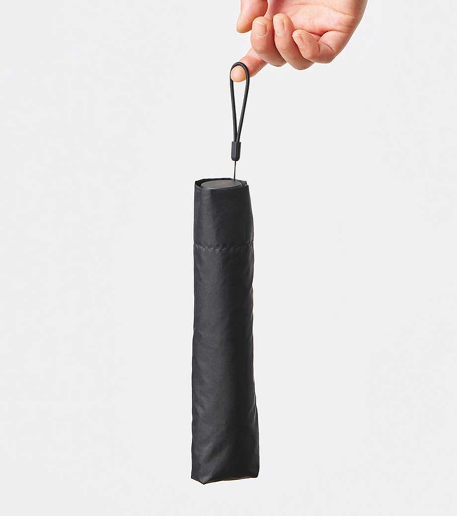 5段設計でスマホ程度のコンパクトサイズになる折りたたみ傘。晴雨兼用で一年中使用できます。遮光率100%、UVカット率90%以上・UPF評価50+を取得しており、日差しが強い季節も安心。持ち手とストラップの色を傘本体に合わせることで、スタイリッシュなデザインになっています。