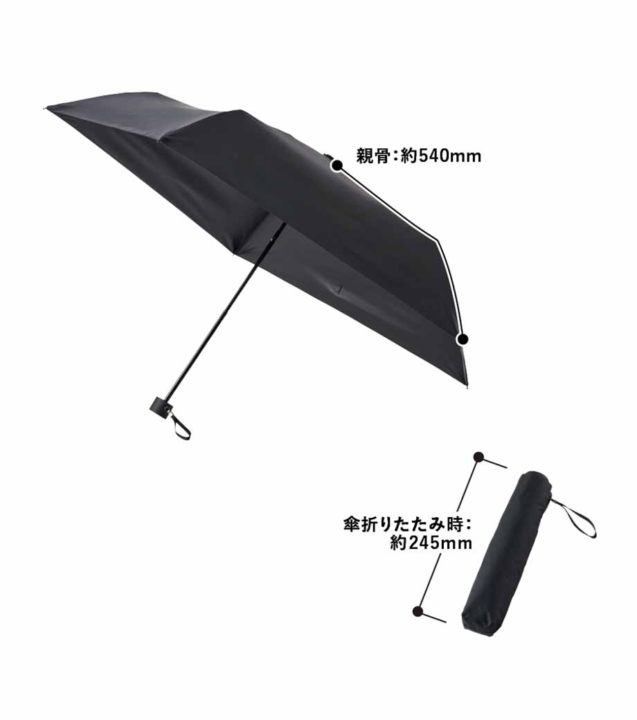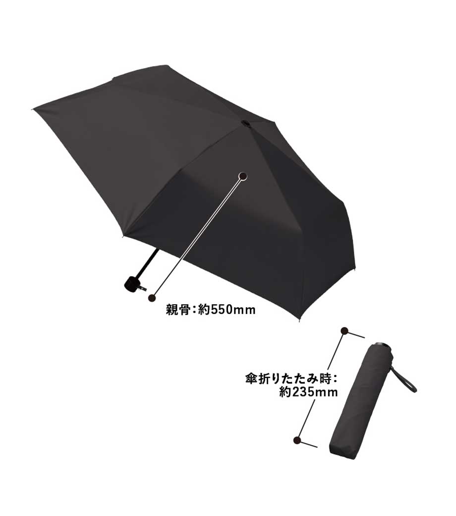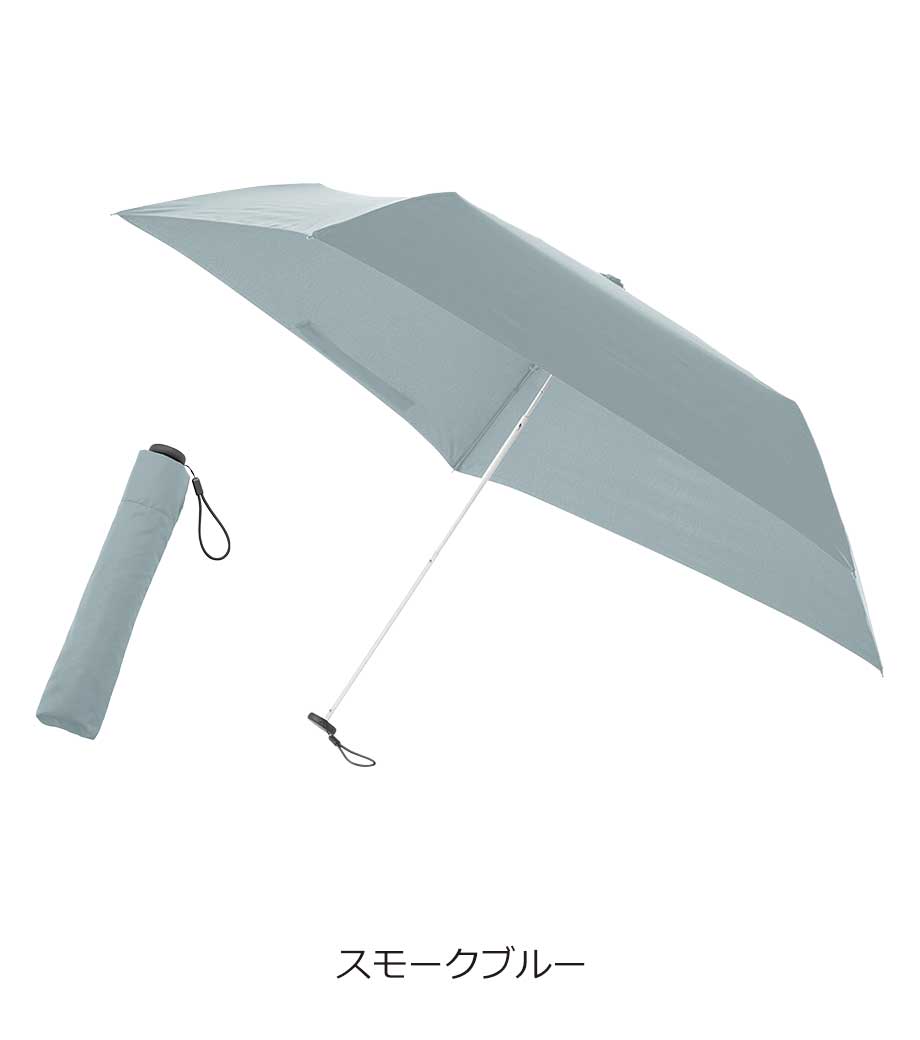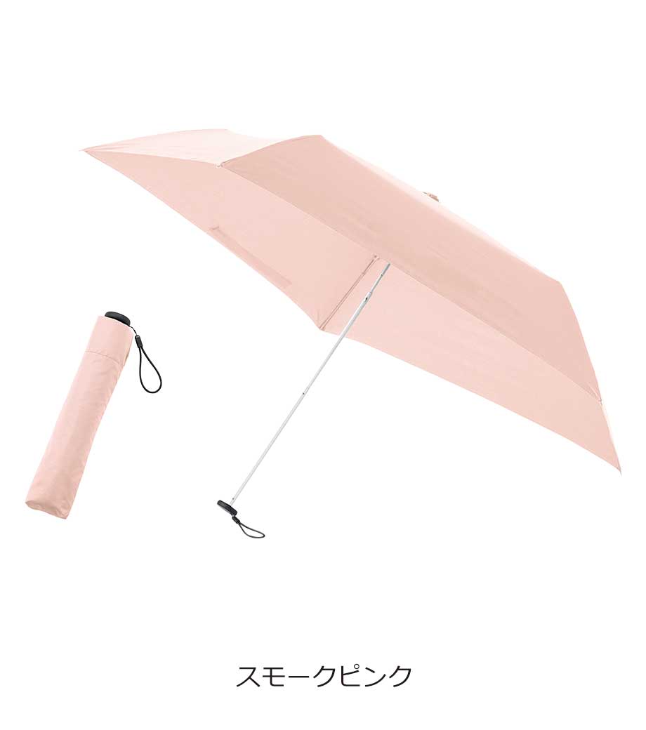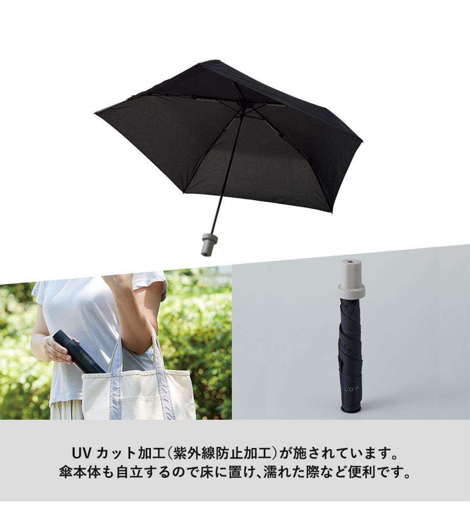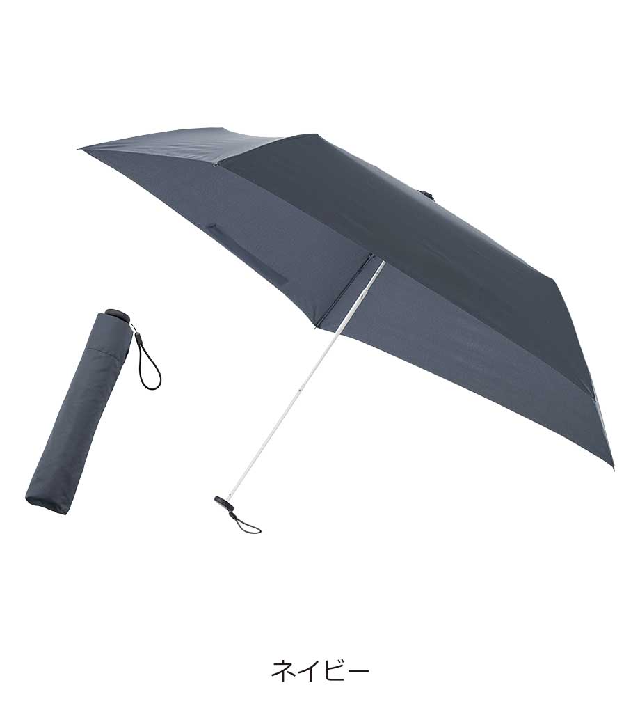 5段設計でスマホ程度のコンパクトサイズになる折りたたみ傘。晴雨兼用で一年中使用できます。遮光率100%、UVカット率90%以上・UPF評価50+を取得しており、日差しが強い季節も安心。持ち手とストラップの色を傘本体に合わせることで、スタイリッシュなデザインになっています。