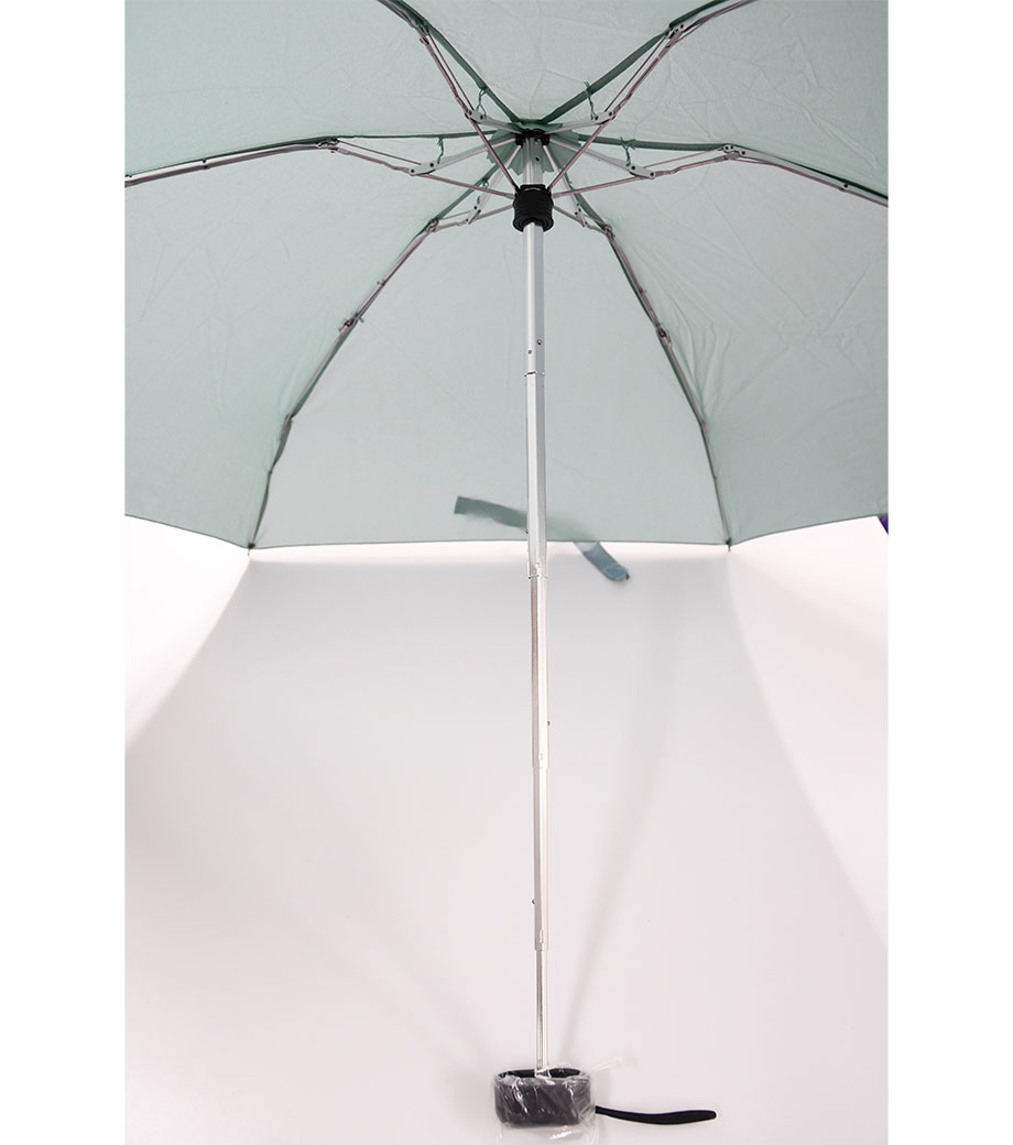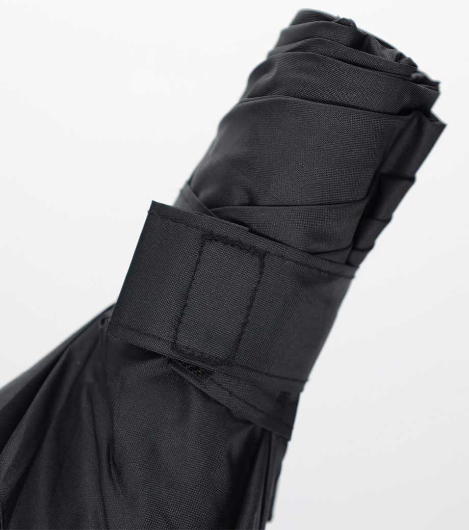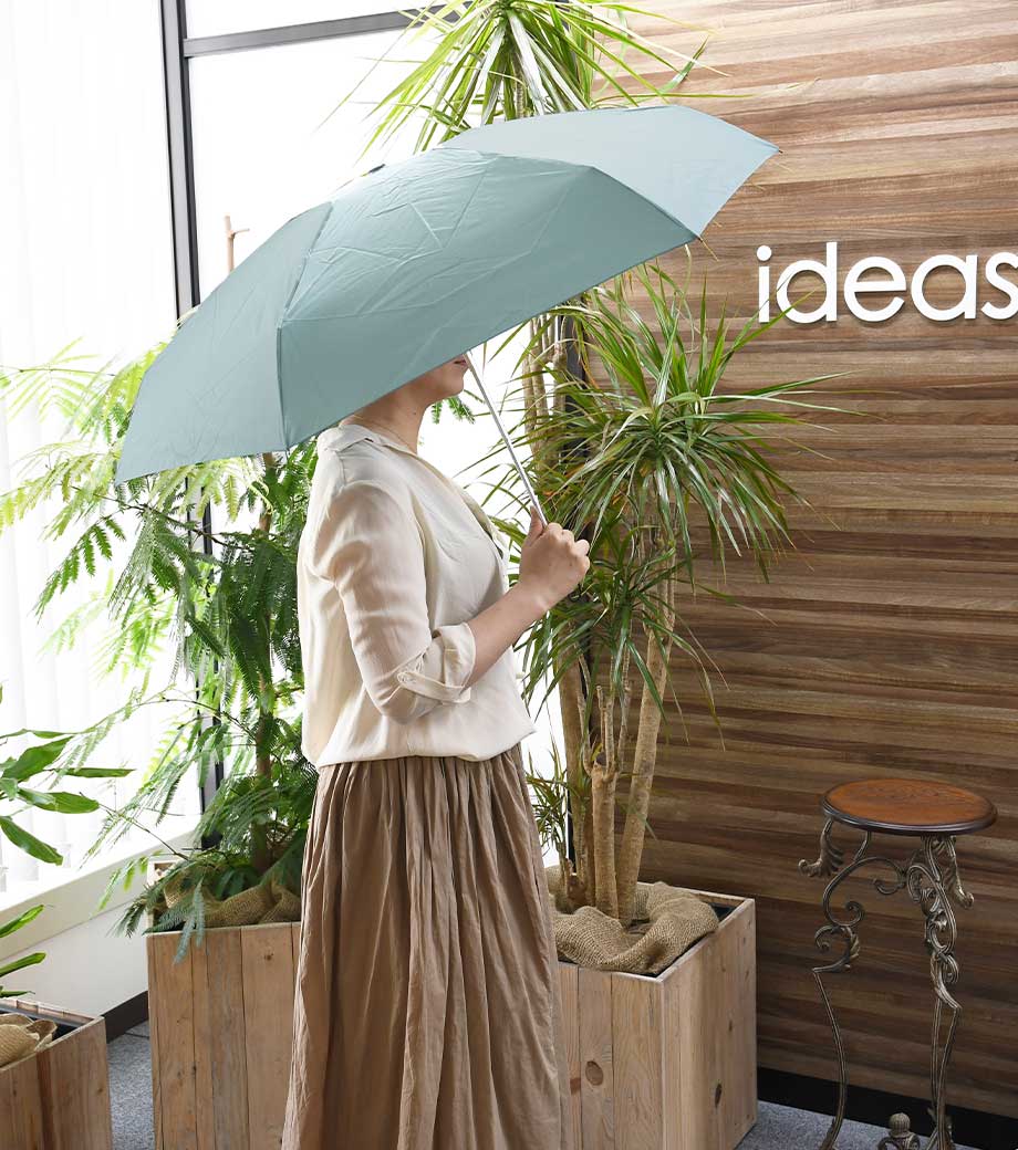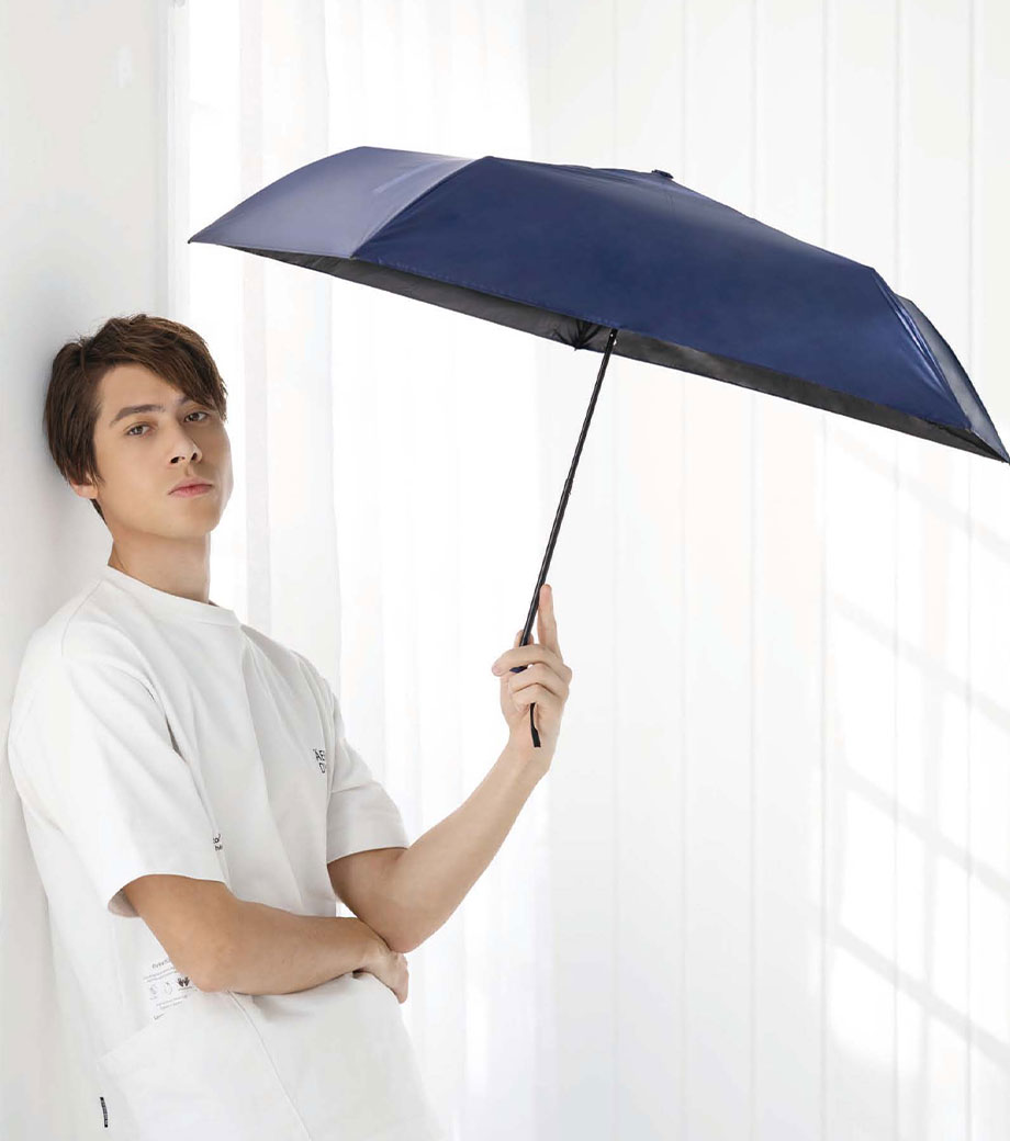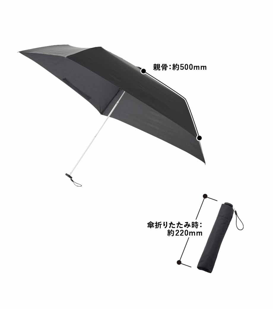 5段設計でスマホ程度のコンパクトサイズになる折りたたみ傘。晴雨兼用で一年中使用できます。遮光率100%、UVカット率90%以上・UPF評価50+を取得しており、日差しが強い季節も安心。持ち手とストラップの色を傘本体に合わせることで、スタイリッシュなデザインになっています。