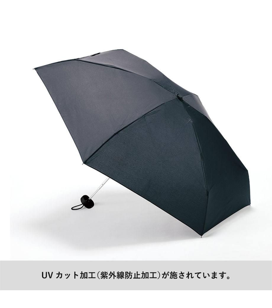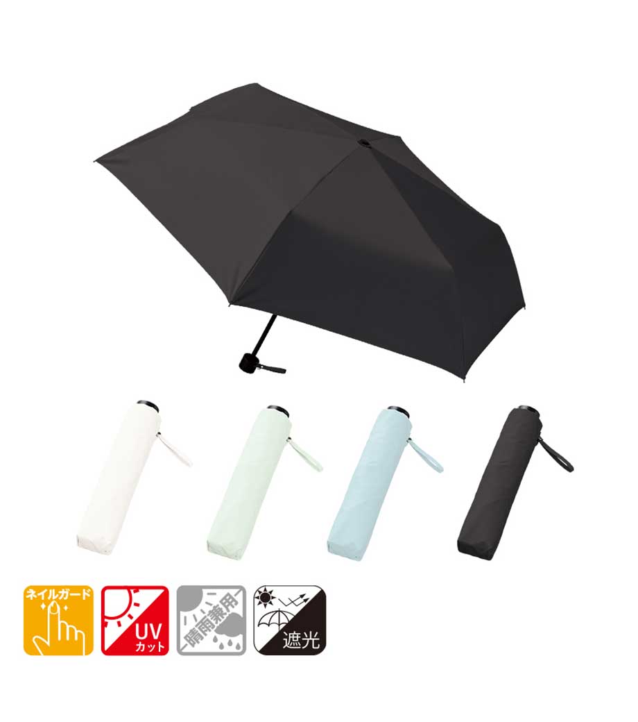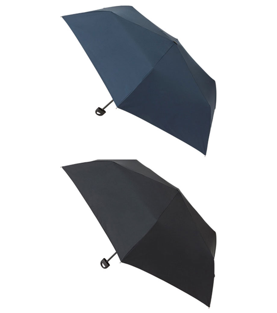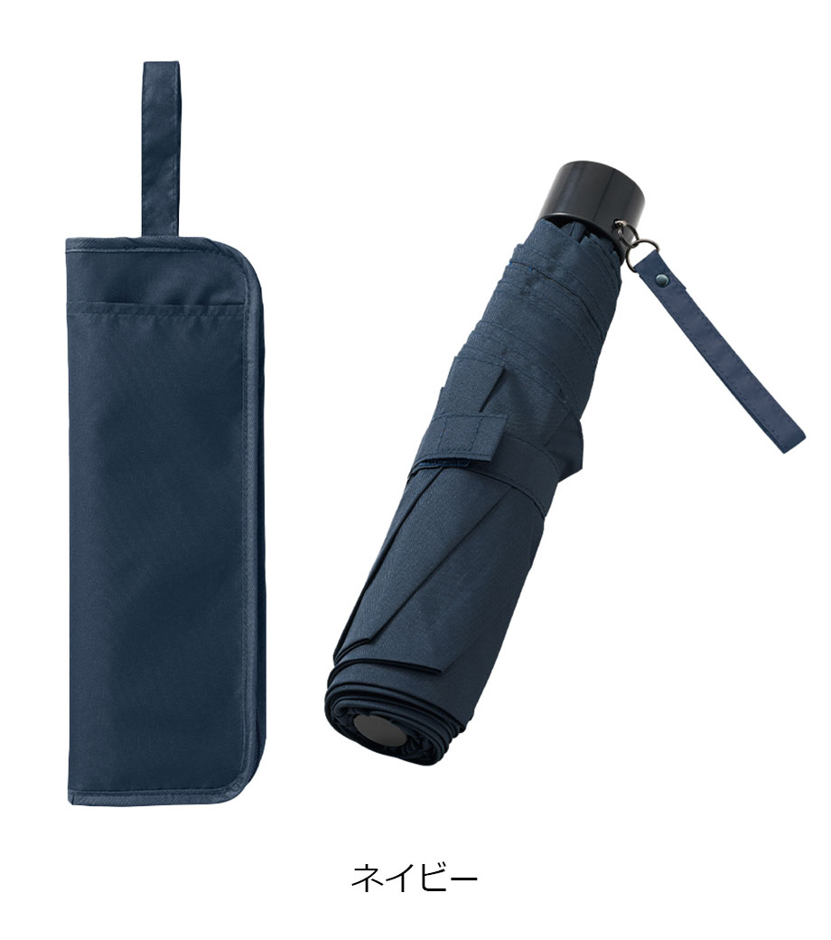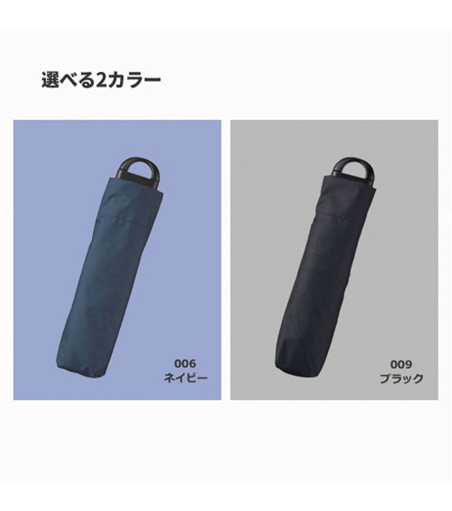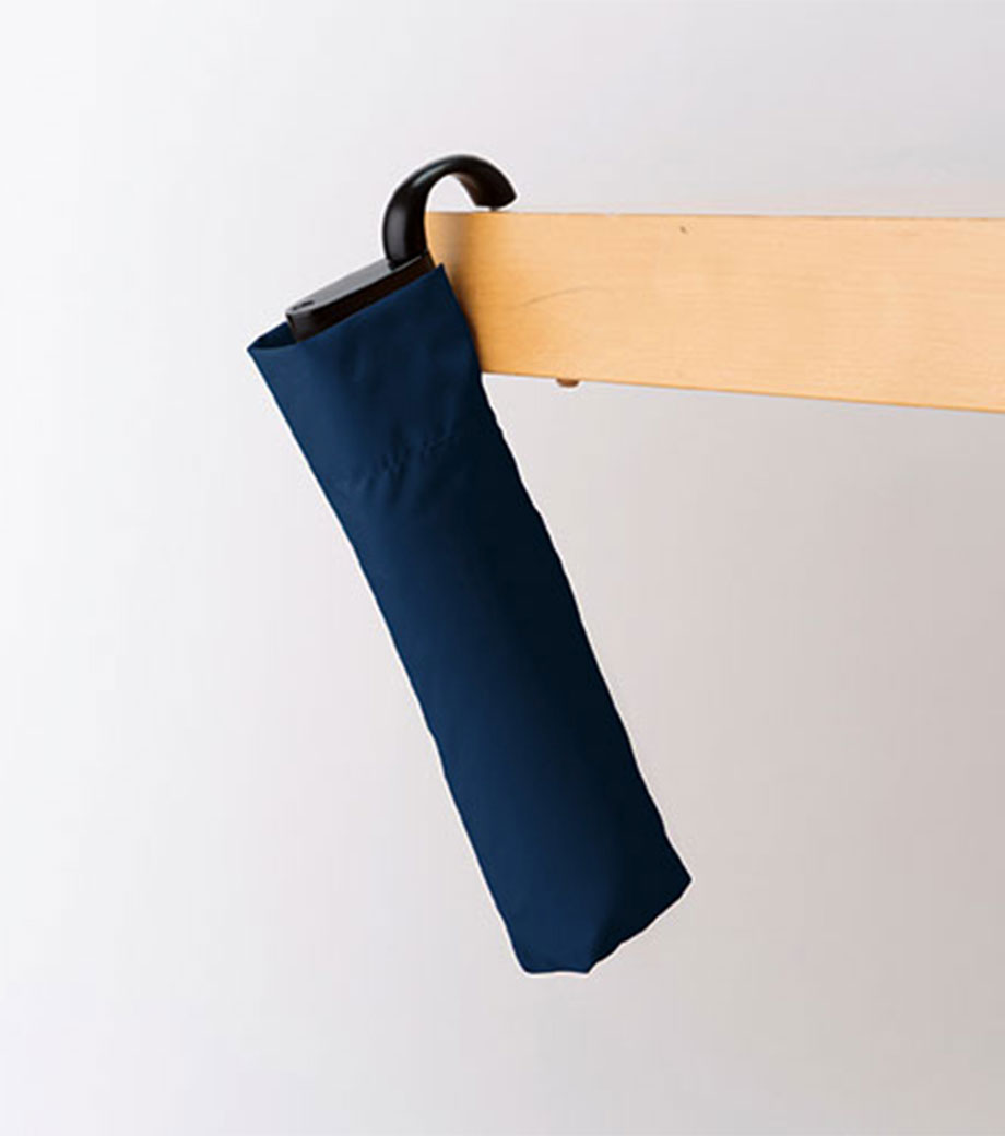 「スタンダードUV折りたたみ傘」は、あきのこないシンプルなデザイン。透明UVカット加工を施してあるので、晴雨兼用で使えます。傘を開閉する際に指が骨に当たって痛くならないよう、ネイルガードを付けた親切設計。本体色は、ネイビー・ブラック・カーキベージュの3色から選べます。