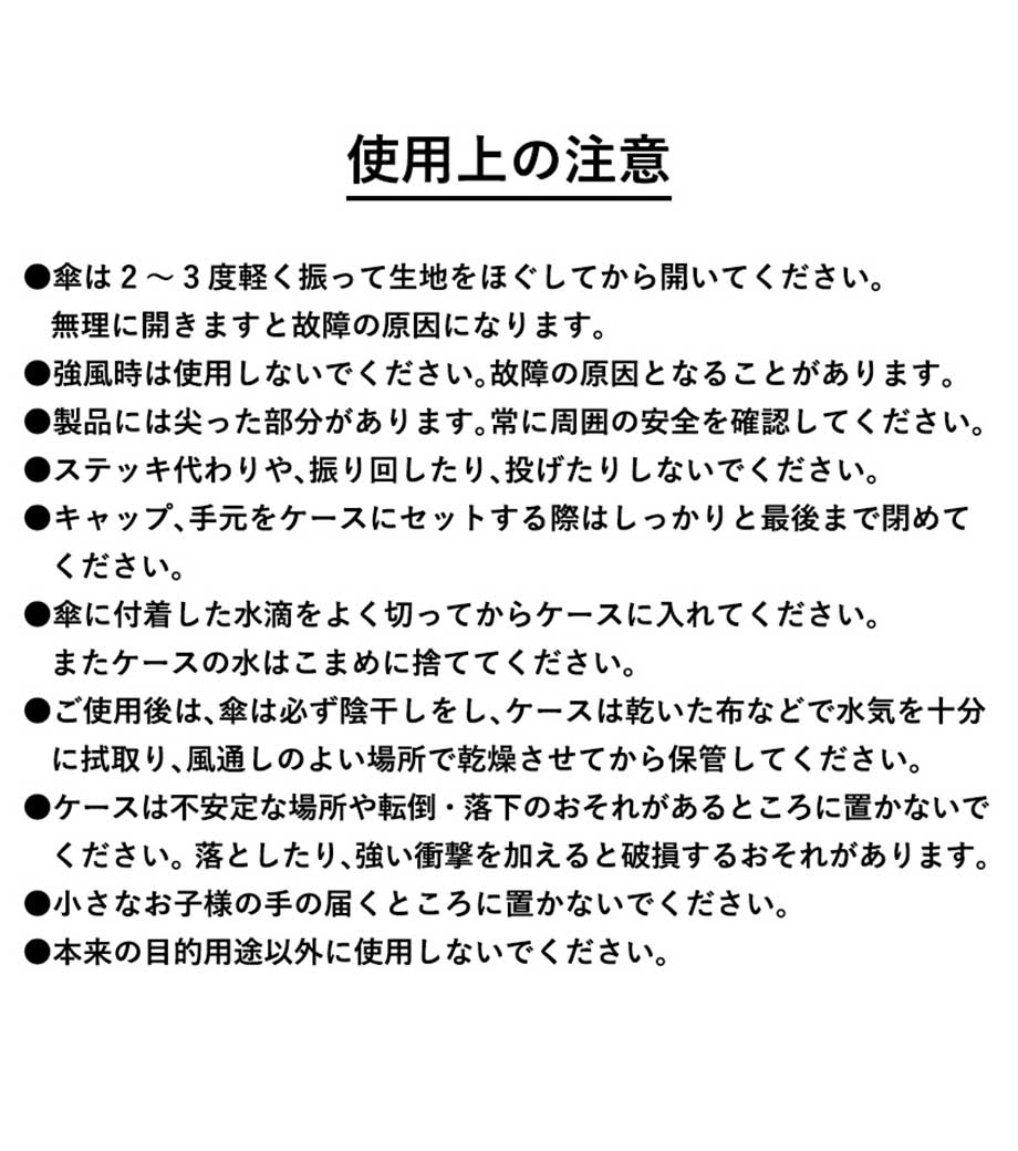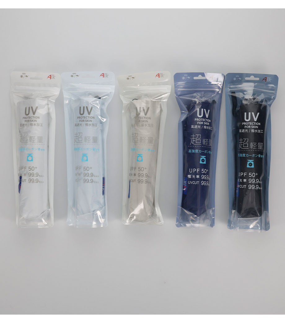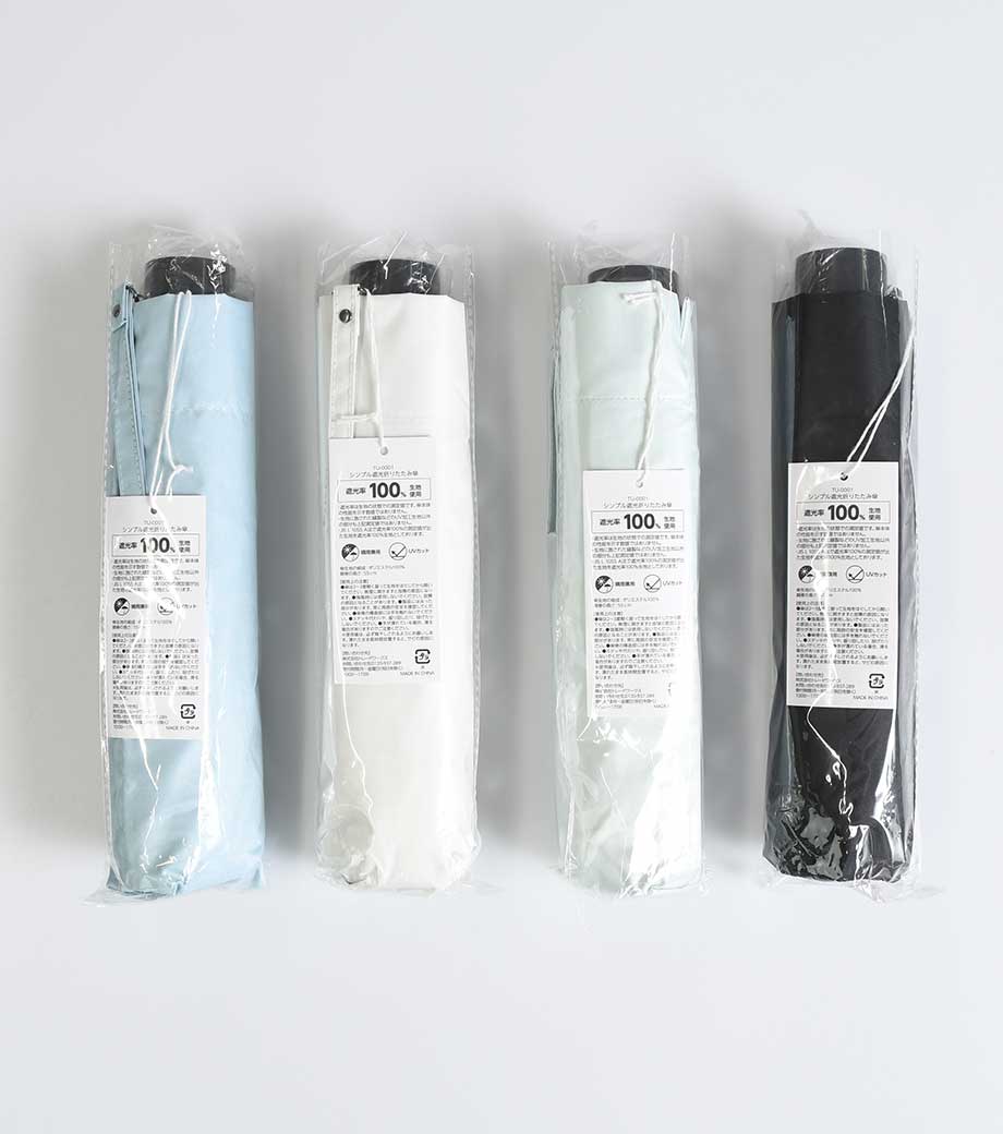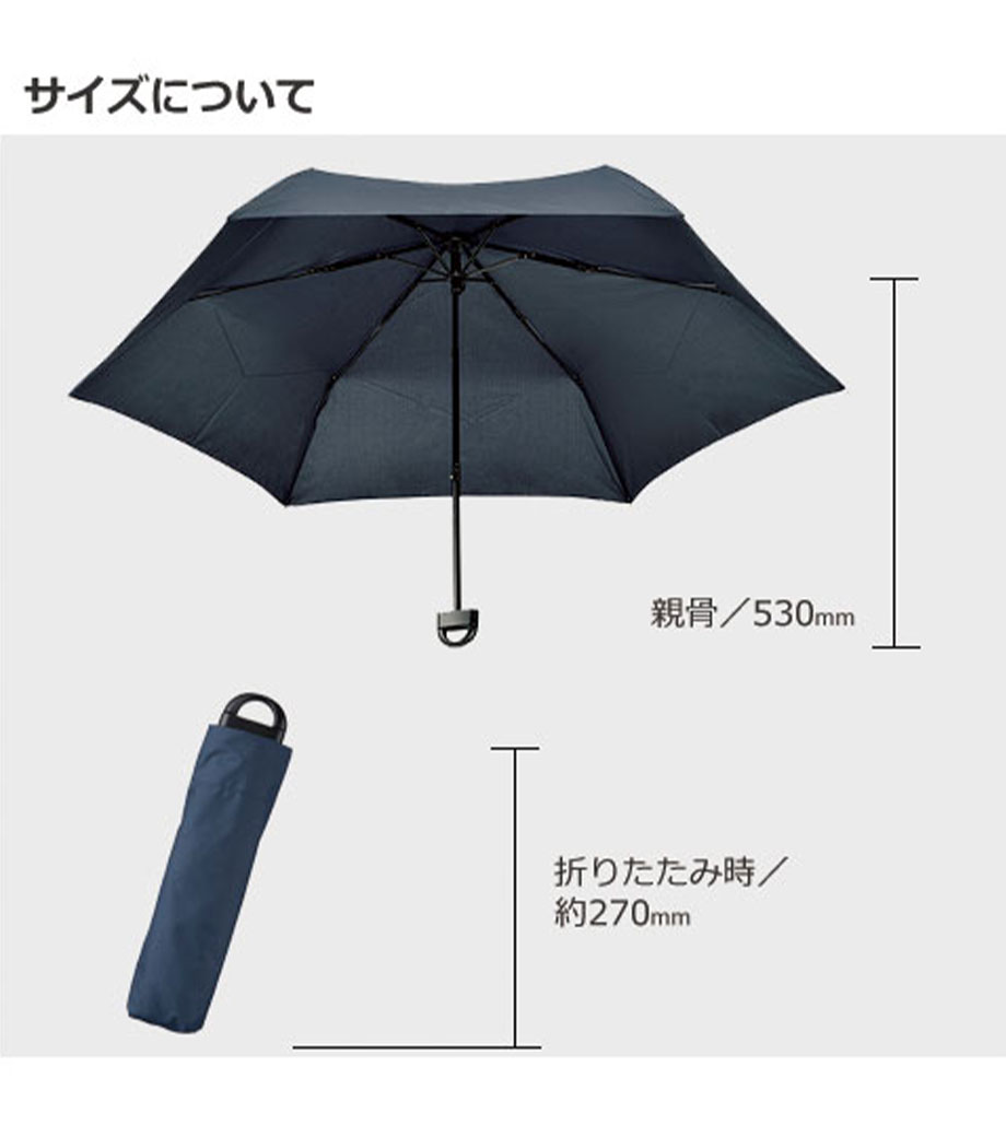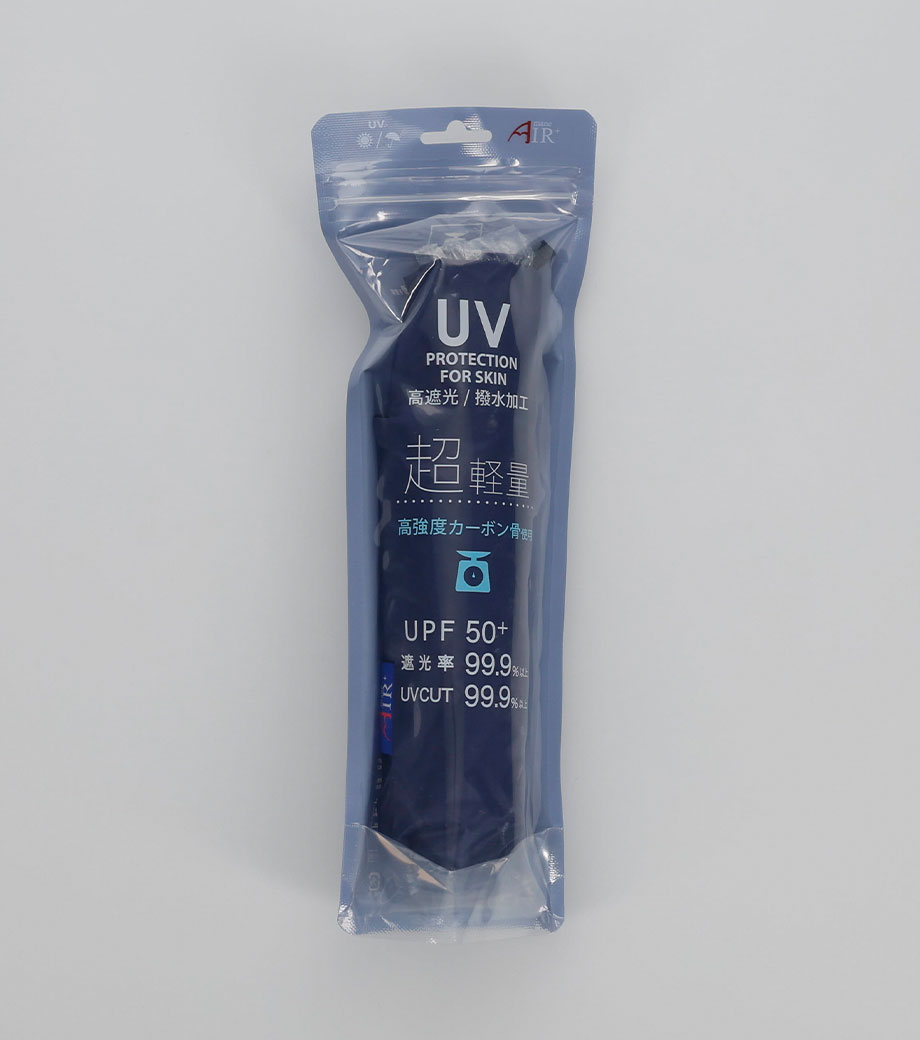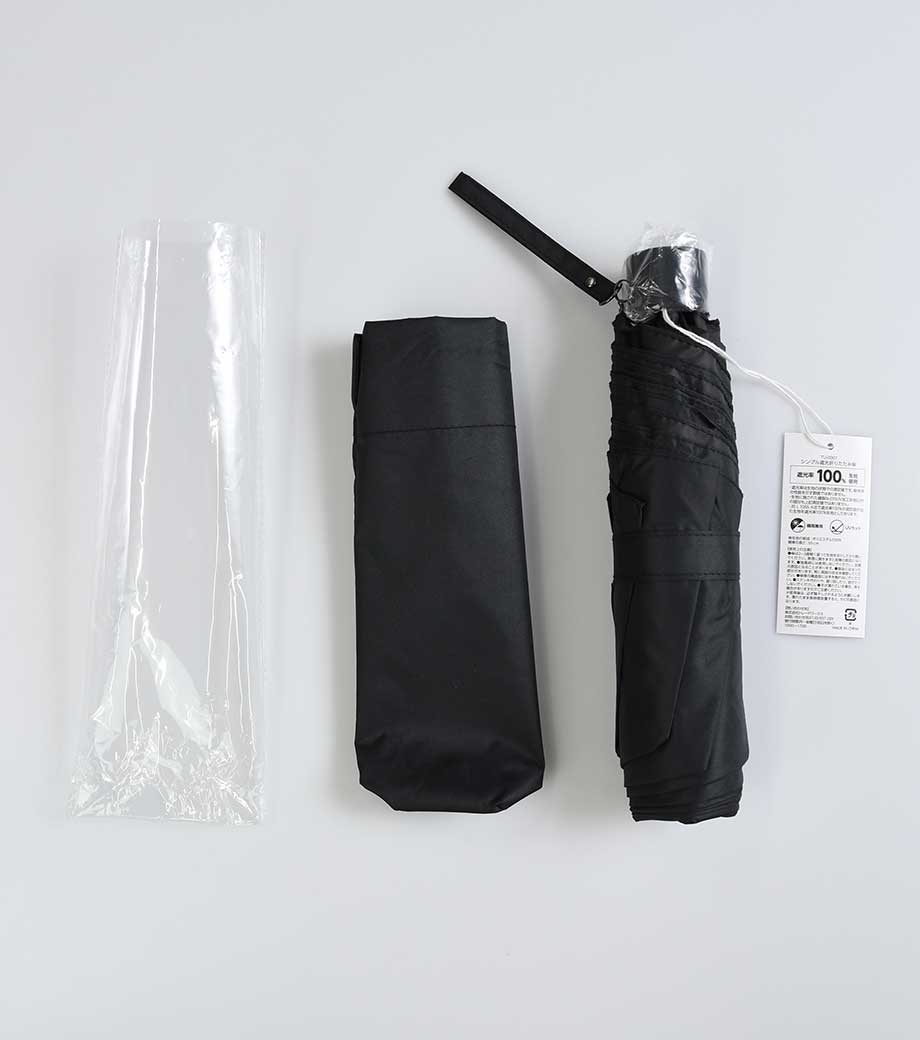 「スタンダードUV折りたたみ傘」は、あきのこないシンプルなデザイン。透明UVカット加工を施してあるので、晴雨兼用で使えます。傘を開閉する際に指が骨に当たって痛くならないよう、ネイルガードを付けた親切設計。本体色は、ネイビー・ブラック・カーキベージュの3色から選べます。