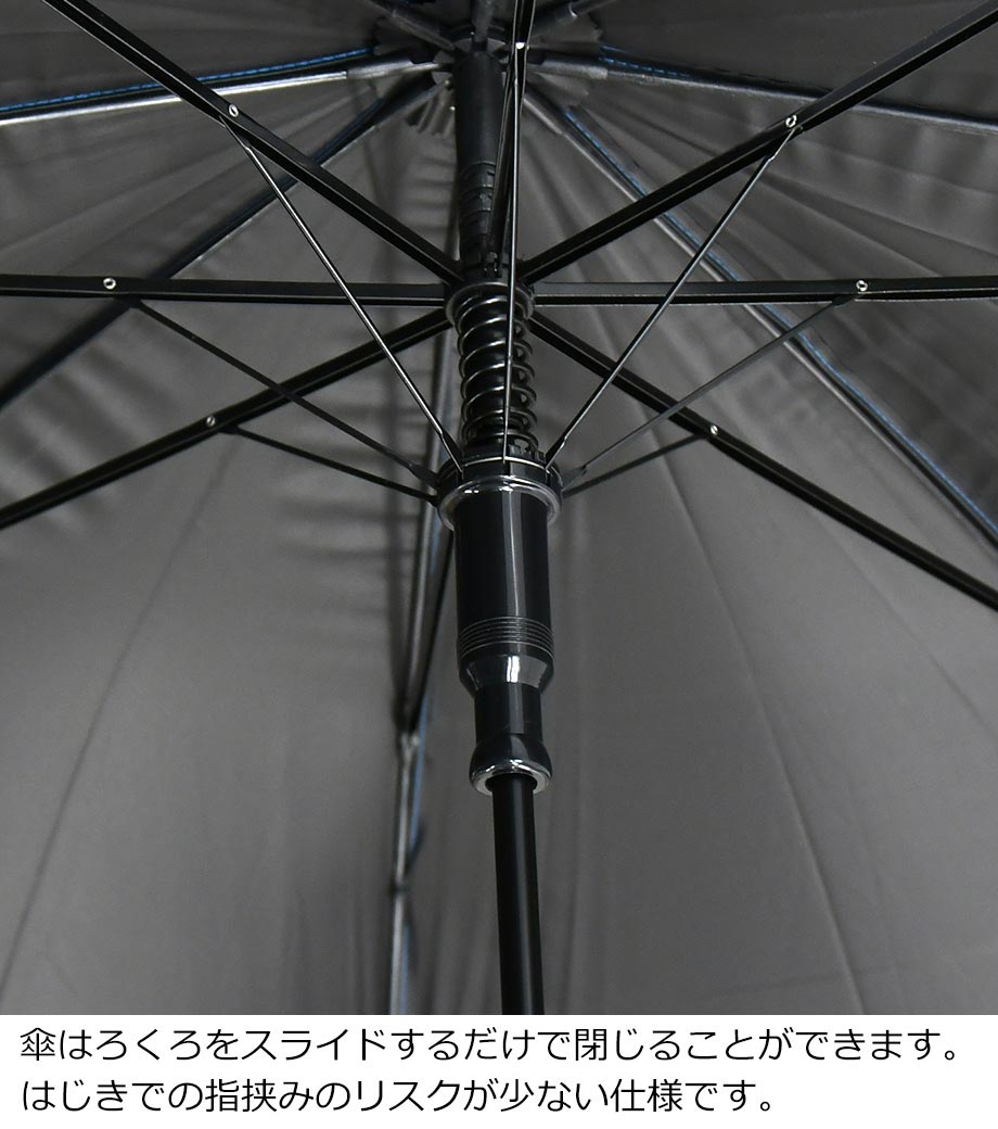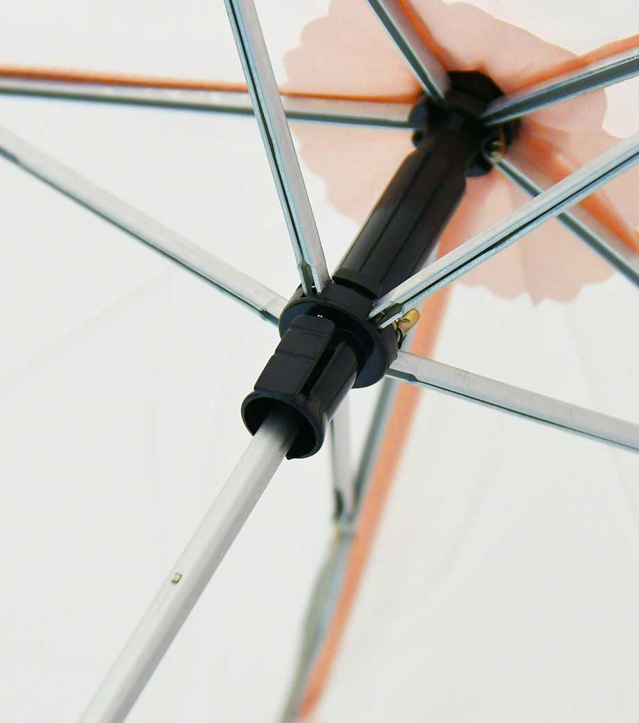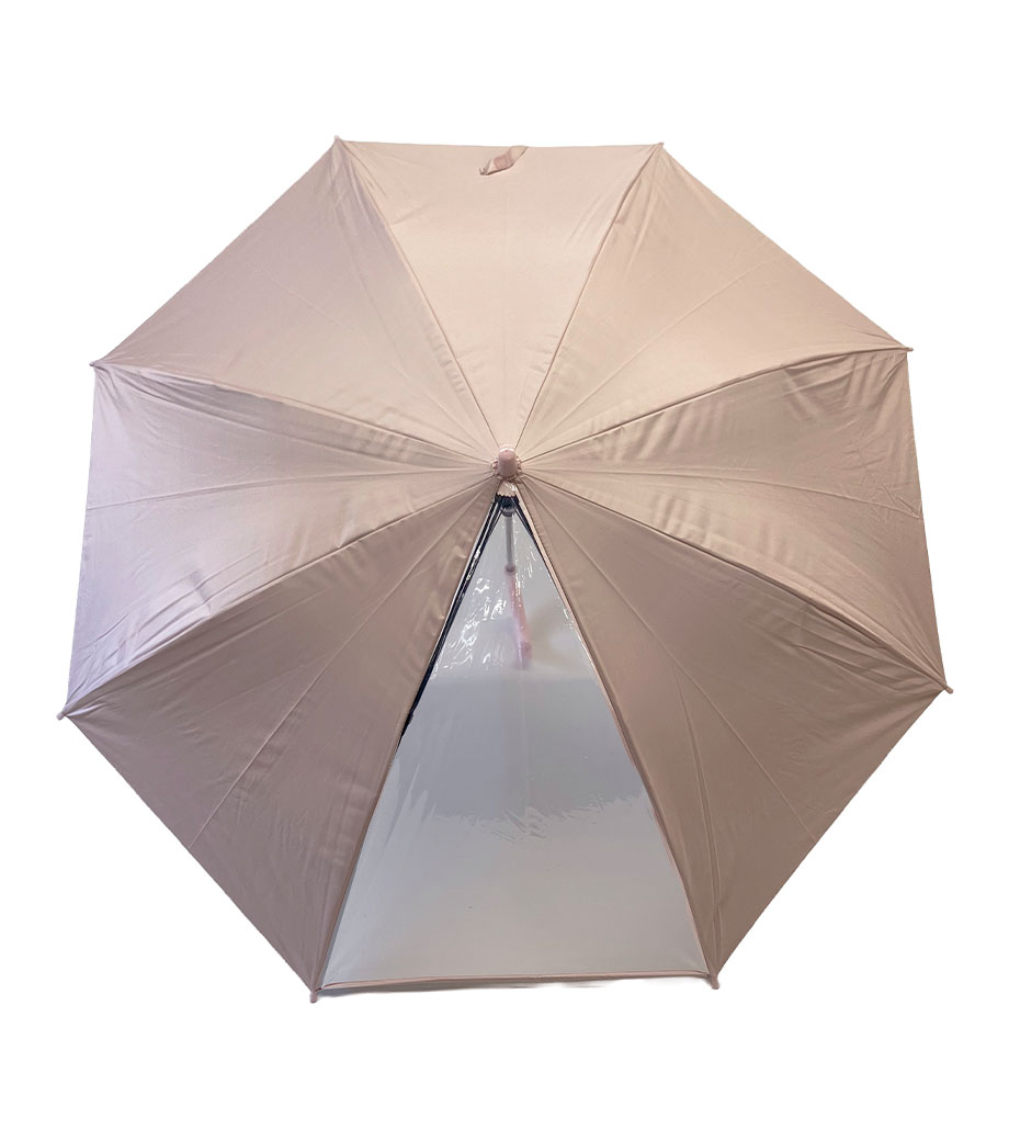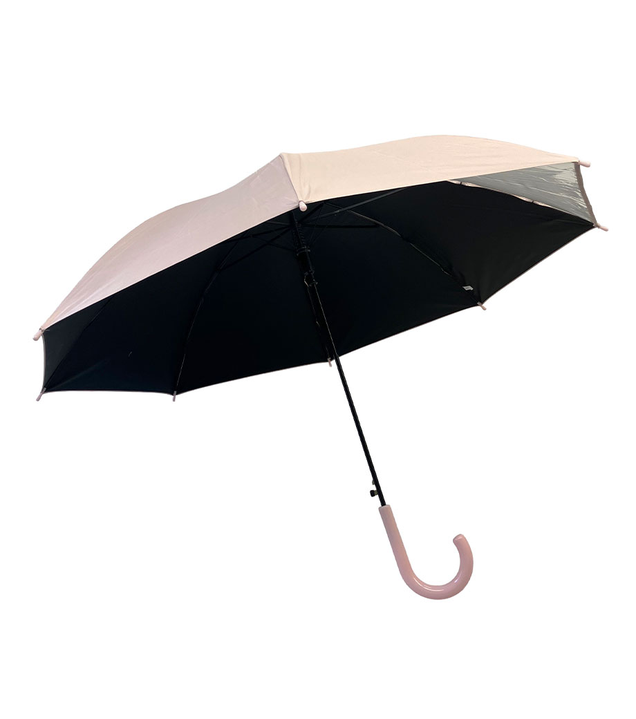 小学中学年くらいのお子さまが使いやすい親骨55cmサイズの晴雨兼用傘。傘裏生地はブラックコーティングの遮光・遮熱生地を採用しており、夏場の通学の熱中症対策にもなります。安心の視界を確保できる透明パネル付き。開く時はジャンプ式、閉じる時はスライド式でお子さまでも使いやすい仕様です。