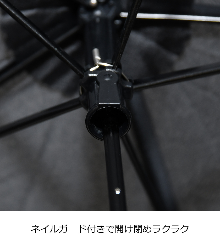 親骨60cm、弧長約120cmの大きめな折りたたみ傘。遮光率100%生地を使用した晴雨兼用タイプ。安心のネイルガード付きです。暑い日でも日傘を使用すれば体感温度は3から7℃下がるとされているので、今では男女問わず必須ツールですね。