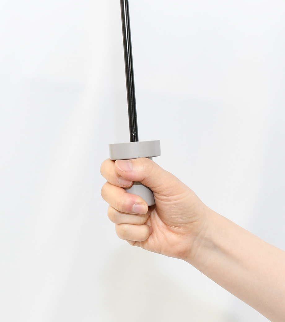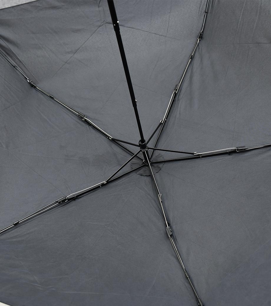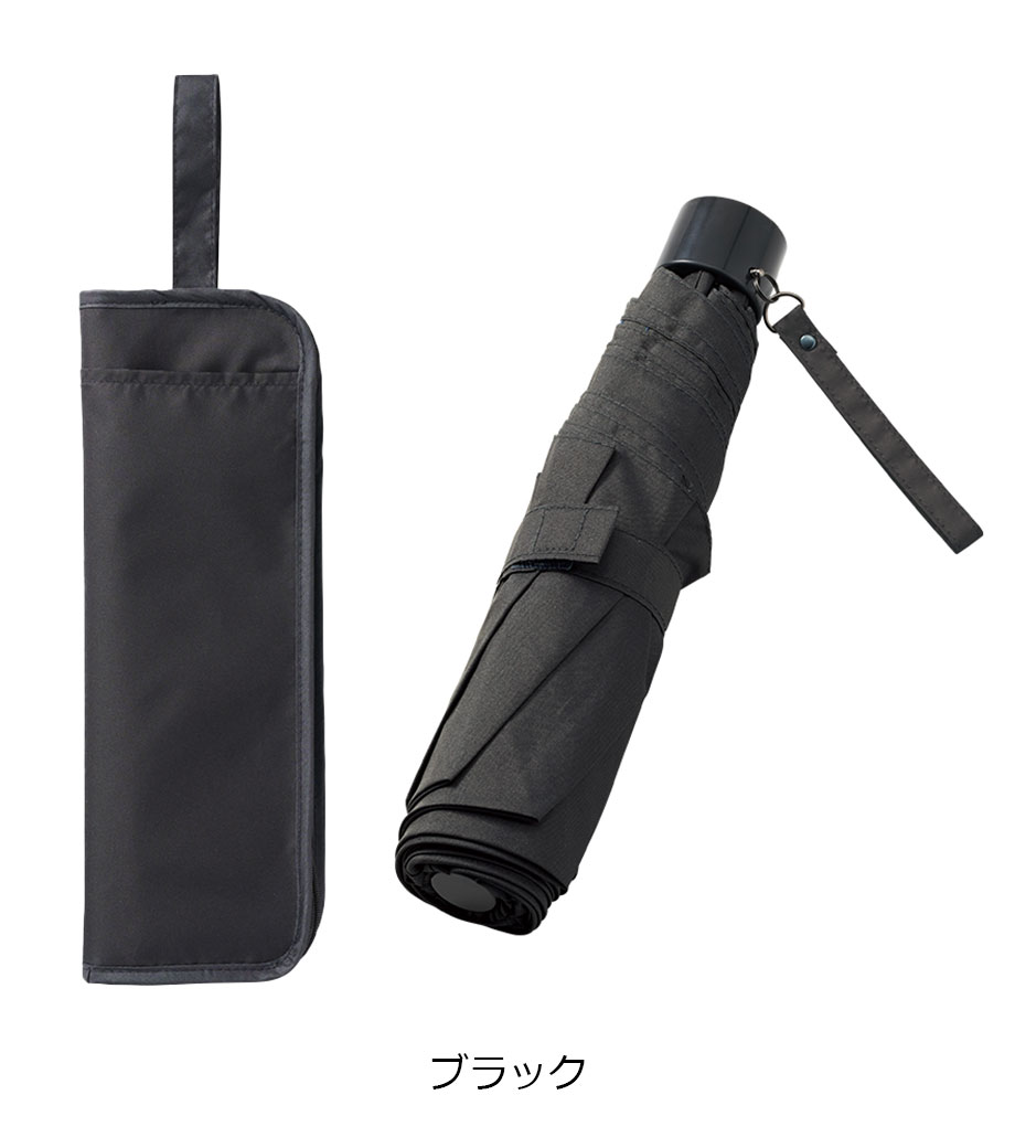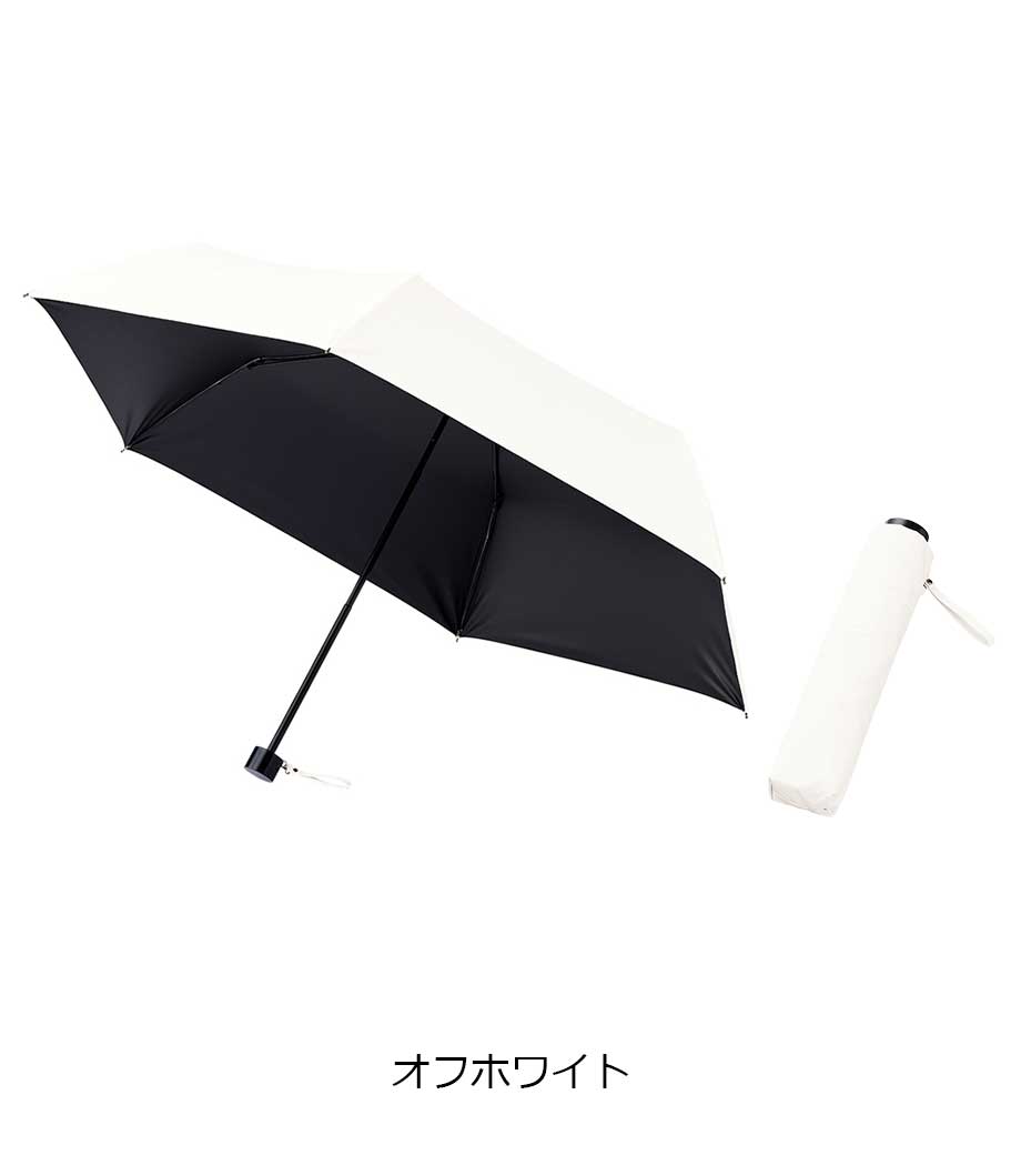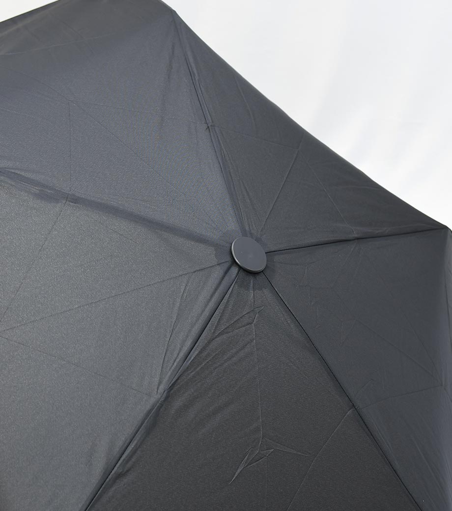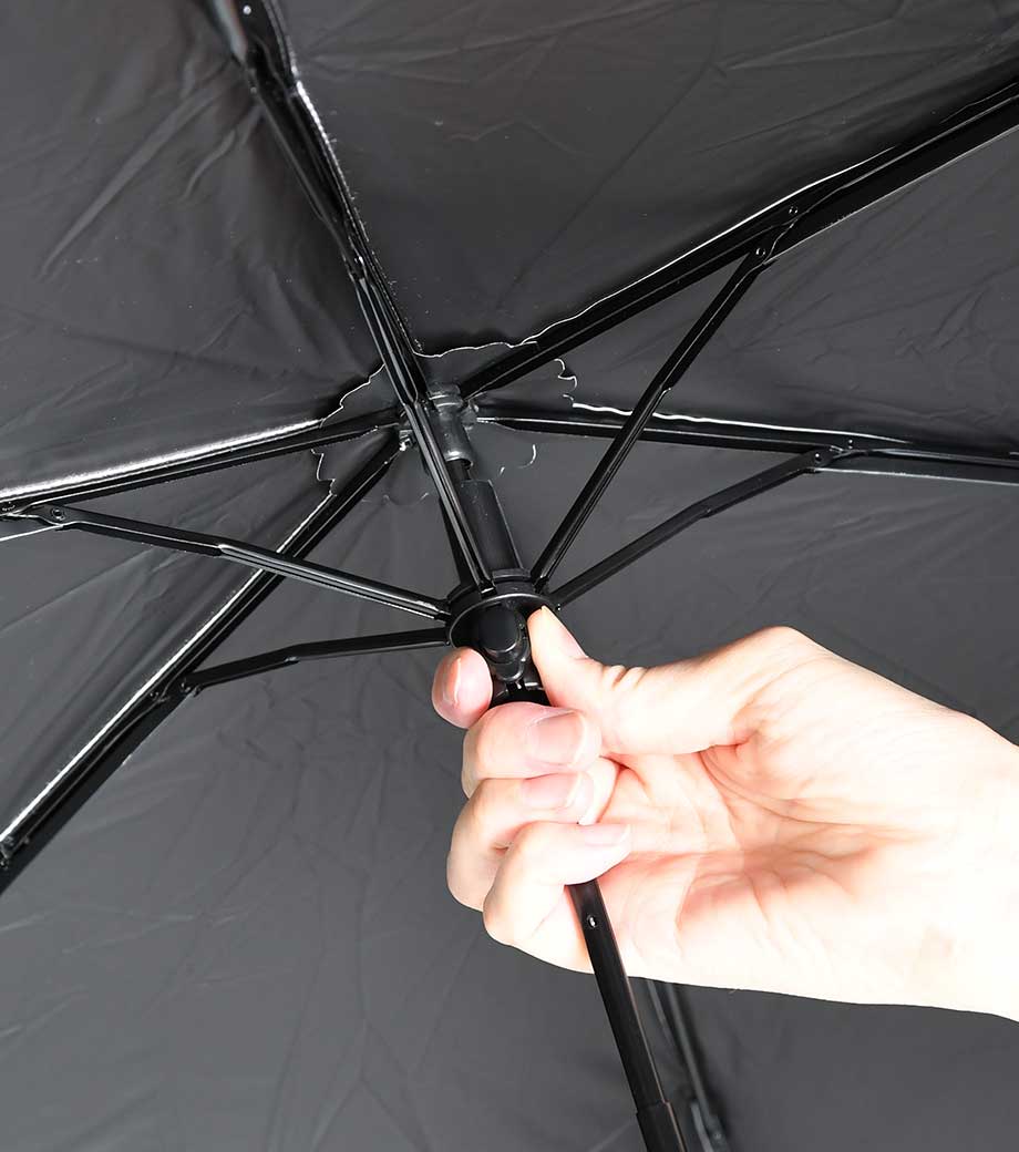傘のパネルはケースの色に関わらずブラックカラーで、90%以上のUVカット機能付きです。持ち手は楕円形で手にフィットしやすい構造になっています。