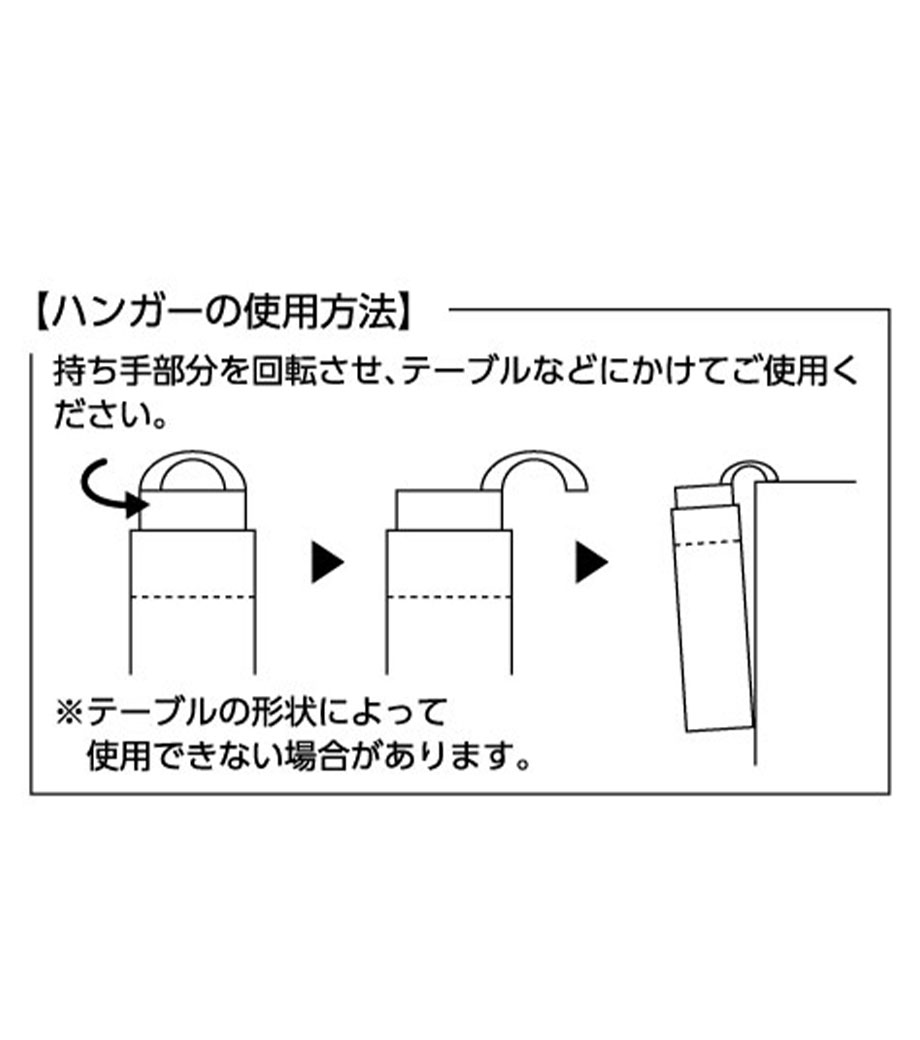 ハンガークリップUV折りたたみ傘はハンドル部分がハンガーになる折り畳み傘です。ハンドルを回転させると机などに掛けられ、出先で濡れた傘の置き場所に困らず便利です!UVカット加工が施されているので、日焼け対策にも。晴雨兼用で1年中使えるのが嬉しいですね。ネイルガード付きで開閉する際に指が骨にあたり痛くなるのを防ぎます。