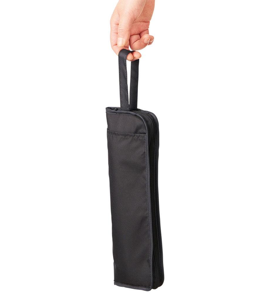【ITSUMO】スリムボトル折りたたみ傘 LIGHTはバッグの中に入れても安心の防水ハードケース収納式。本体はスリムで軽量、持ち運びやすさが魅力です。ケースと傘を合わせた重量は約178gとバナナ約1本分ほどの軽さ。傘の石突部分をフラットにすることによって、傘単体での自立が可能で置き場所に困りません。