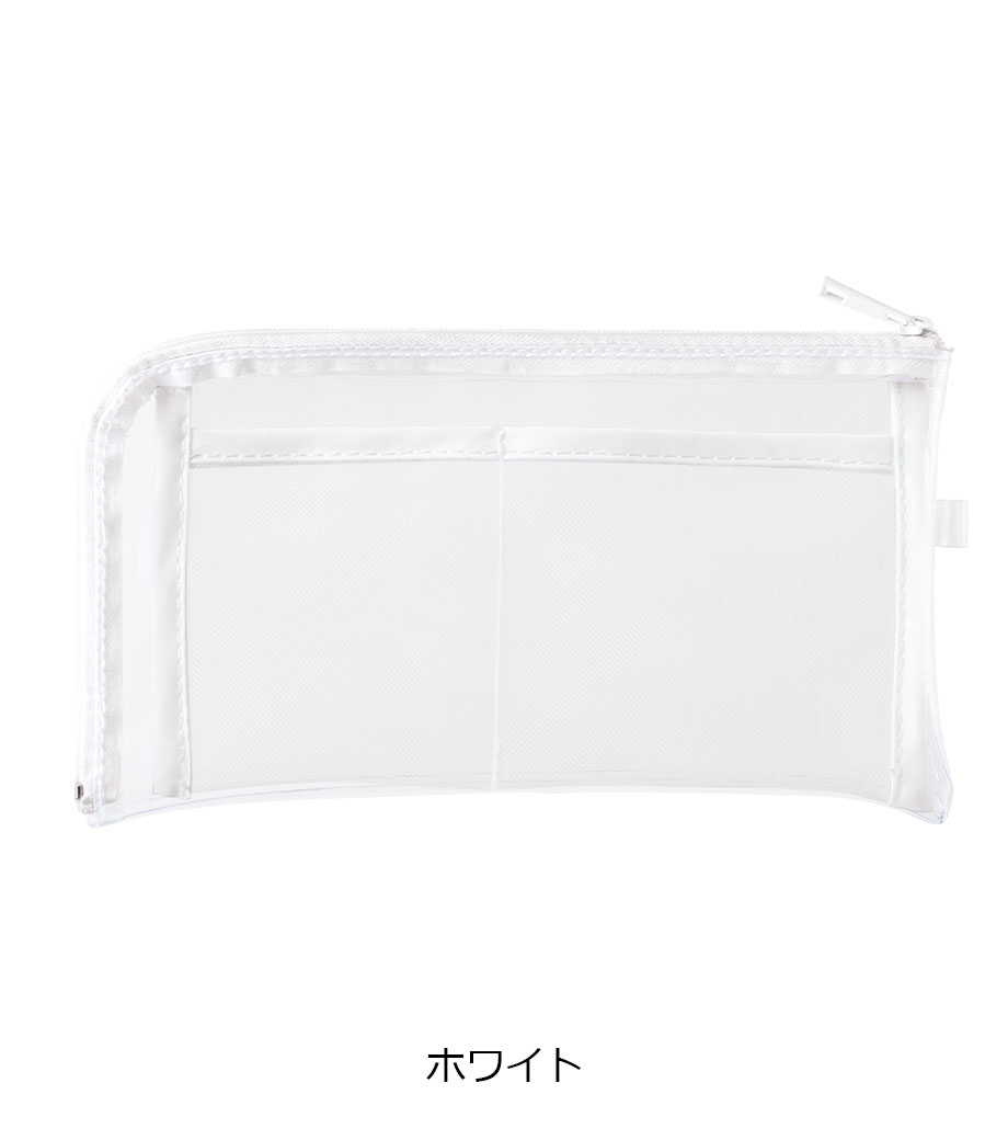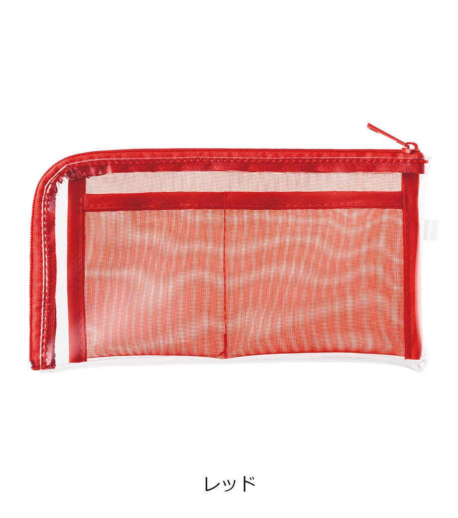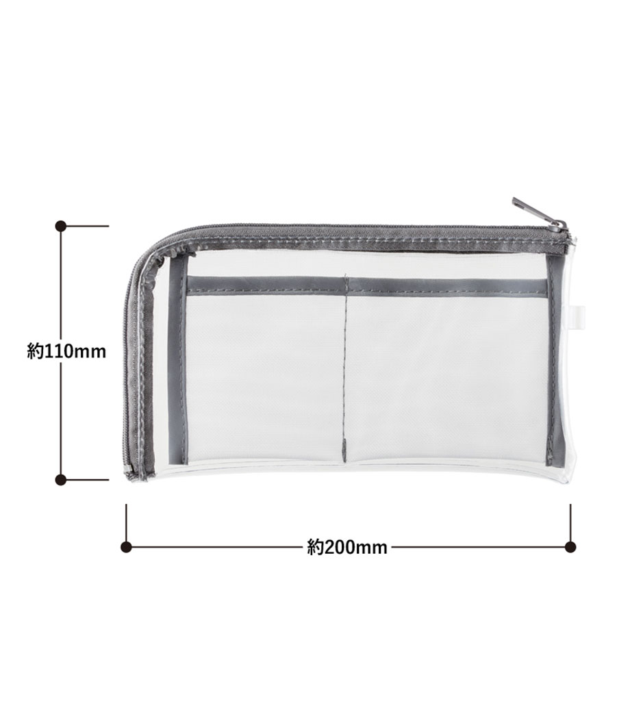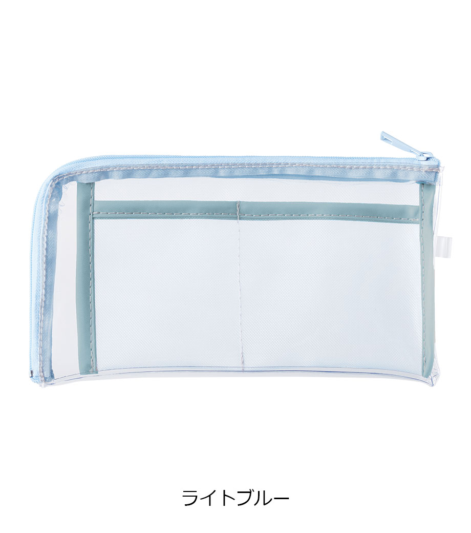 カラーファスナーがアクセントのスクエア型ビニールポーチ。四つ折りしたミニタオルが収まるサイズ感です。中身が一目でわかるのでアクセサリーや日用品の仕分けポーチに大人気。水に強いPVC素材で、アメニティ入れとしても使えます。